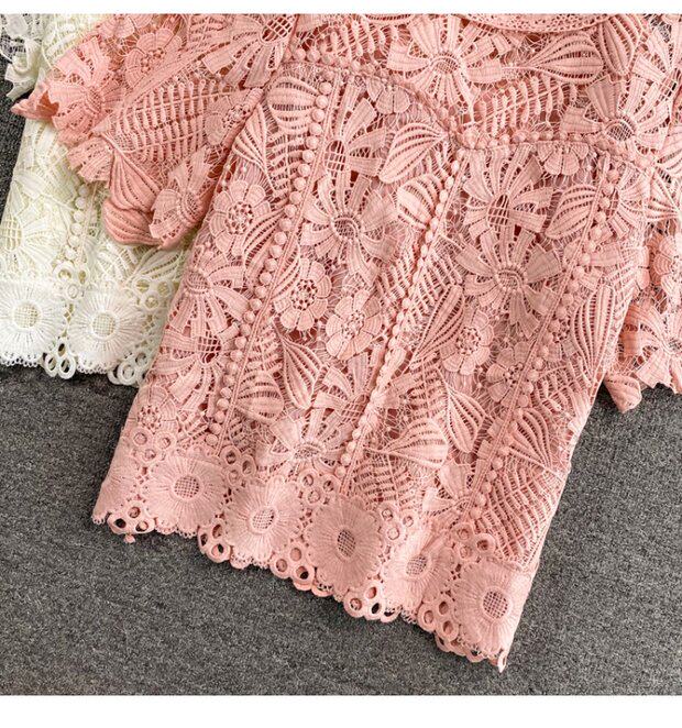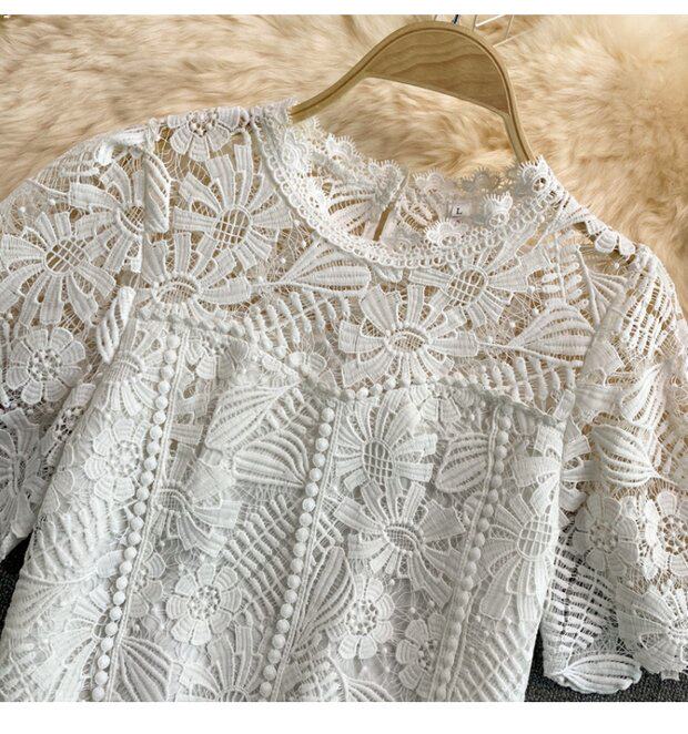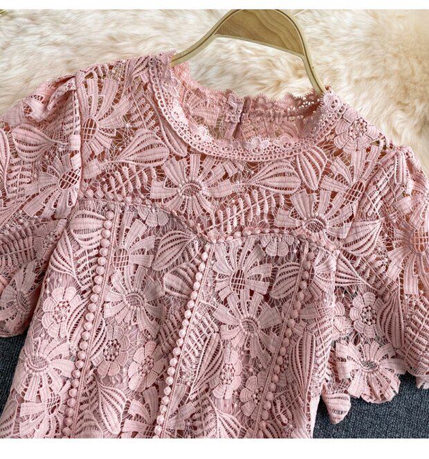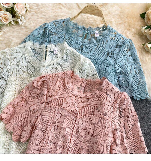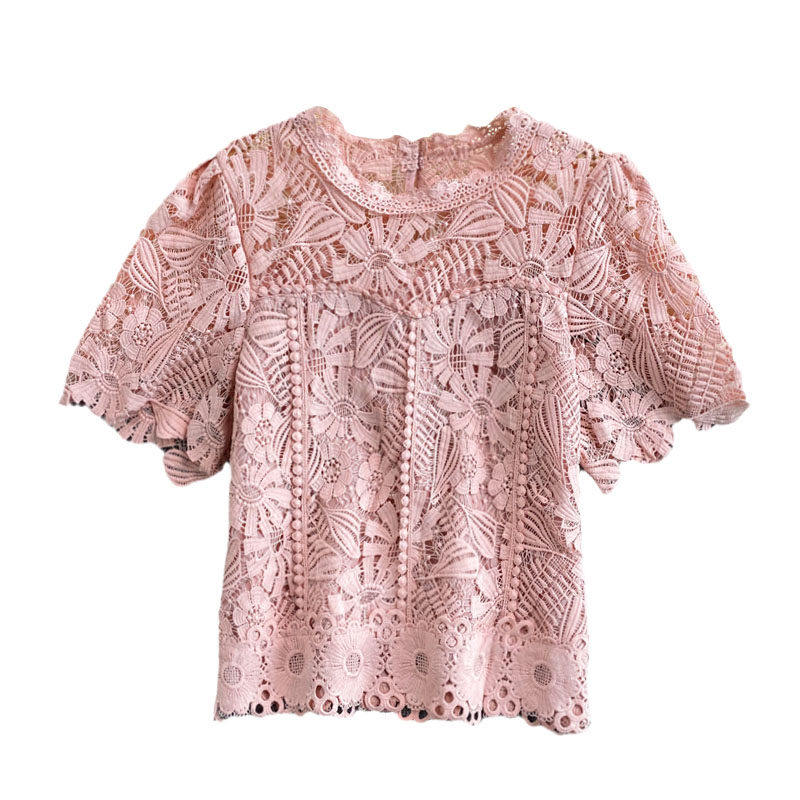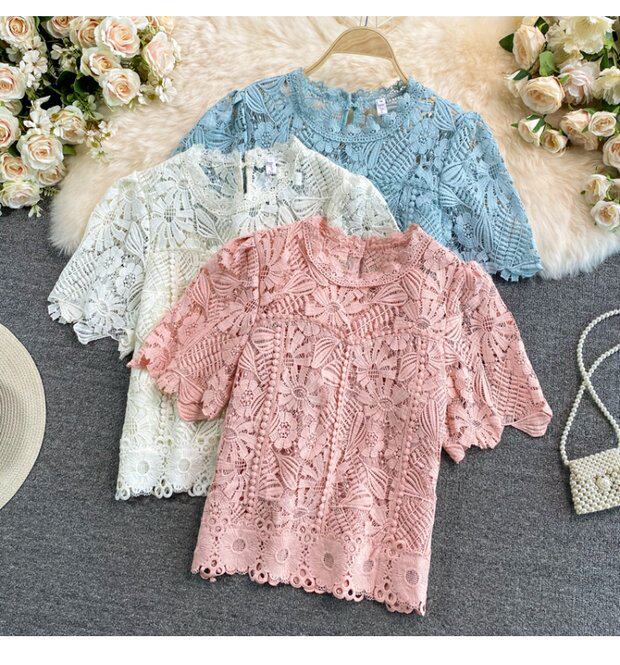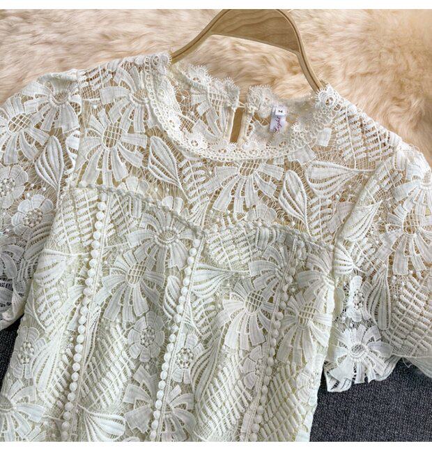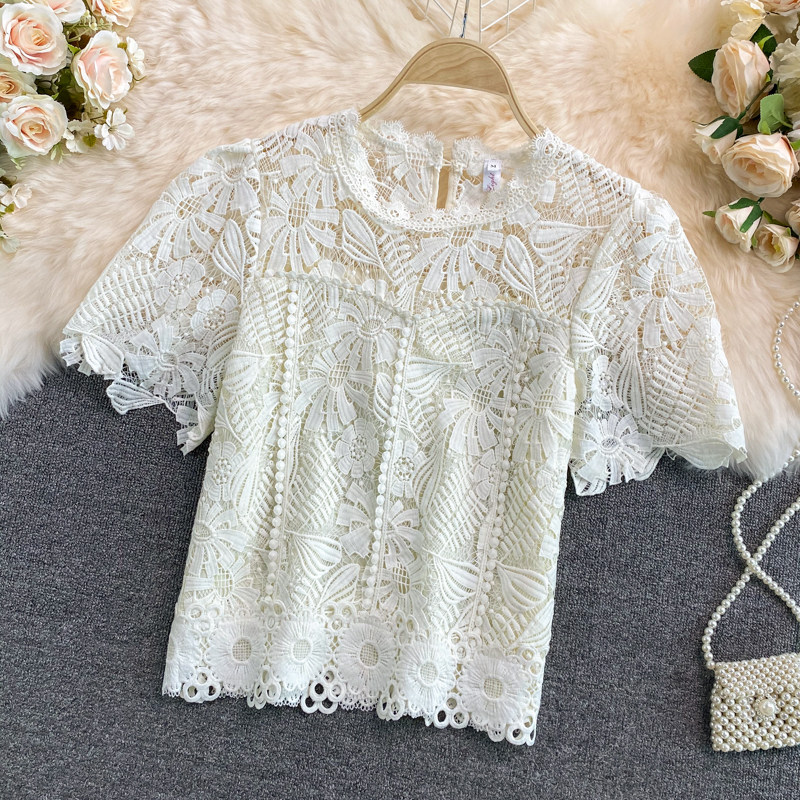 Летняя короткая ретро водорастворимая рубашка с круглым воротником, в корейском стиле, высокая талия