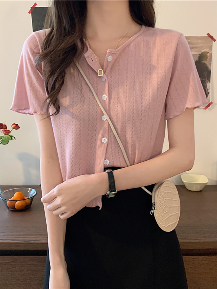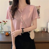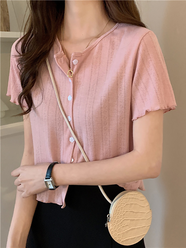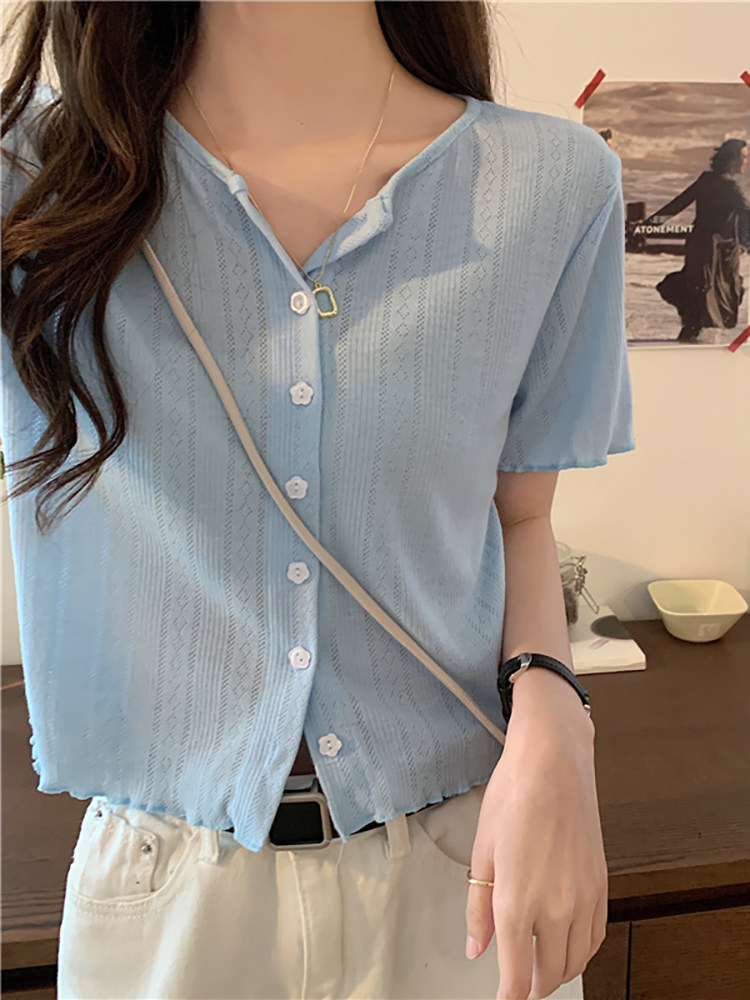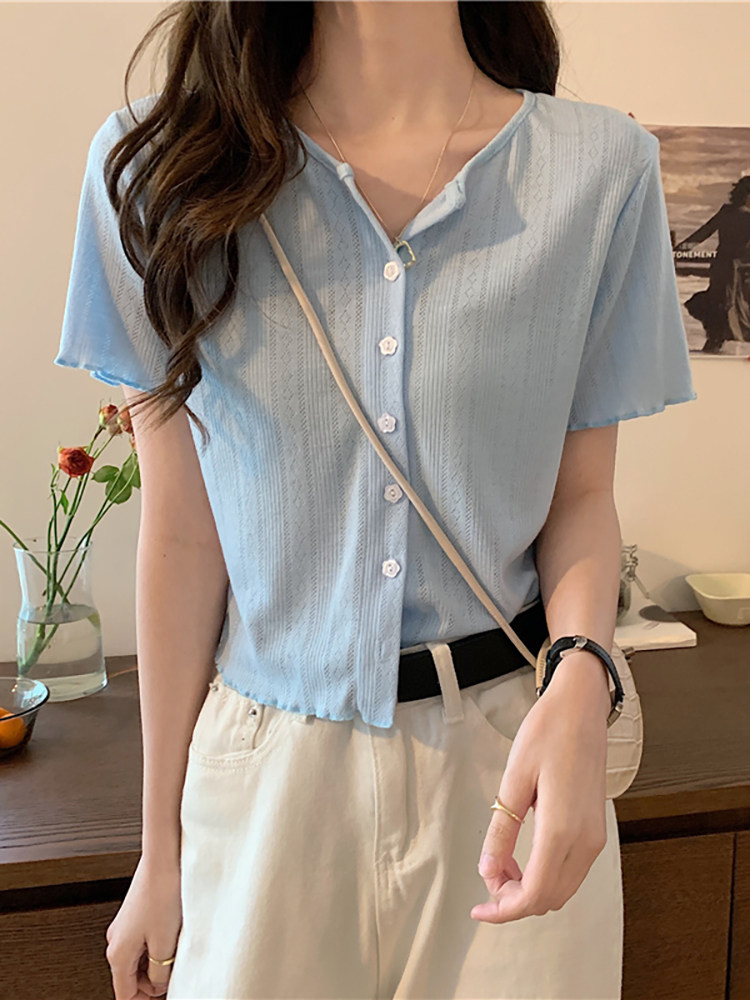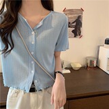 Tide, короткая летняя футболка, дизайнерский кардиган, 2023, короткий рукав, тренд сезона