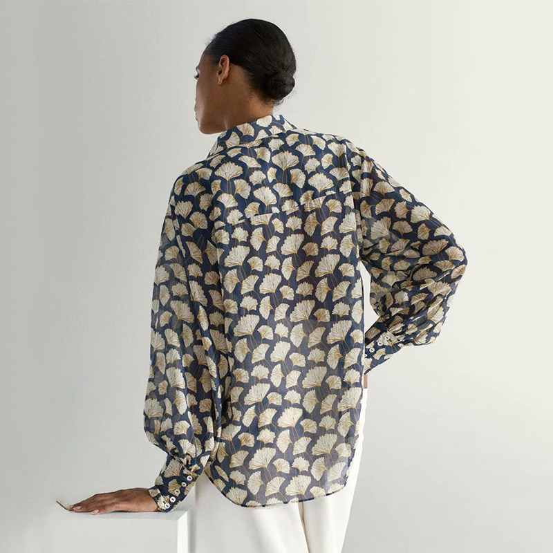 MD New Fashion Temperament Женский шелковый шелковый шелковый шелк Ginkgo Printed Lady Casual Wild Room 05109827932