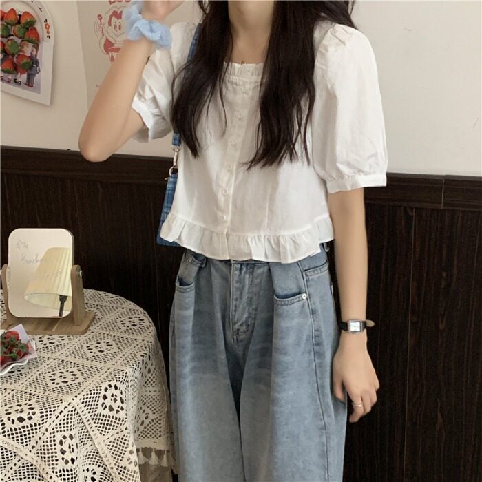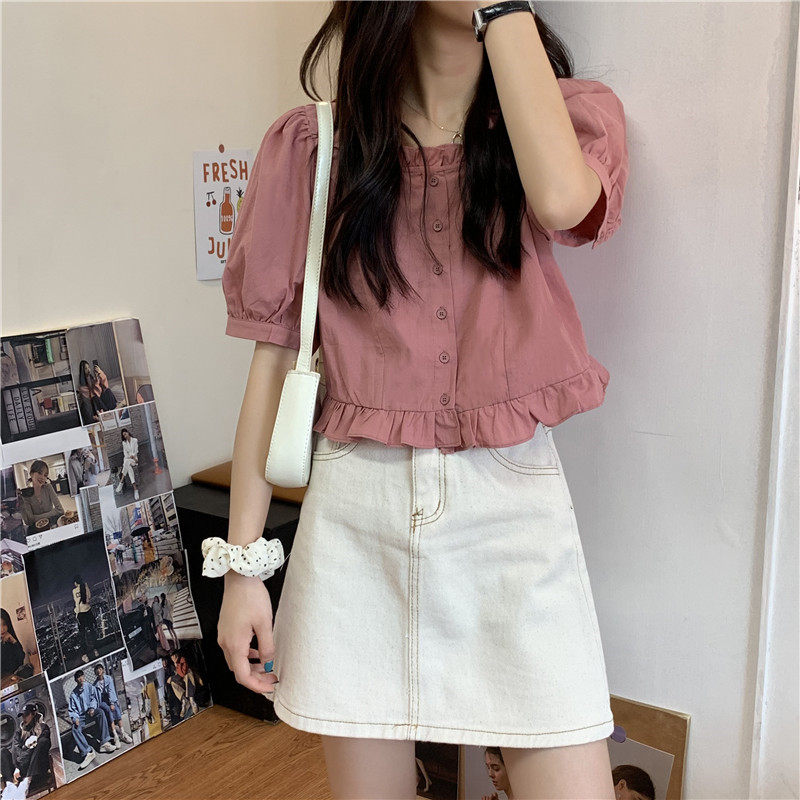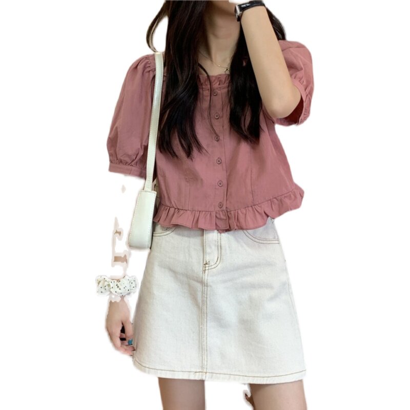 Дизайнерская осенняя милая короткая рубашка, большой размер, тренд сезона, 2025 года, французский стиль, квадратный вырез