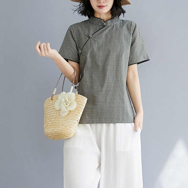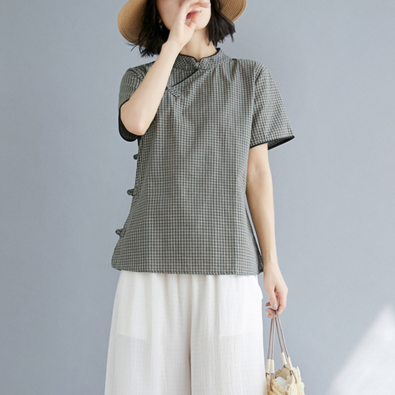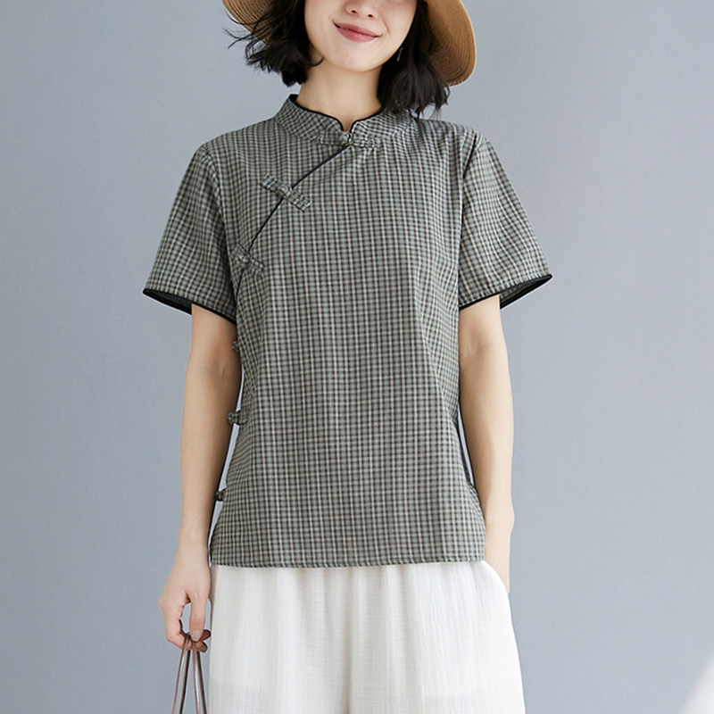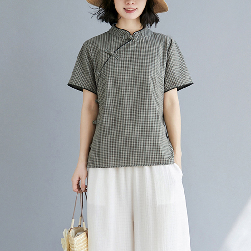 Ретро летнее ципао, рубашка, китайский стиль, оверсайз, из хлопка и льна