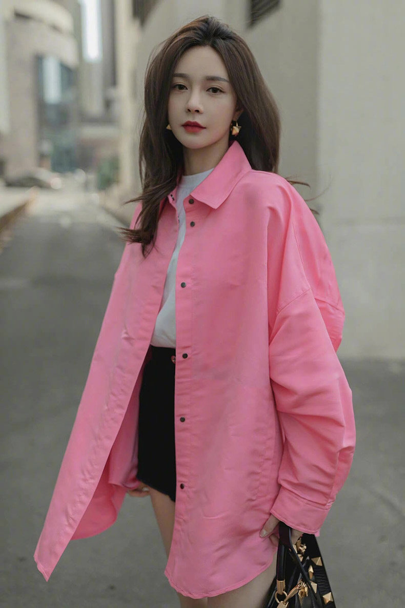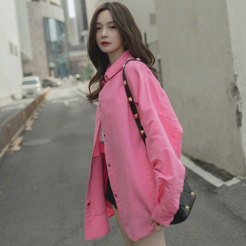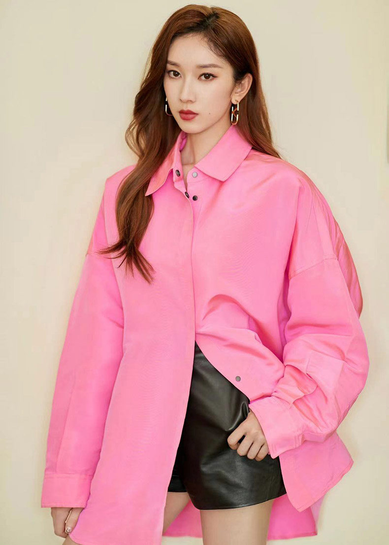 Розовая длинная рубашка, дизайнерский лонгслив, куртка, тренд сезона, свободный крой, оверсайз