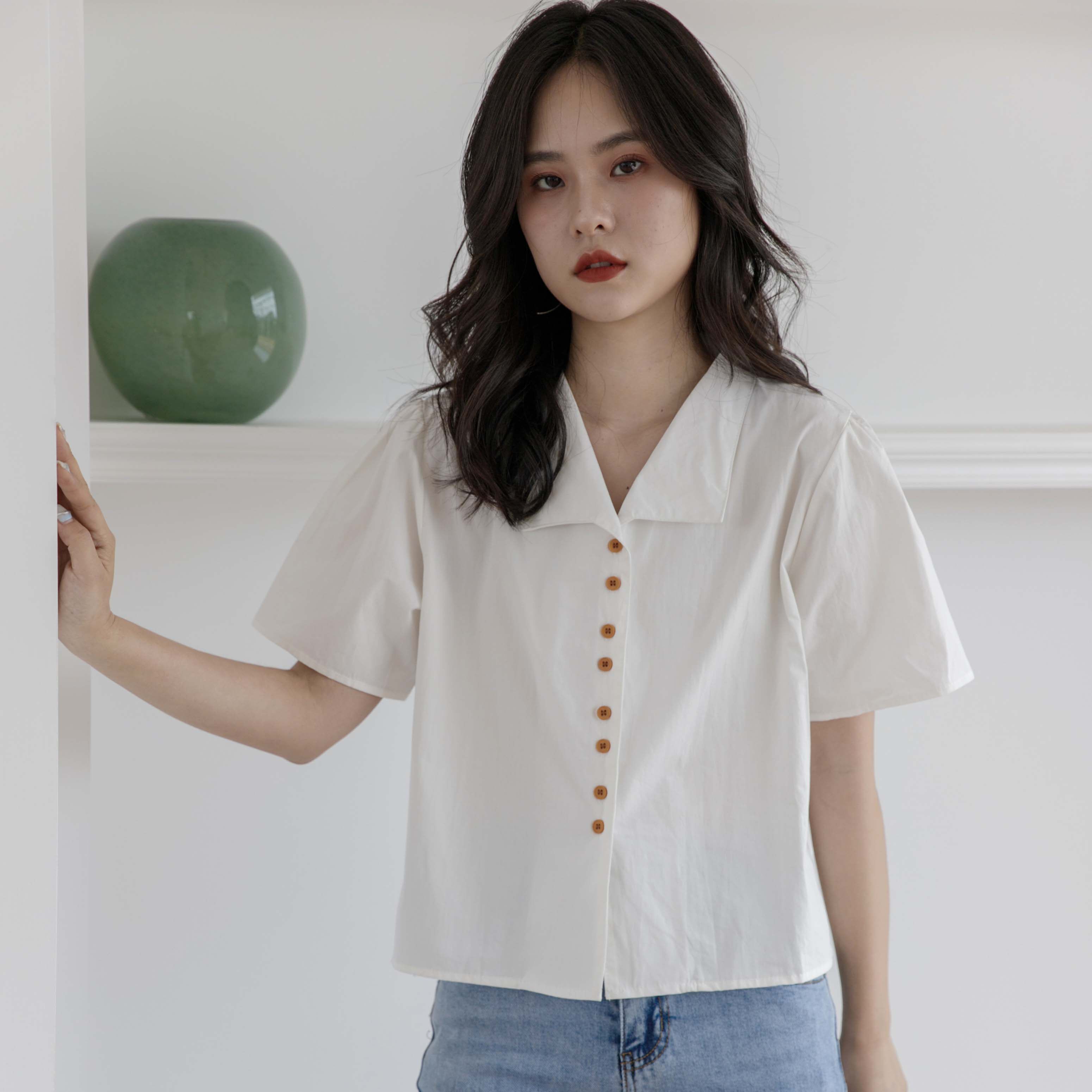 Белая летняя рубашка, короткий ретро кардиган