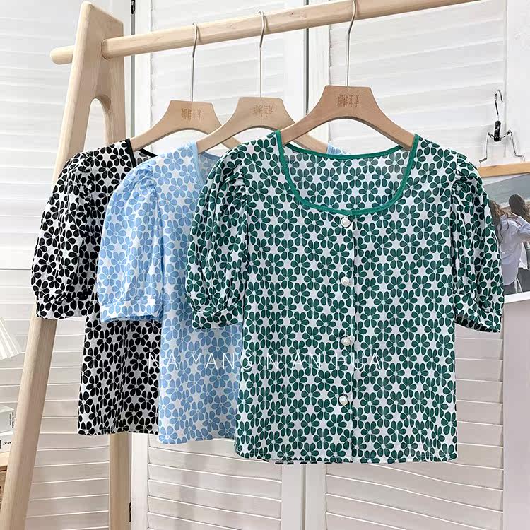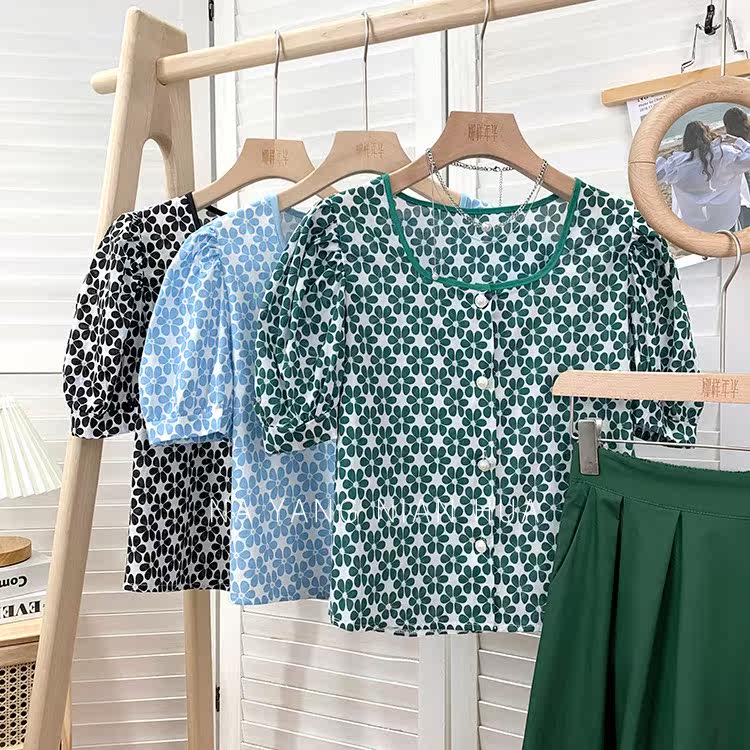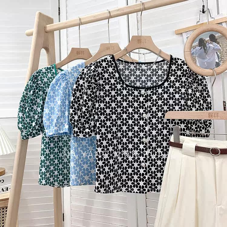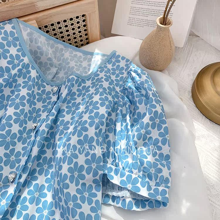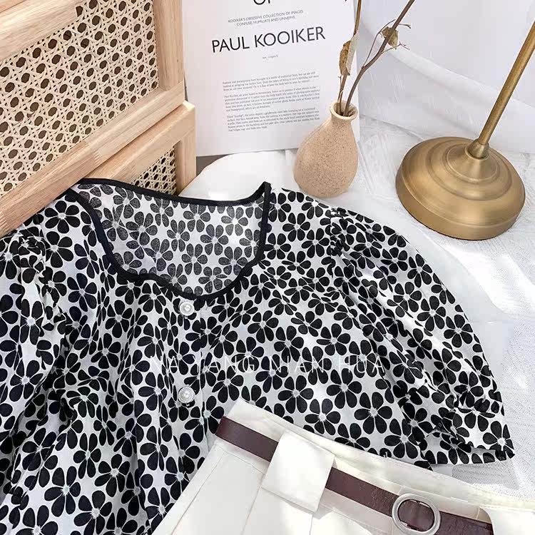 Ретро дизайнерская летняя короткая рубашка, французский стиль, тренд сезона, в западном стиле, подходит для подростков
