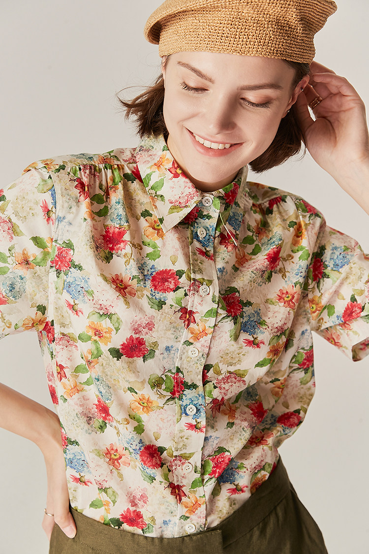 Little Insect British Import Liberty 髙 小 小 小 小 小 小 小 小 Печатная рубашка с короткими