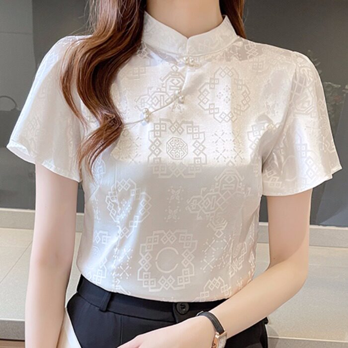 Рубашка, ретро ципао, футболка, коллекция 2022, китайский стиль, короткий рукав