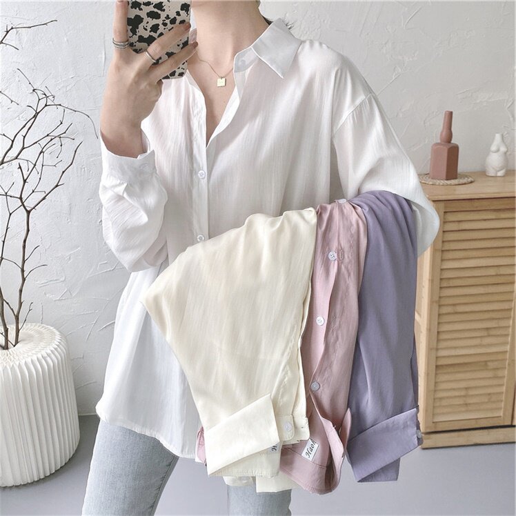 Тонкая летняя рубашка, лонгслив, длинная ультратонкая одежда для защиты от солнца, оверсайз, большой размер, средней длины