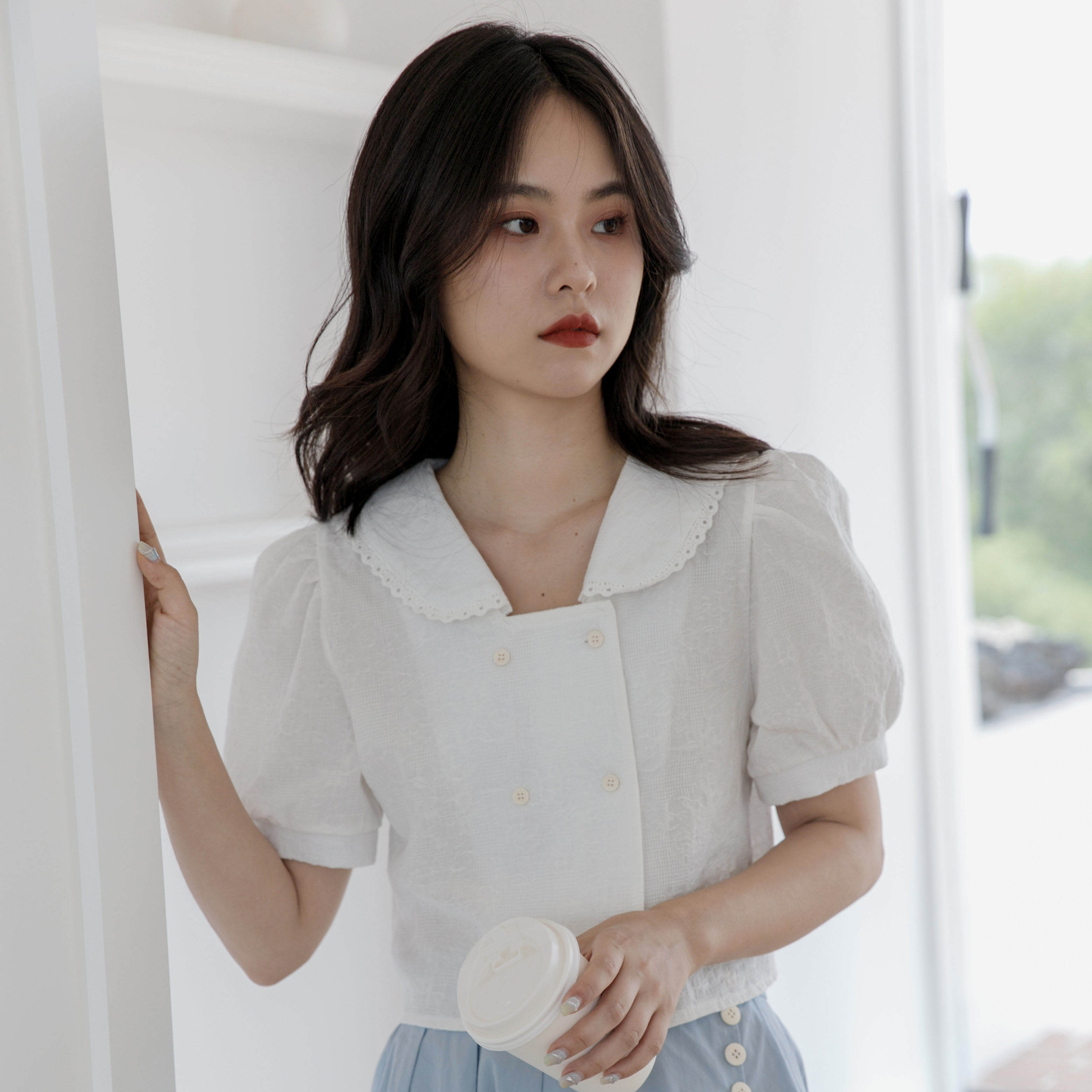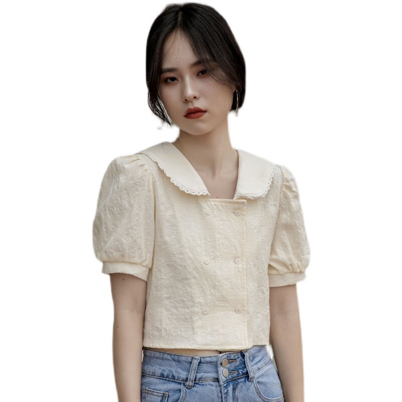 Свежая кукла, летняя двухрядная милая универсальная рубашка, рукава фонарики