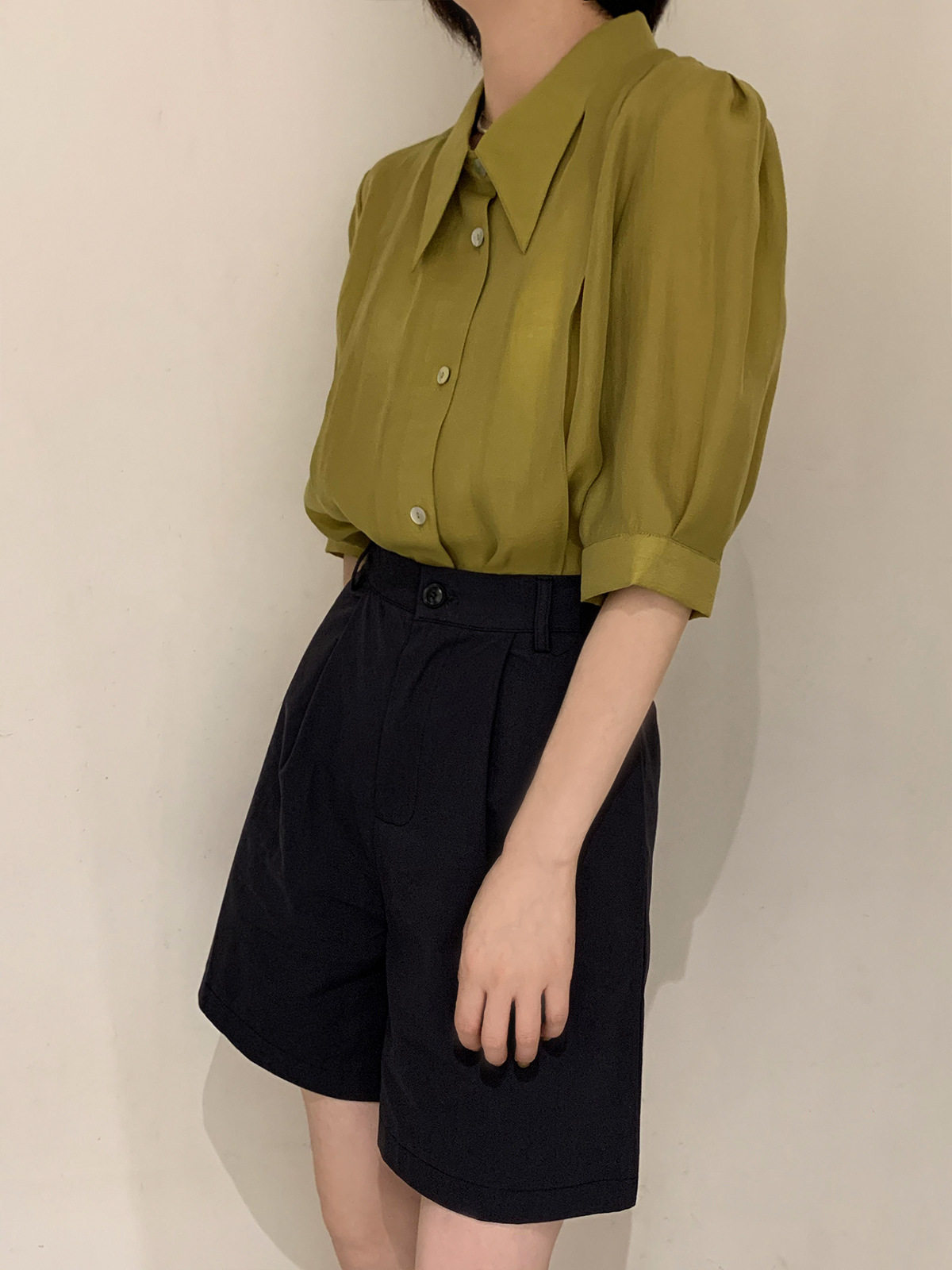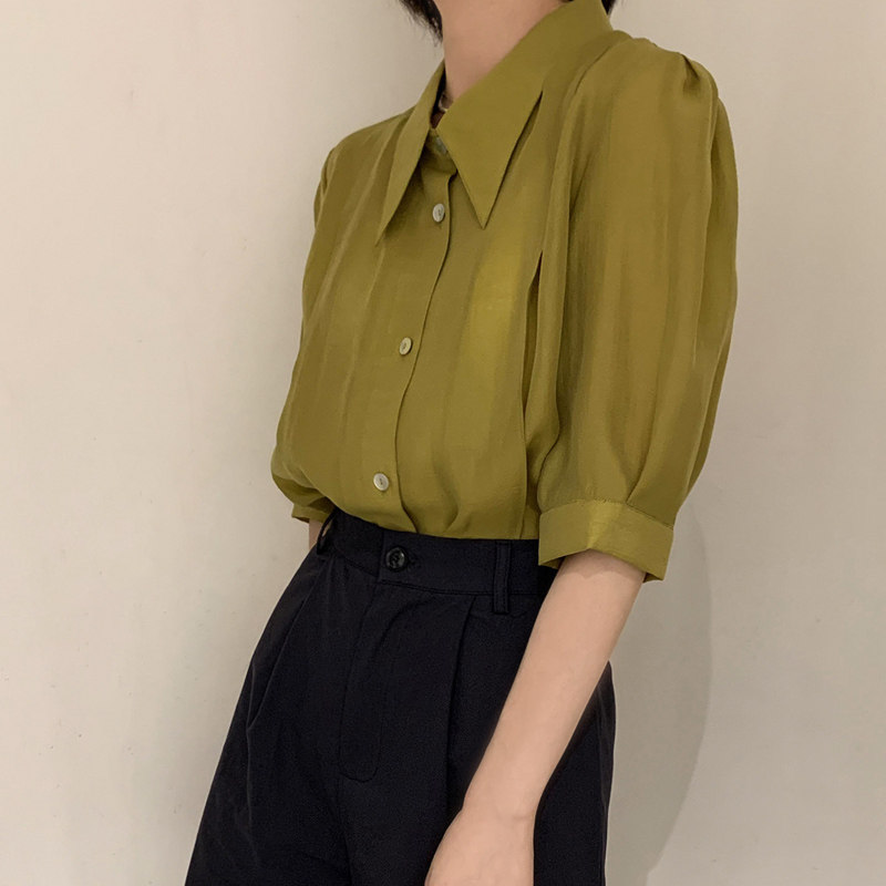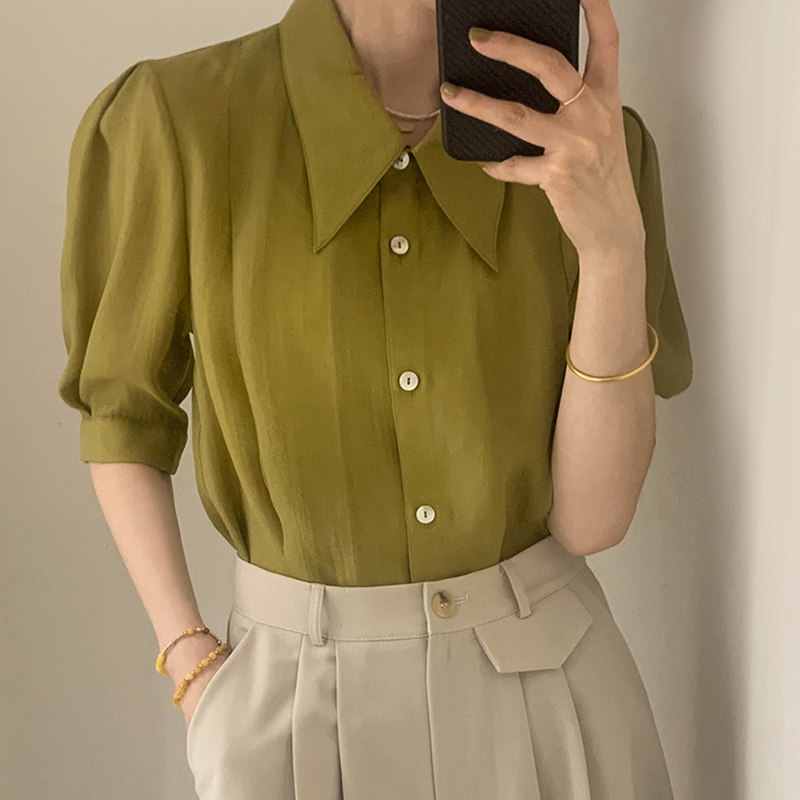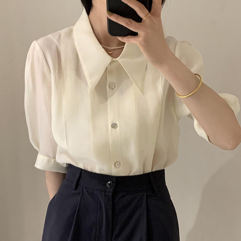 Летняя тонкая сексуальная рубашка, французский стиль, рукава фонарики, короткий рукав