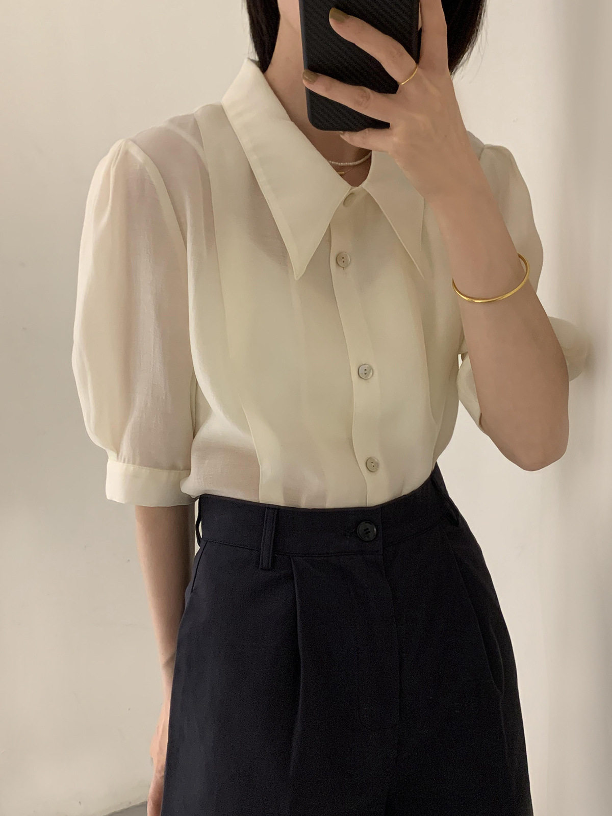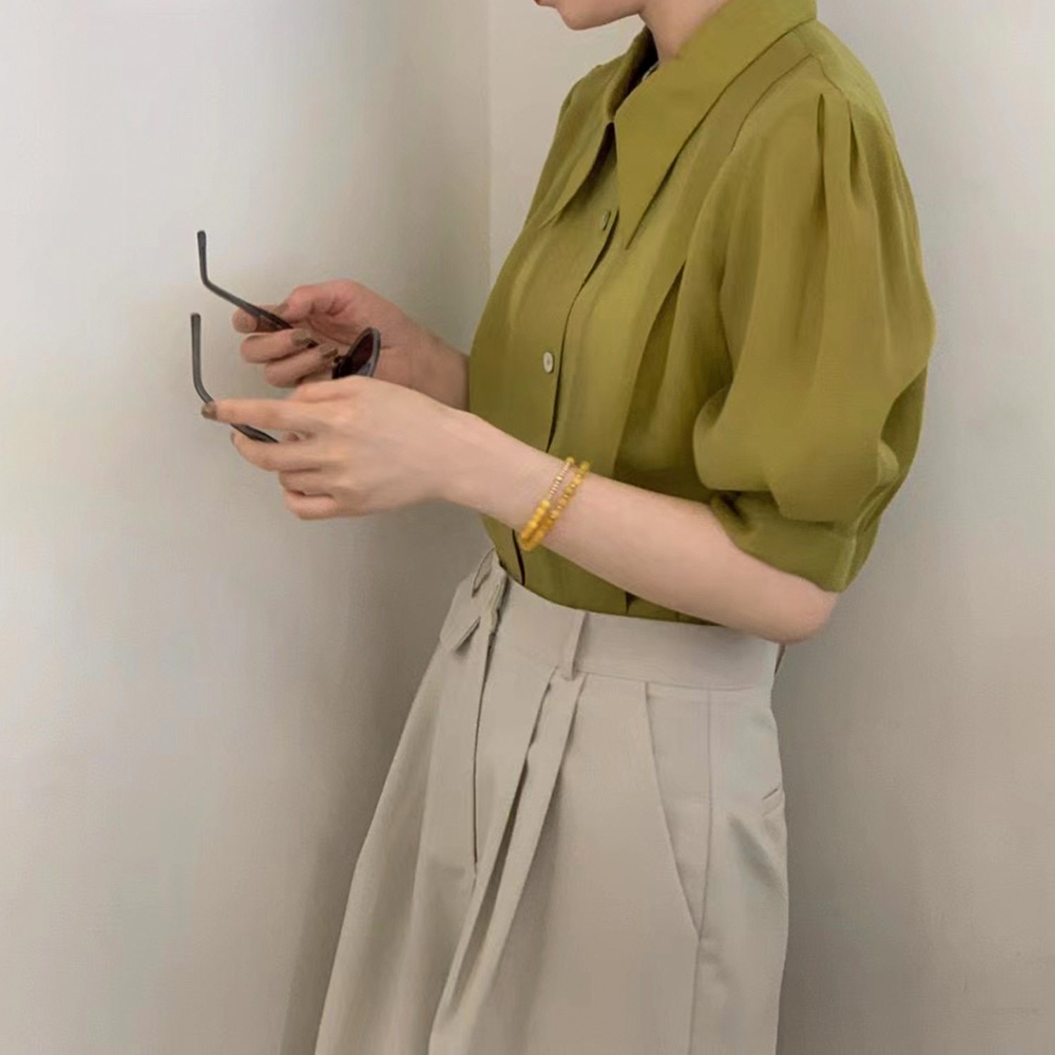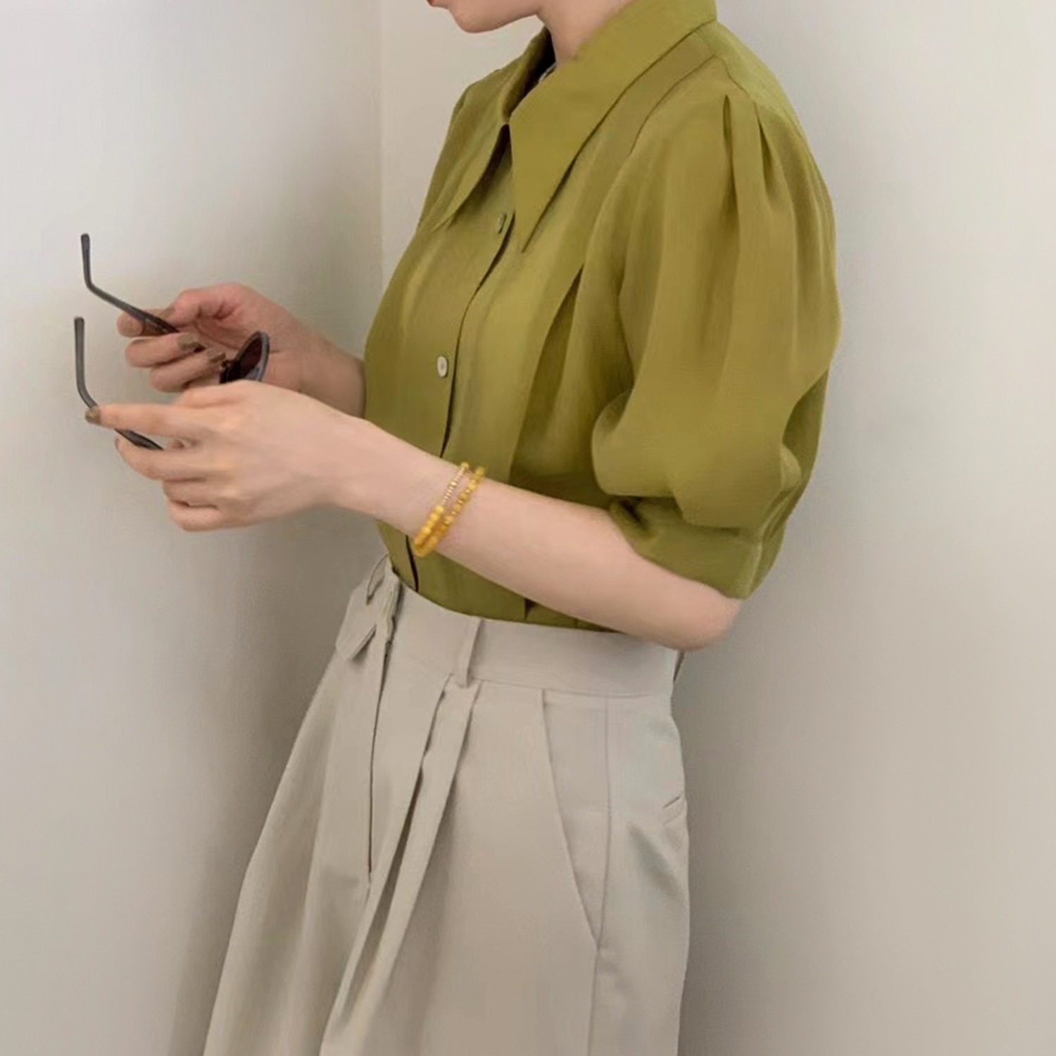 Летняя тонкая сексуальная рубашка, французский стиль, рукава фонарики, короткий рукав