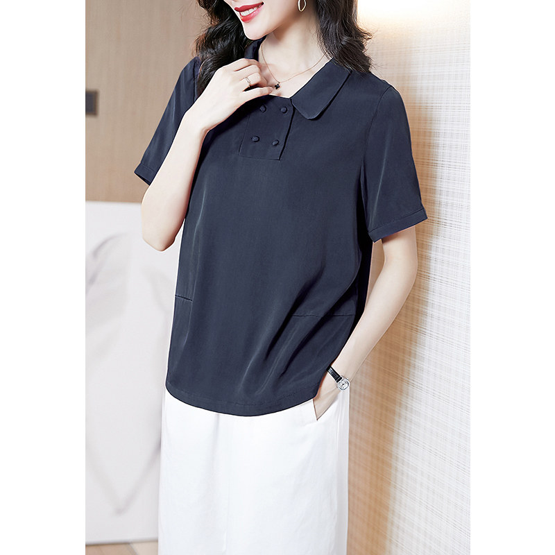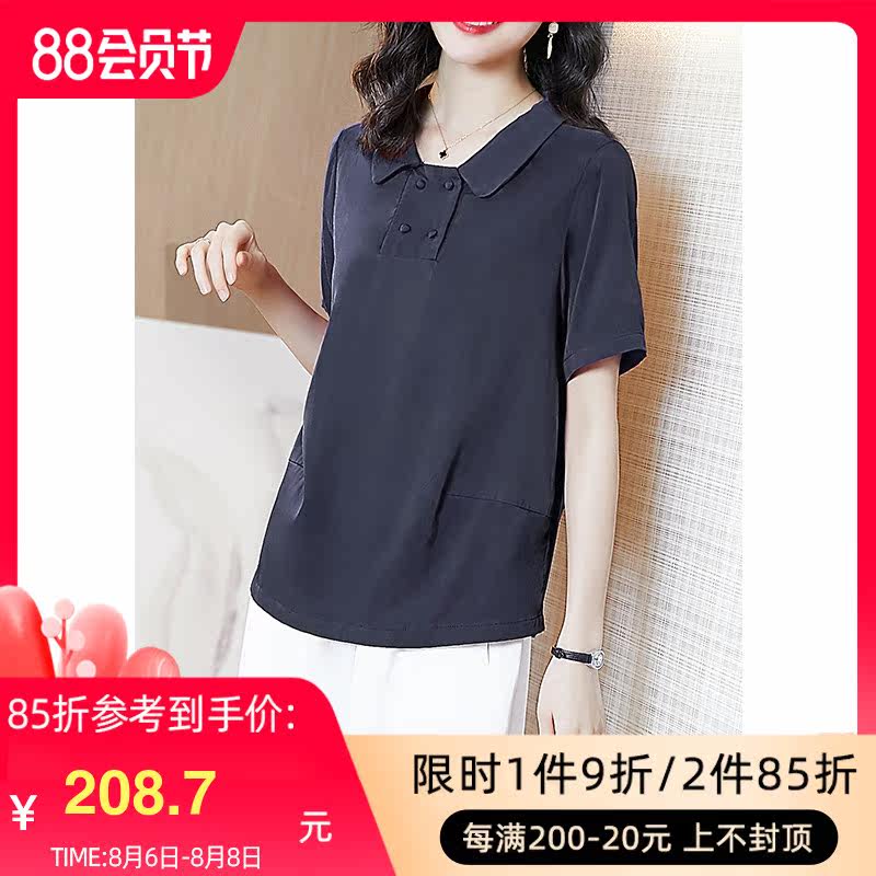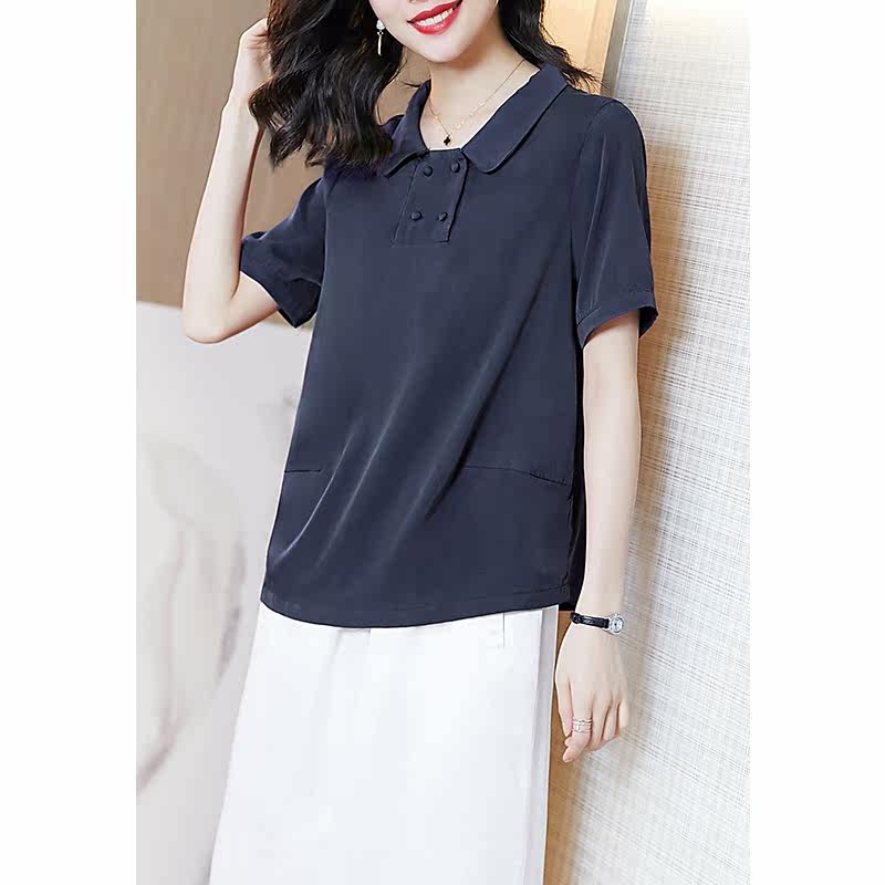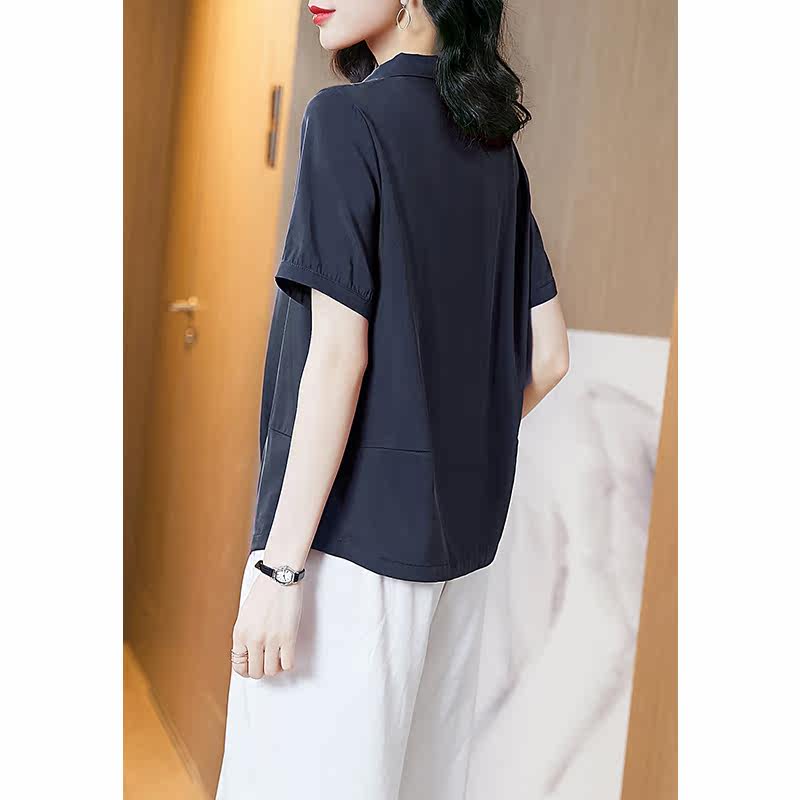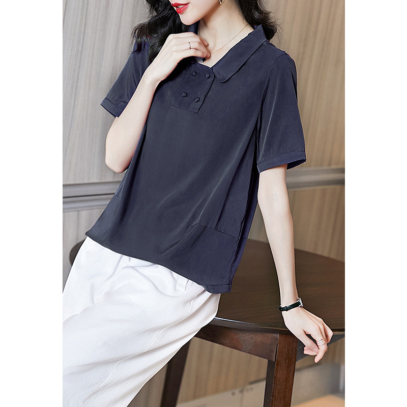 阿吉多 Медная короткая синяя рубашка, квадратный вырез, французский стиль, большой размер, изысканный стиль