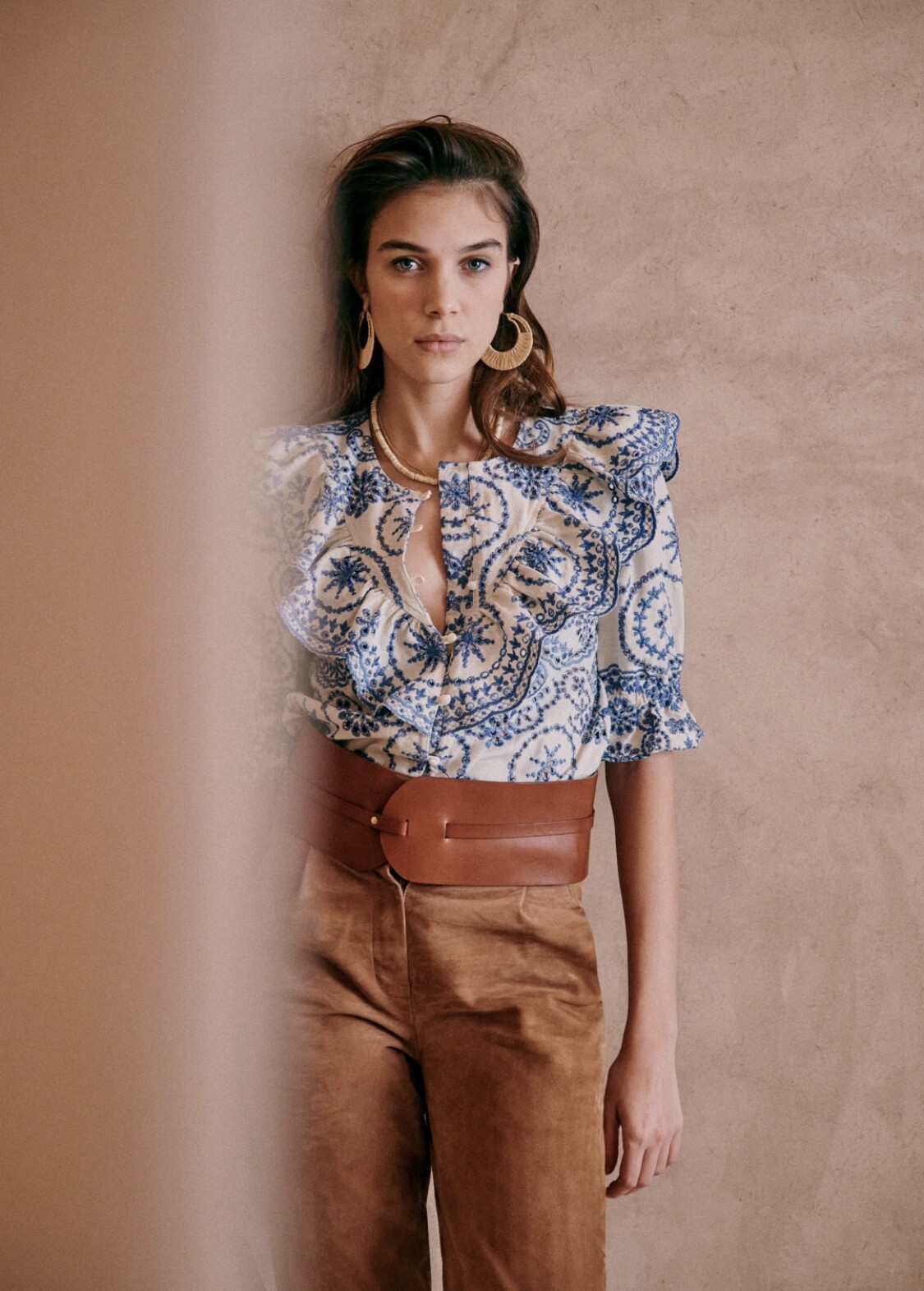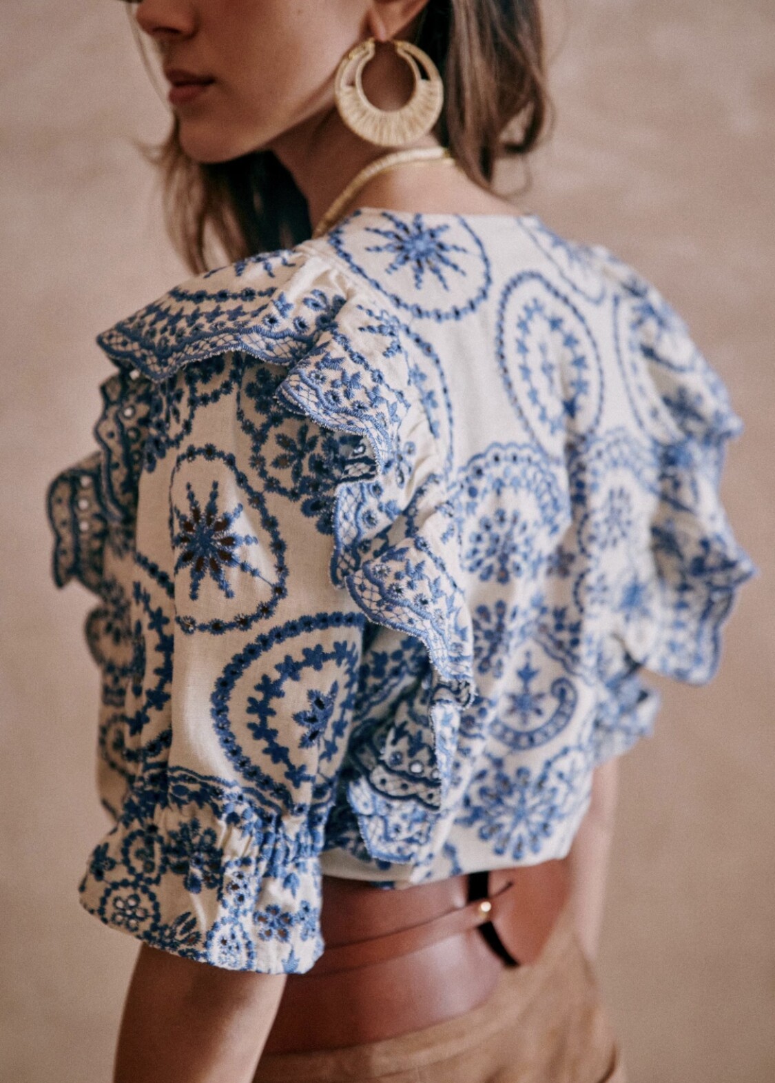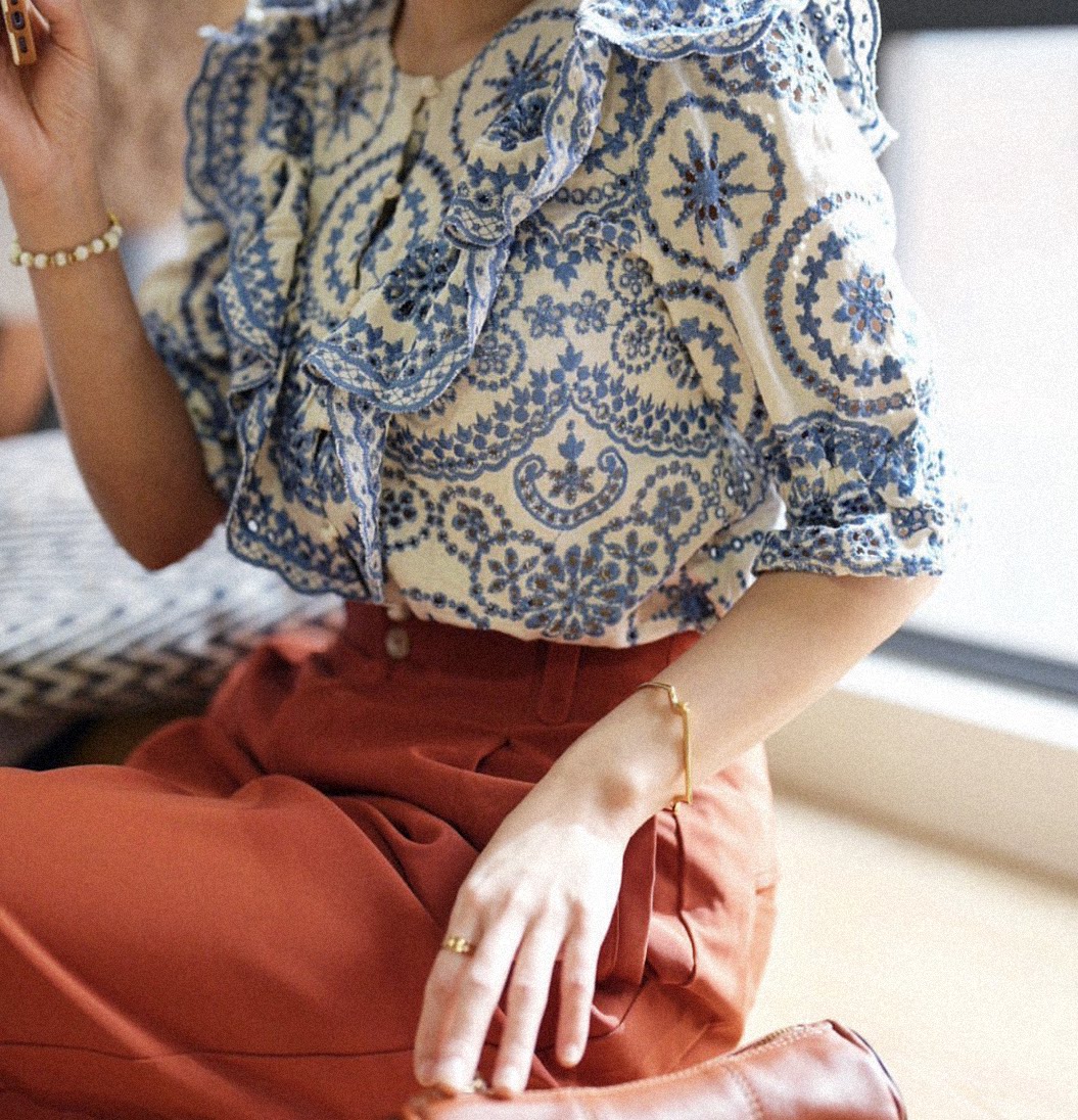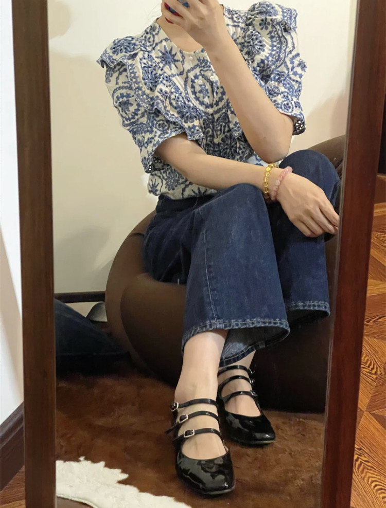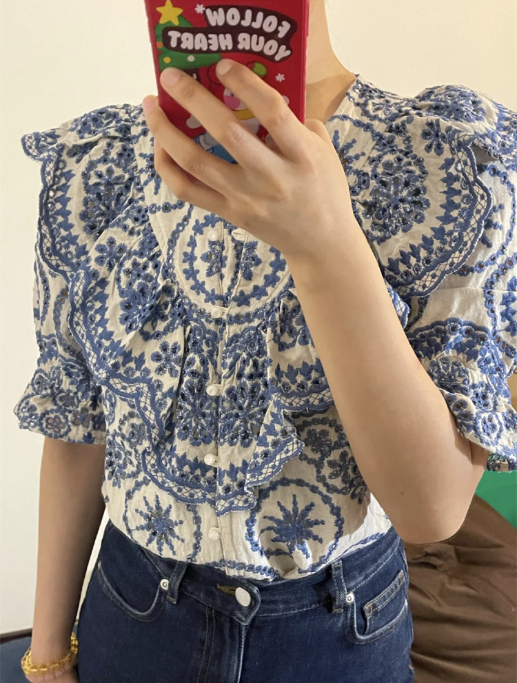 SAKI тяжелая промышленность, французский дворцовый стиль, ретро-вышивка, хлопок и лен, рубашка с короткими рукавами и полыми рюшами, топ