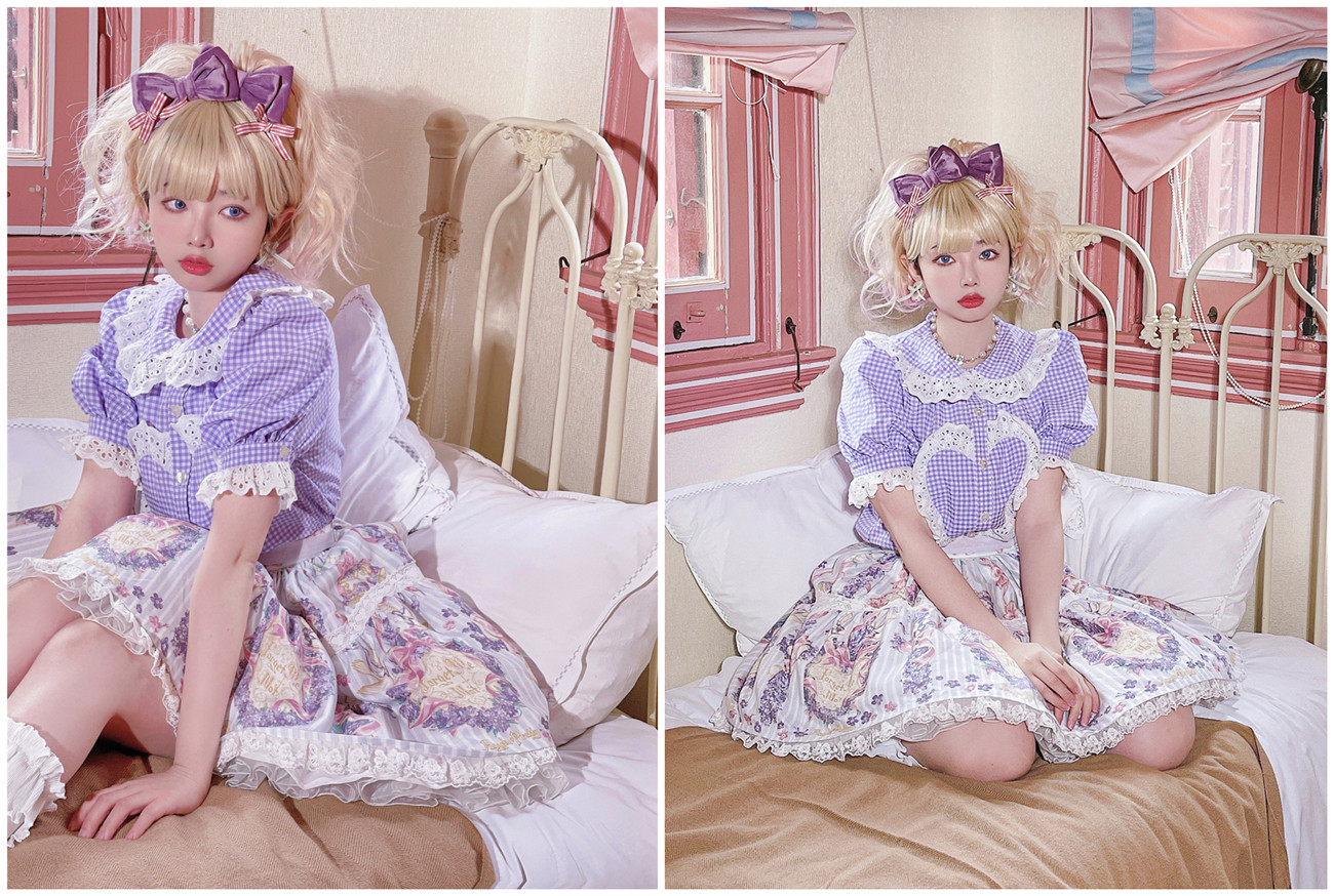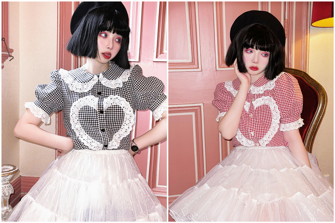 Многоцветная рубашка, коллекция 2021, рукава фонарики, стиль Лолита, (в наличии на складе)