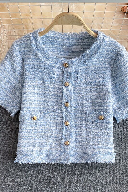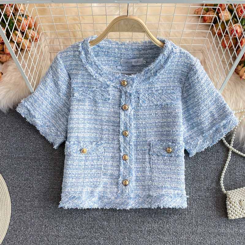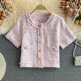 Летняя модная тонкая куртка, в корейском стиле, свободный крой, короткий рукав, в стиле Шанель, городской стиль