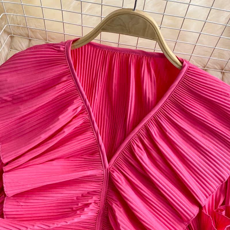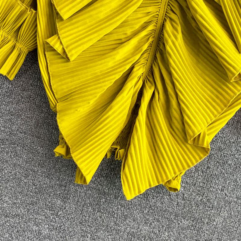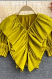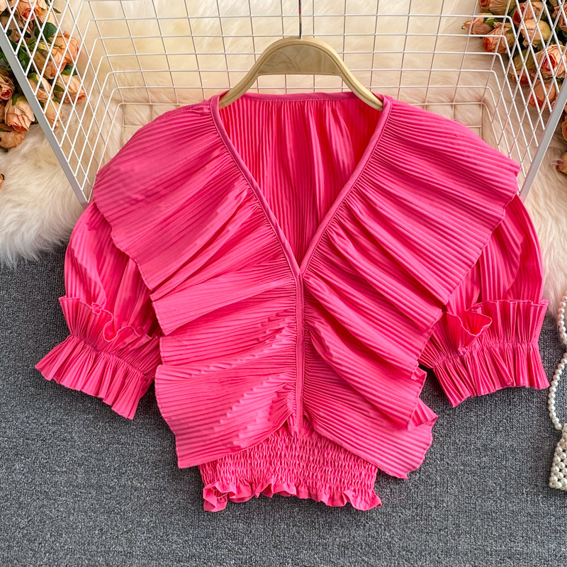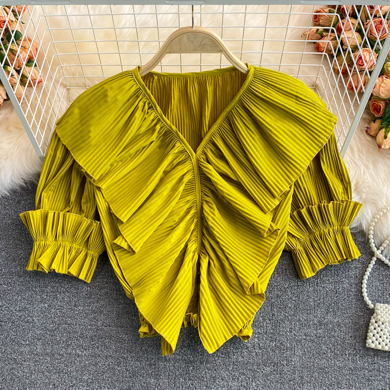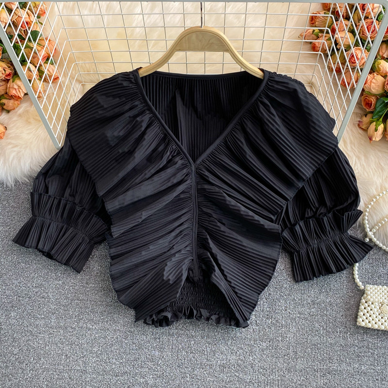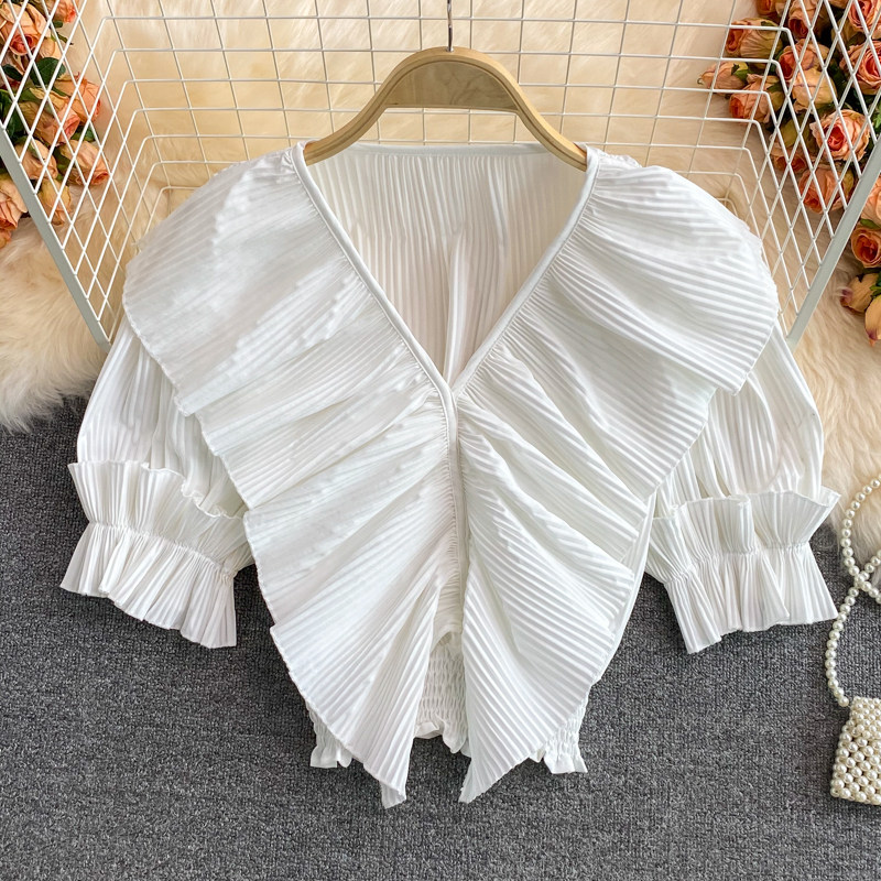 Ретро приталенная короткая рубашка, V-образный вырез, плиссированная юбка, французский стиль