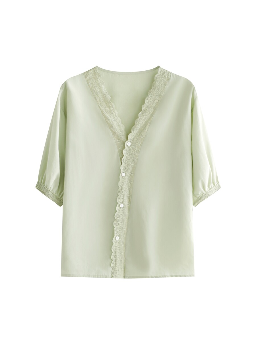 Черная летняя тонкая рубашка, кружевная короткая футболка, защита от солнца, кружевное платье, свободный крой, короткий рукав