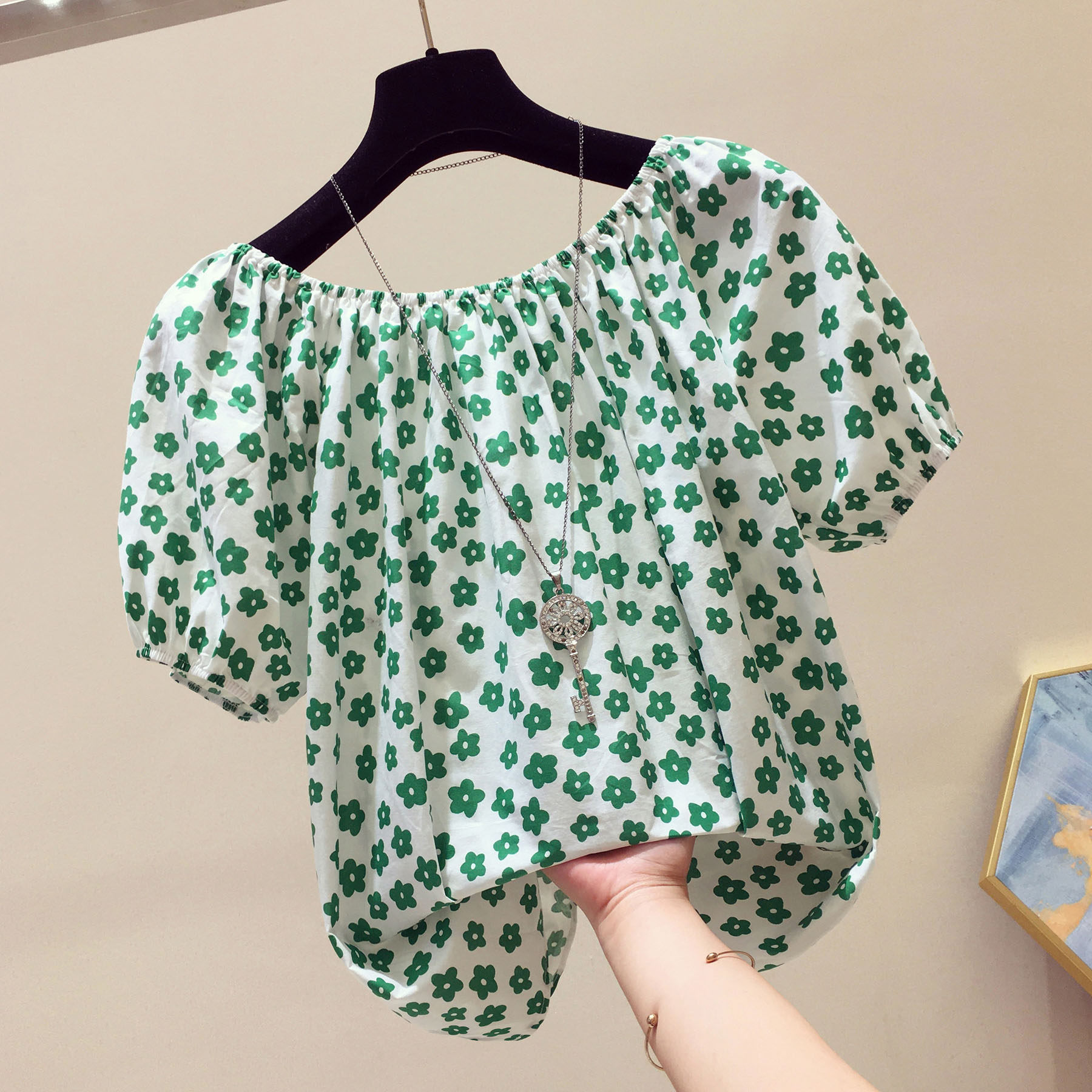 Шифоновая летняя рубашка, модная ретро короткая футболка, коллекция 2023, оверсайз, в западном стиле, высокий воротник