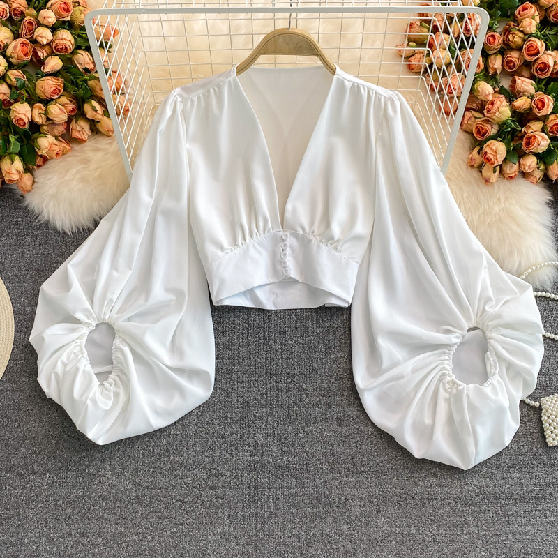 Ретро фонарь, короткий приталенный универсальный корсет, рубашка, европейский стиль, V-образный вырез, высокая талия