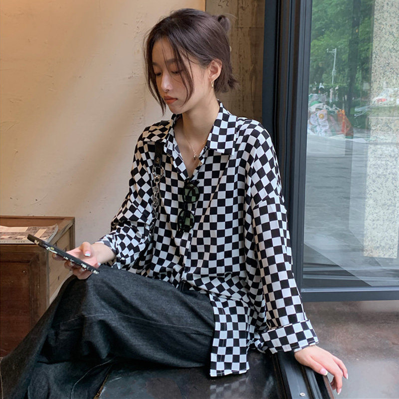 Рубашка, шахматы, лонгслив, ретро универсальная куртка, в корейском стиле