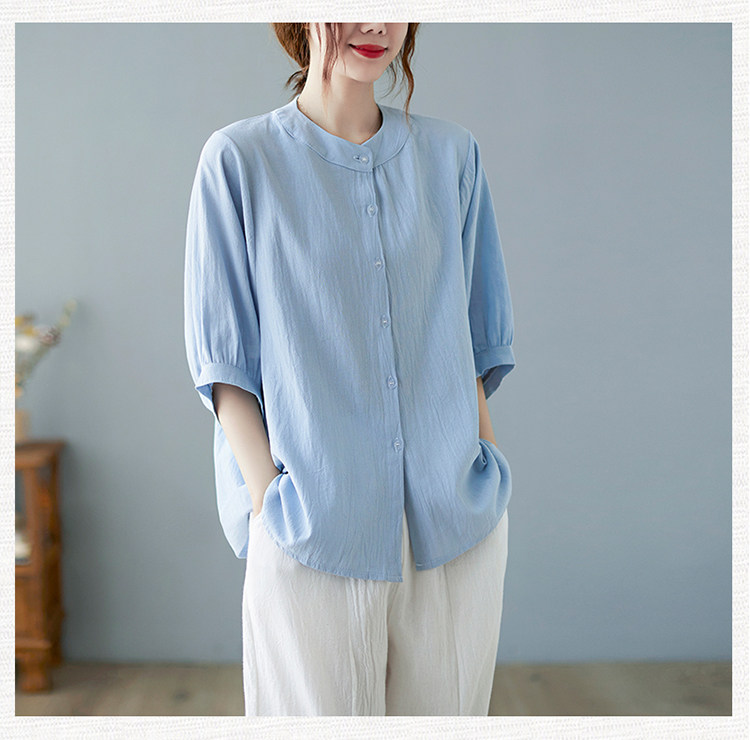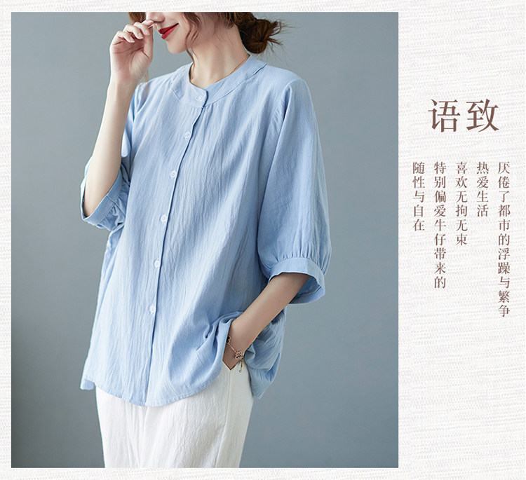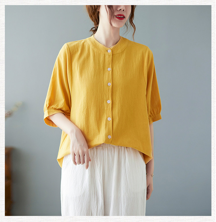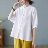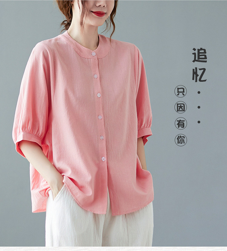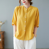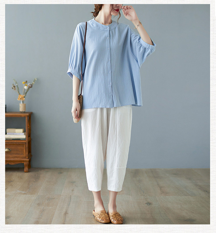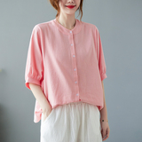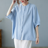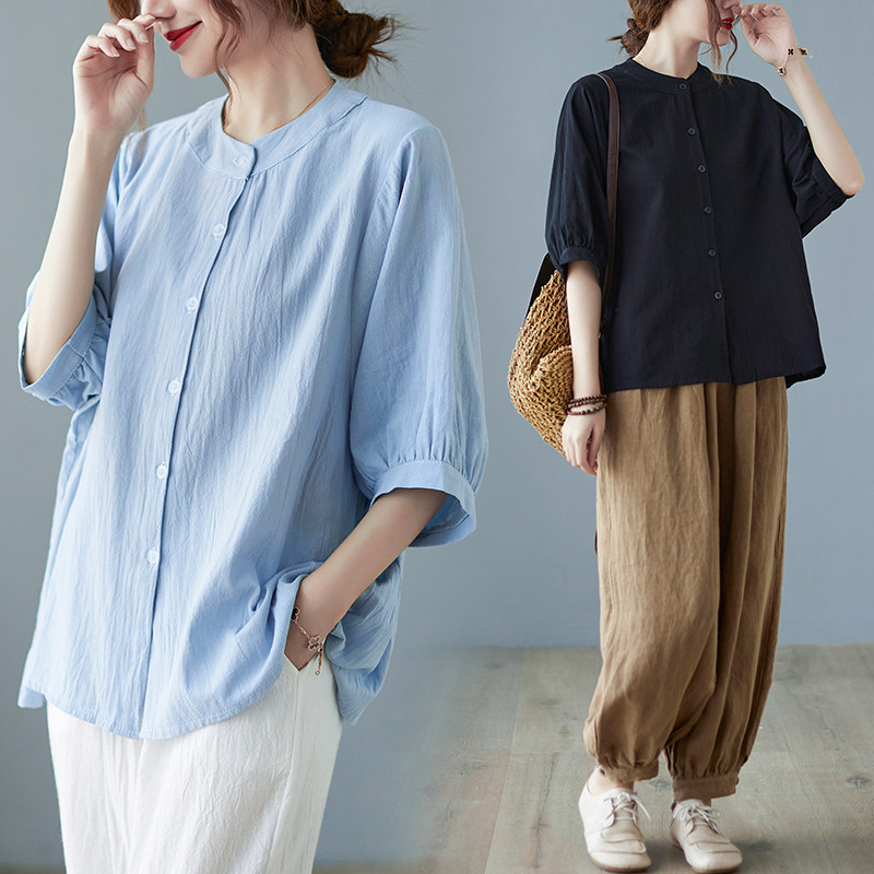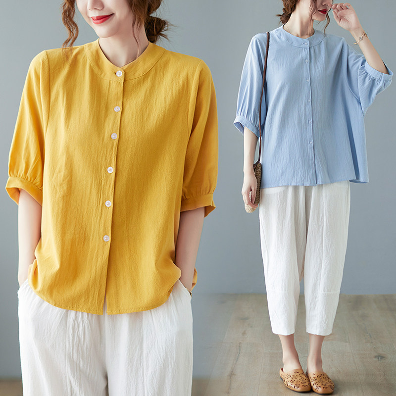 Летняя рубашка, свободный крой, в корейском стиле, большой размер, из хлопка и льна