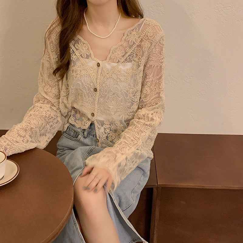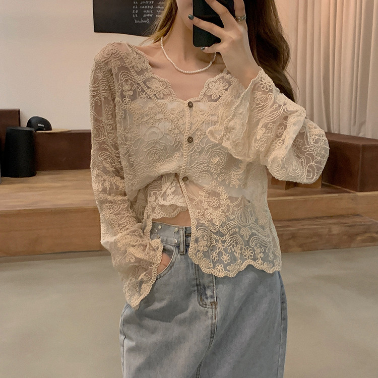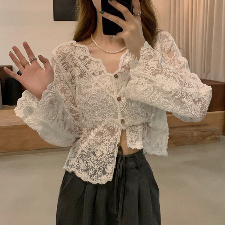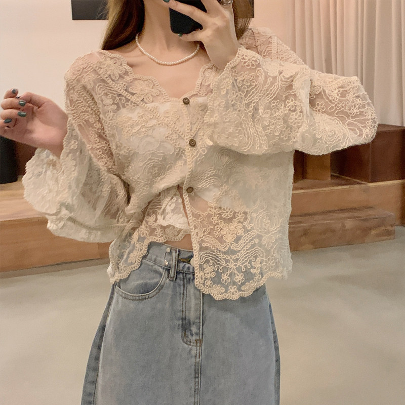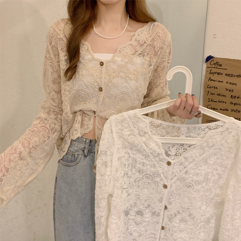 Летняя рубашка, тонкий лонгслив, кардиган, большой размер, V-образный вырез, защита от солнца