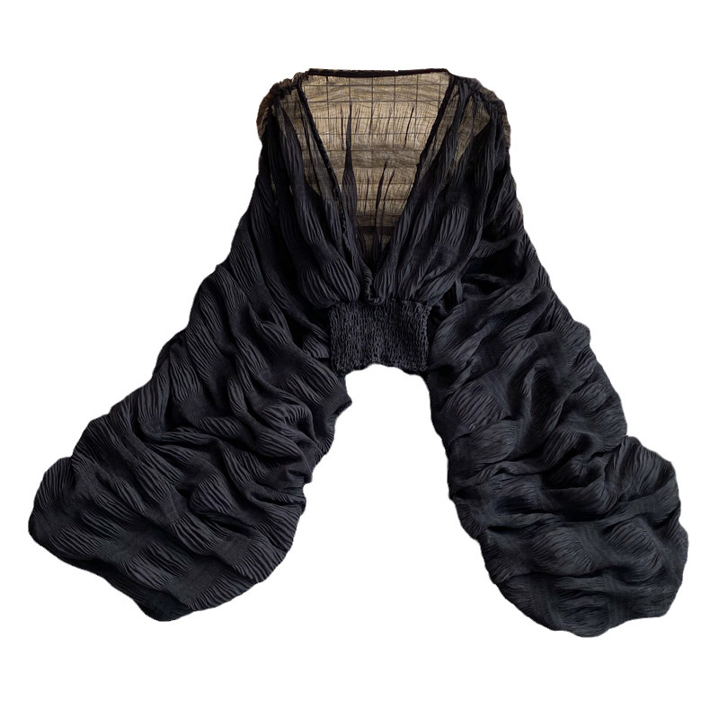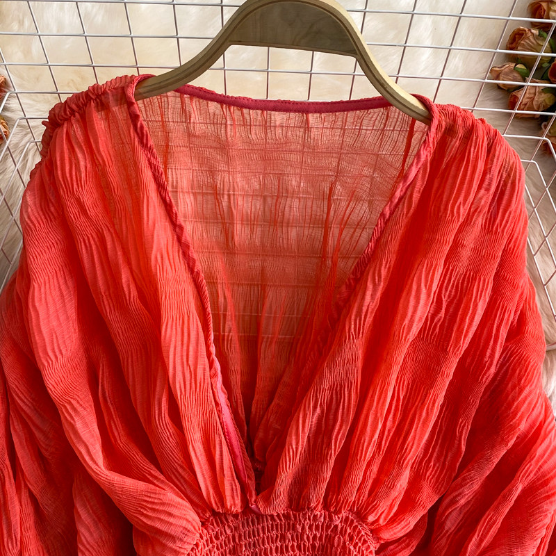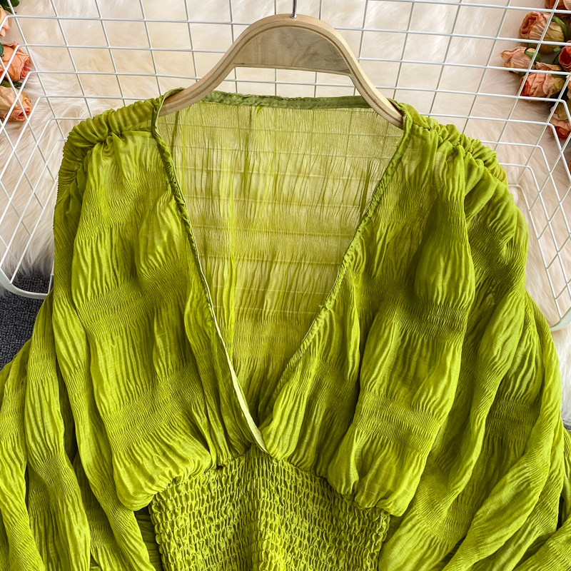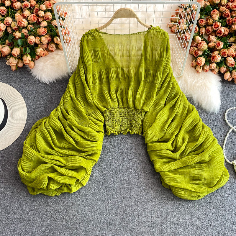 Шифоновый фонарь, приталенный короткий корсет, европейский стиль, свободный крой, V-образный вырез, в западном стиле