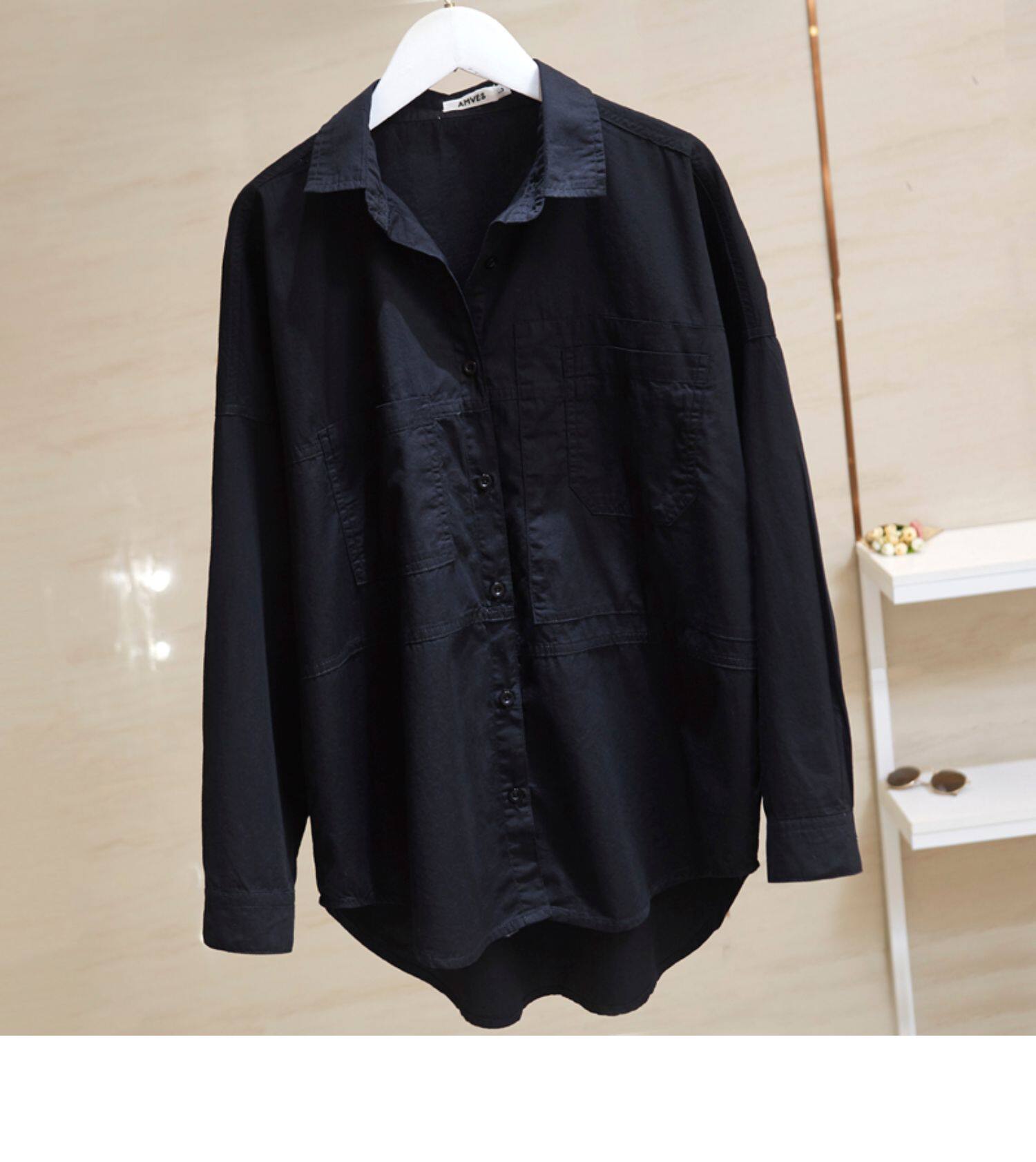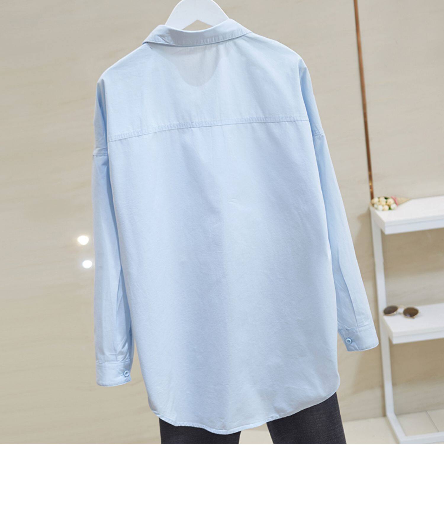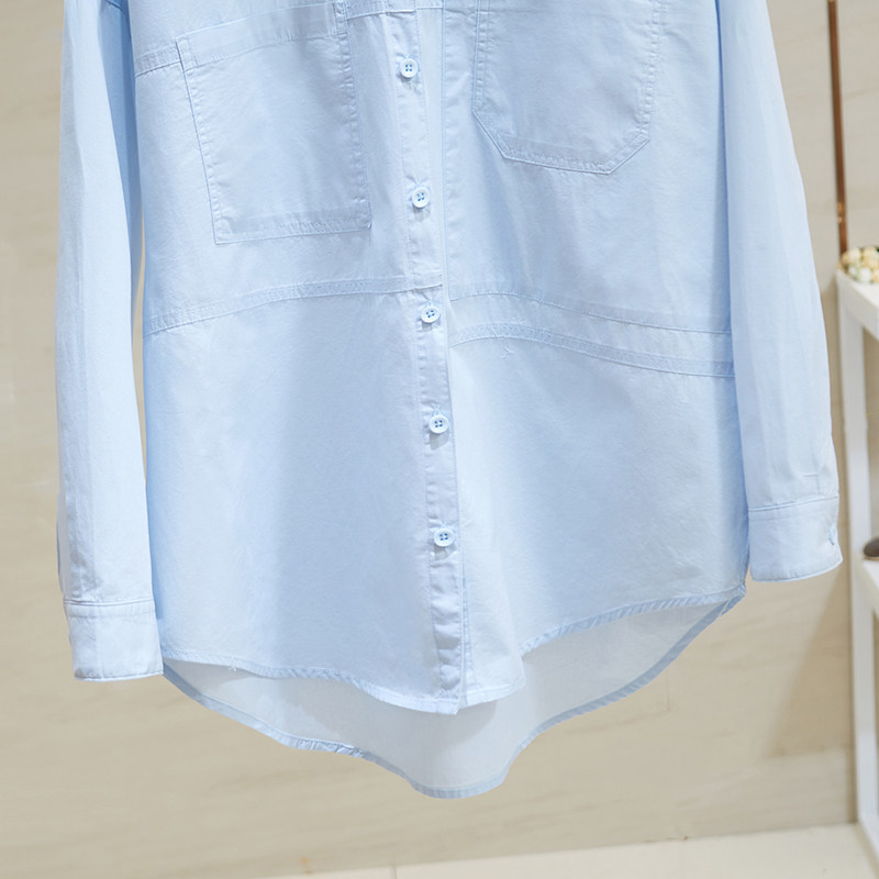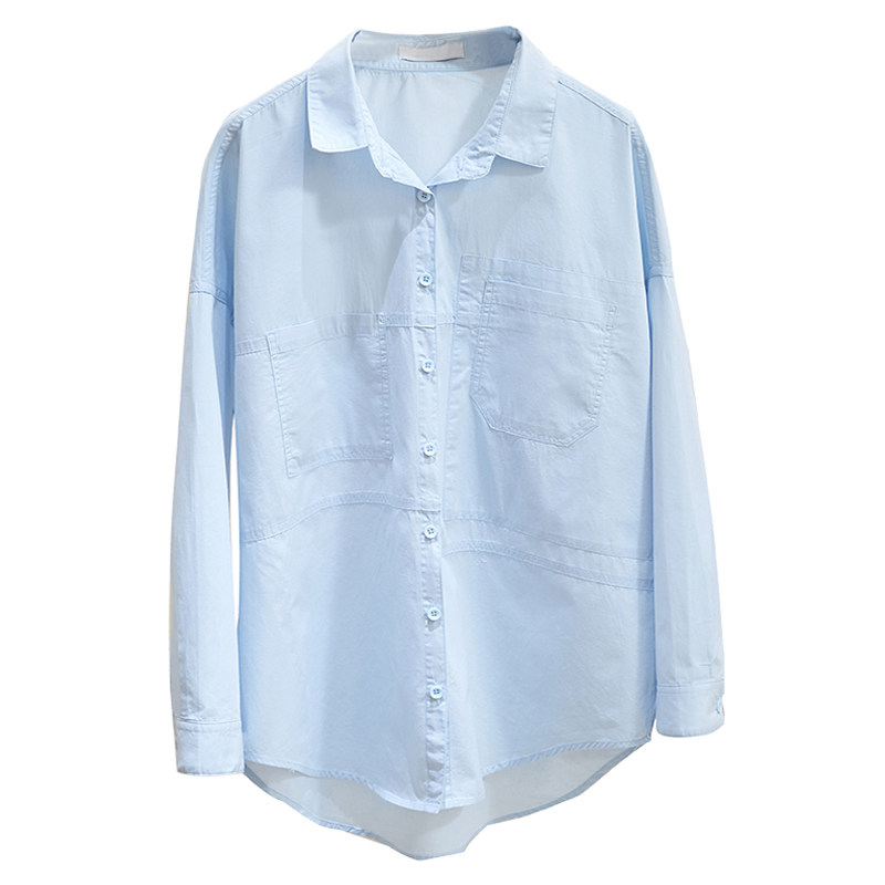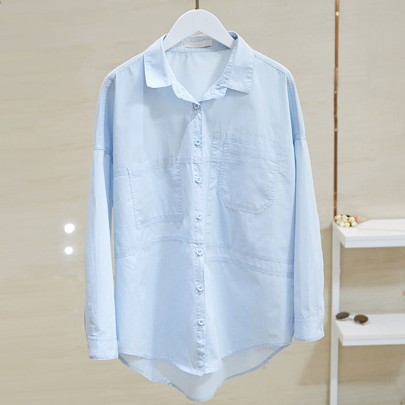 Синяя осенняя рубашка, тонкий кардиган, в корейском стиле