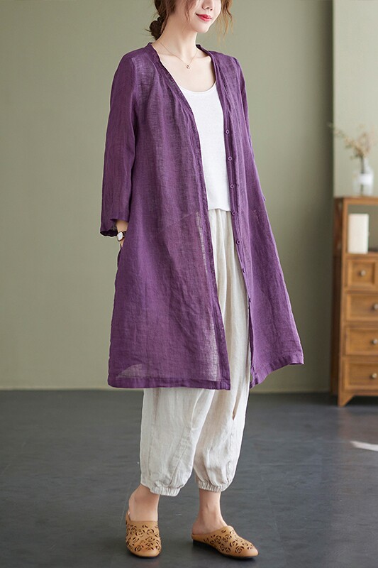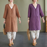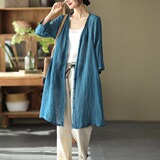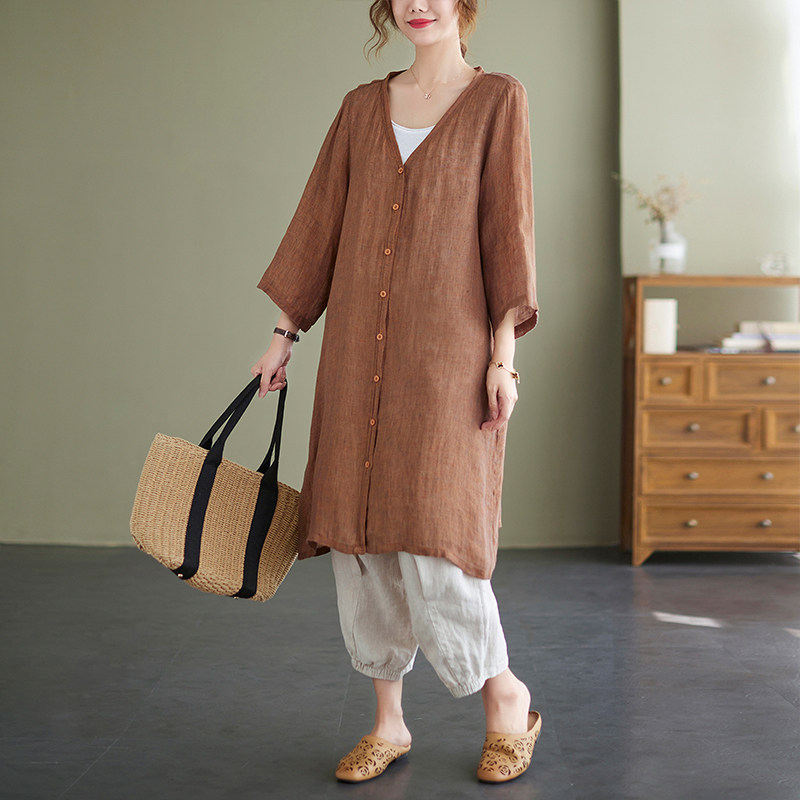 Летняя летняя одежда, длинная рубашка для отдыха, тонкий кардиган, большой размер, средней длины, из хлопка и льна