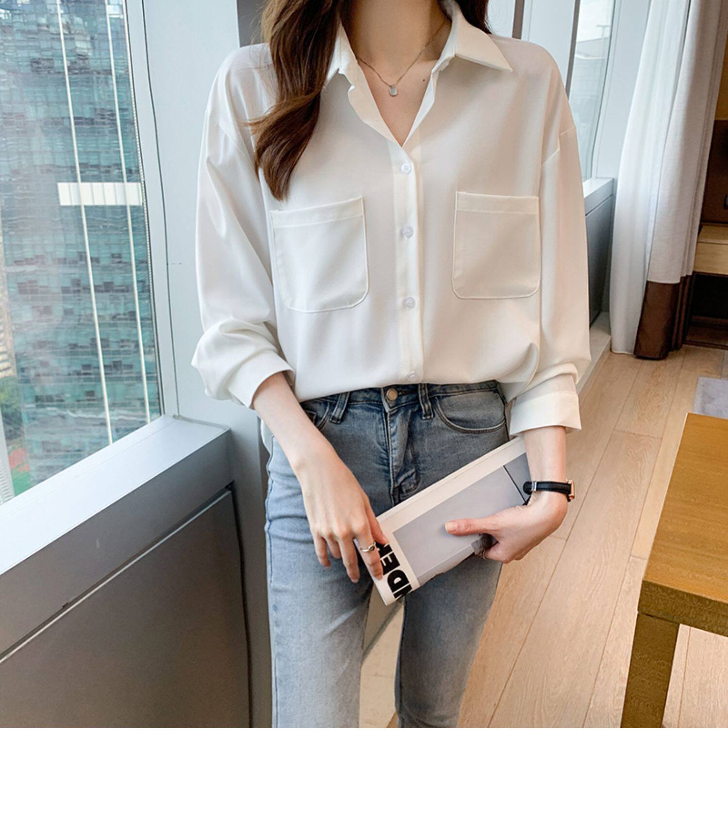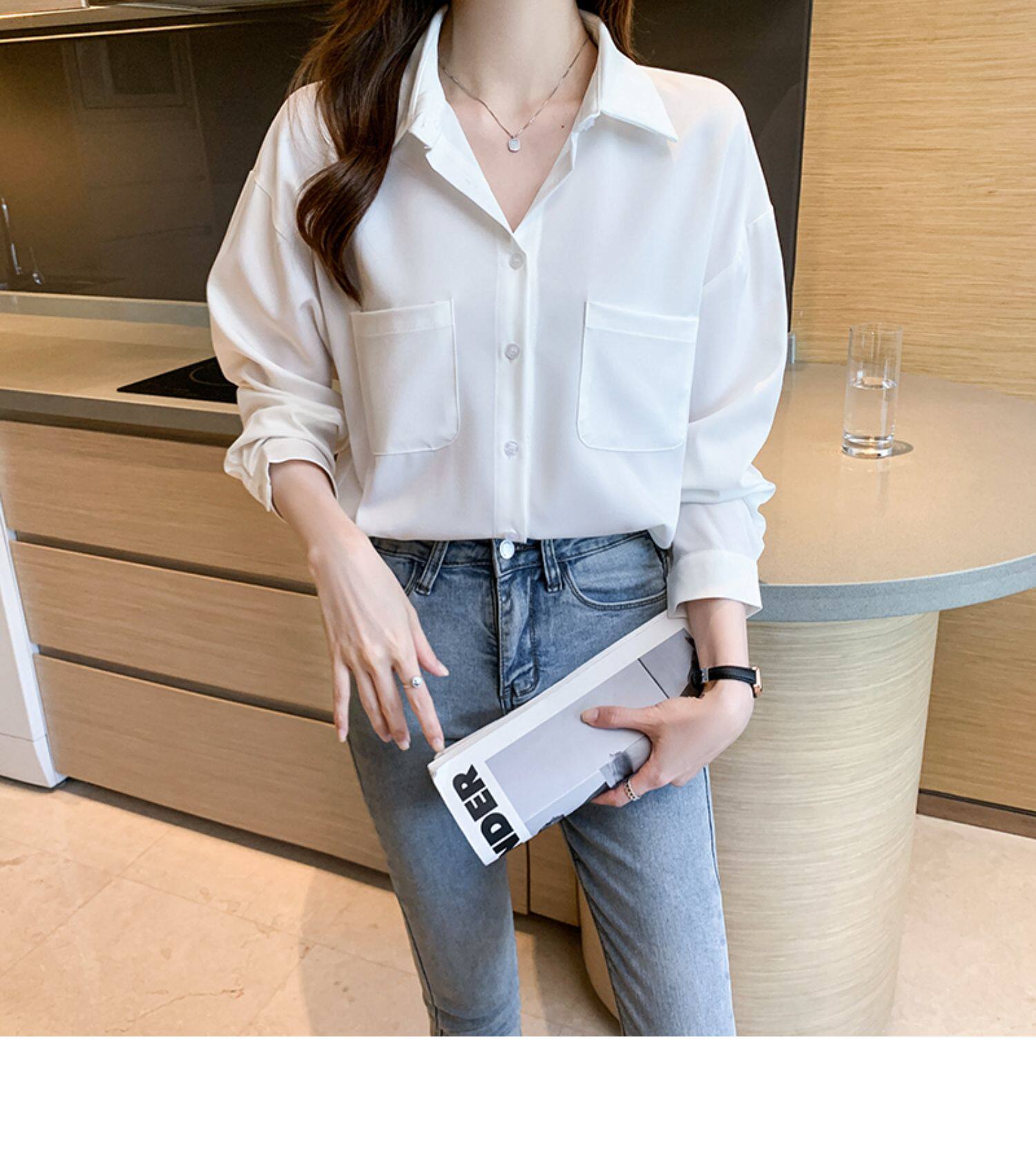 Белая осенняя рубашка, осенний сексуальный тонкий комбинезон