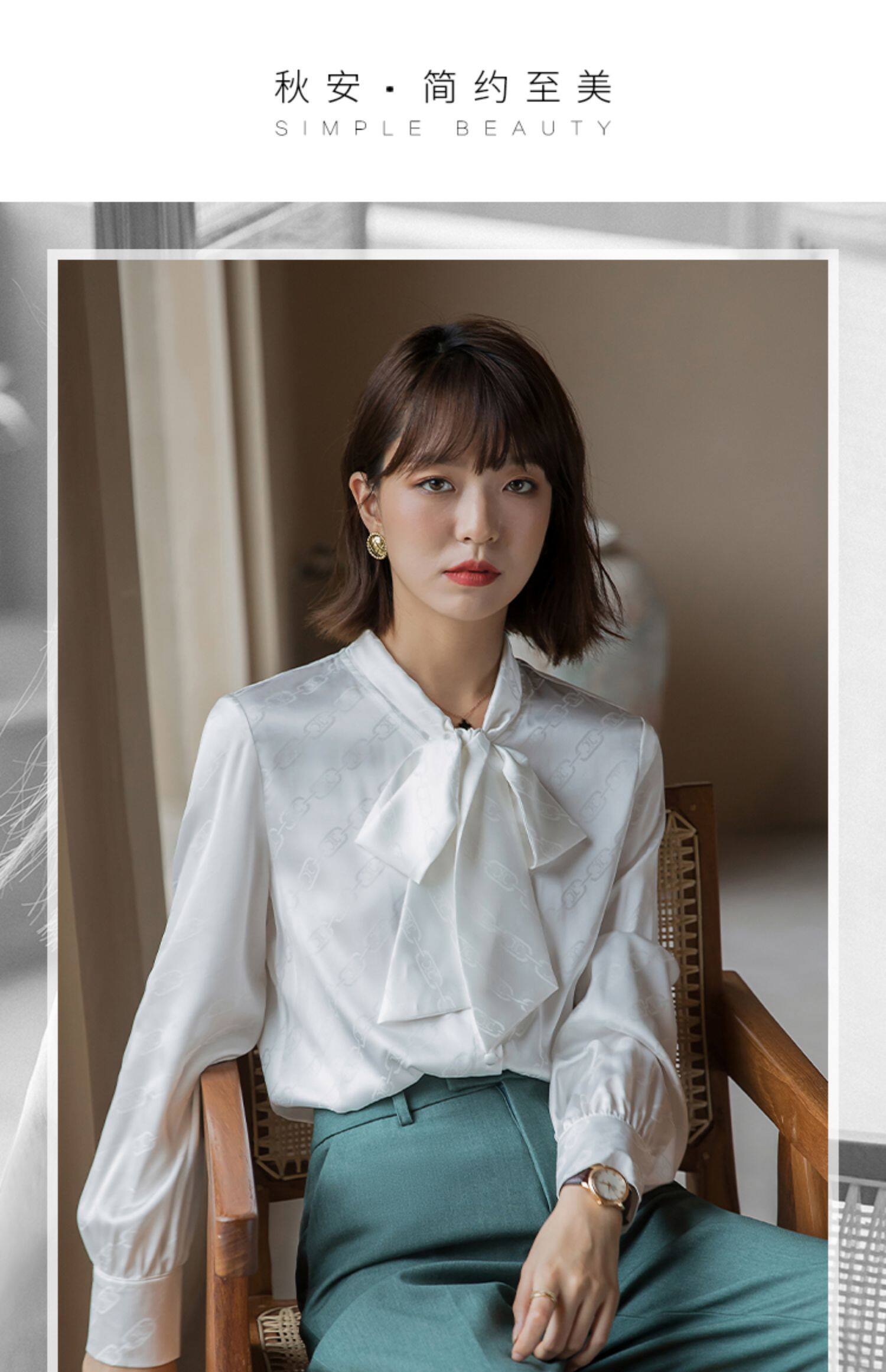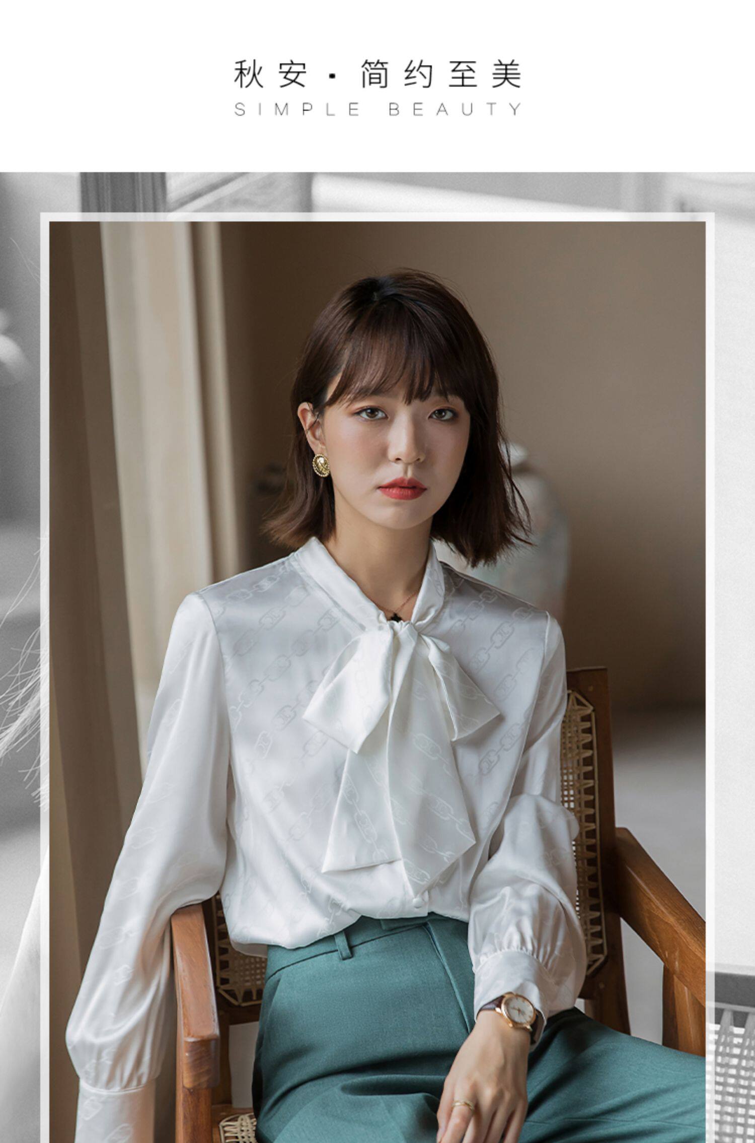 Осенняя рубашка, шифоновый лонгслив с бантиком