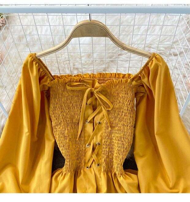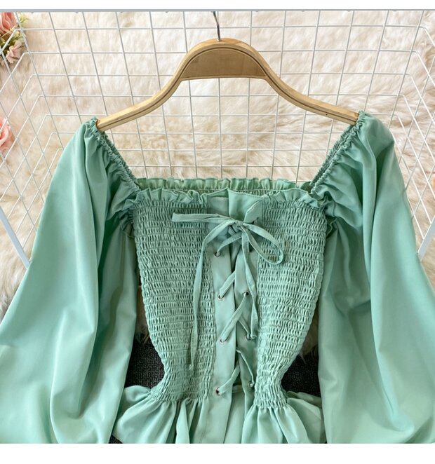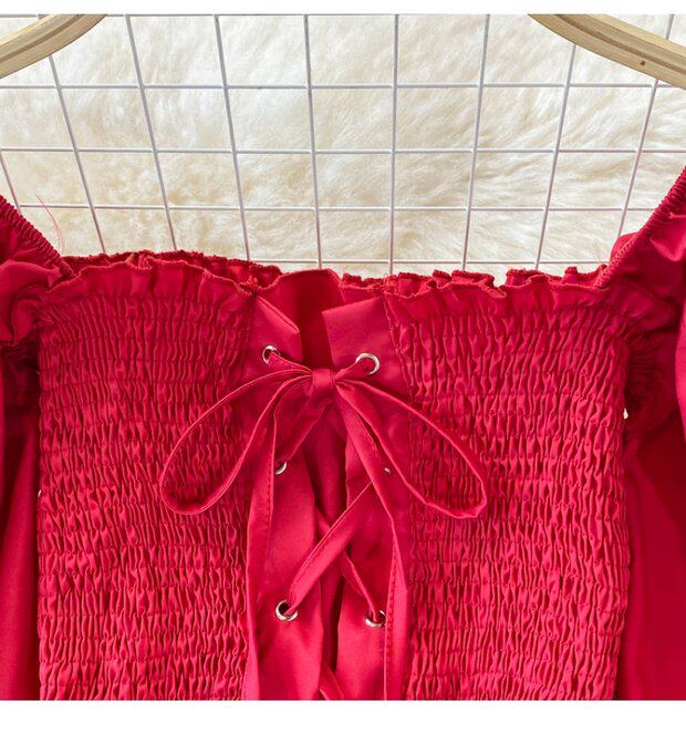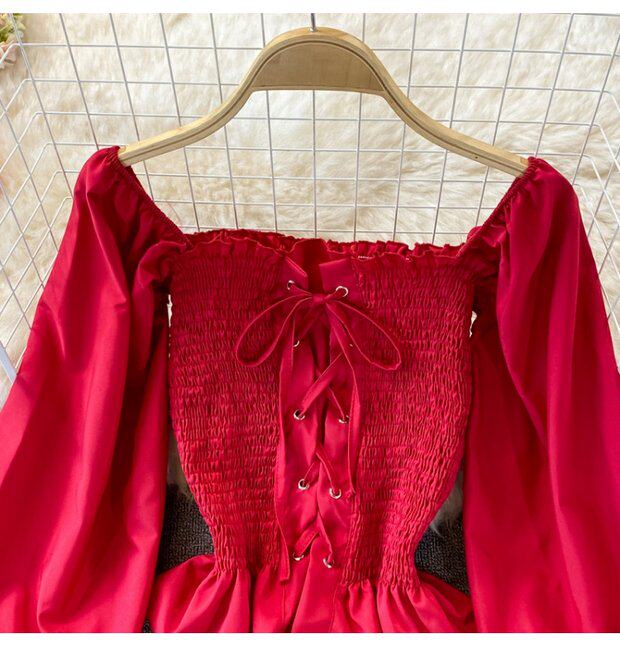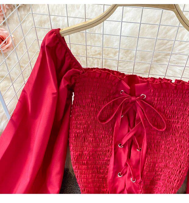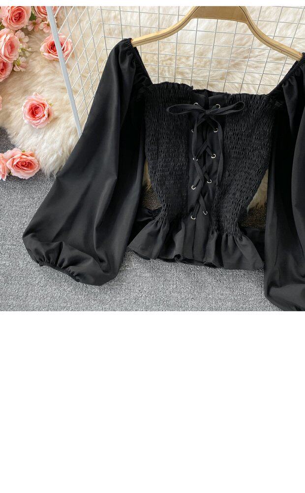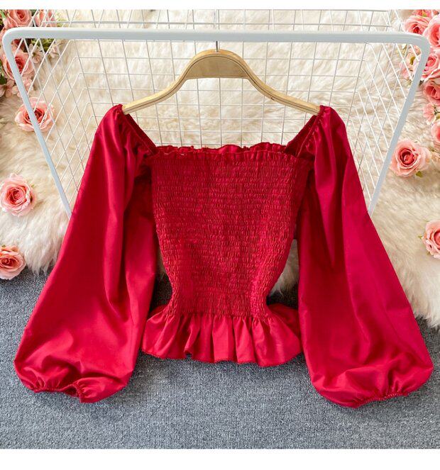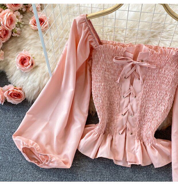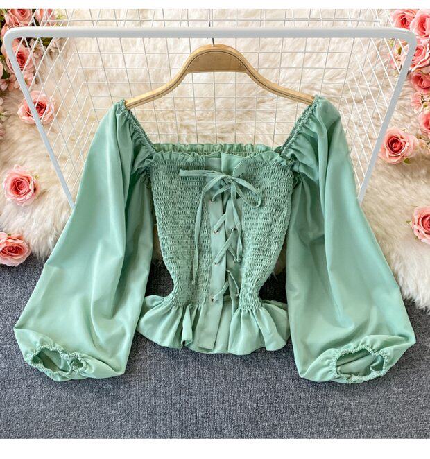 Осенний ретро лонгслив, рубашка, короткий приталенный корсет, французский стиль, квадратный вырез, в западном стиле
