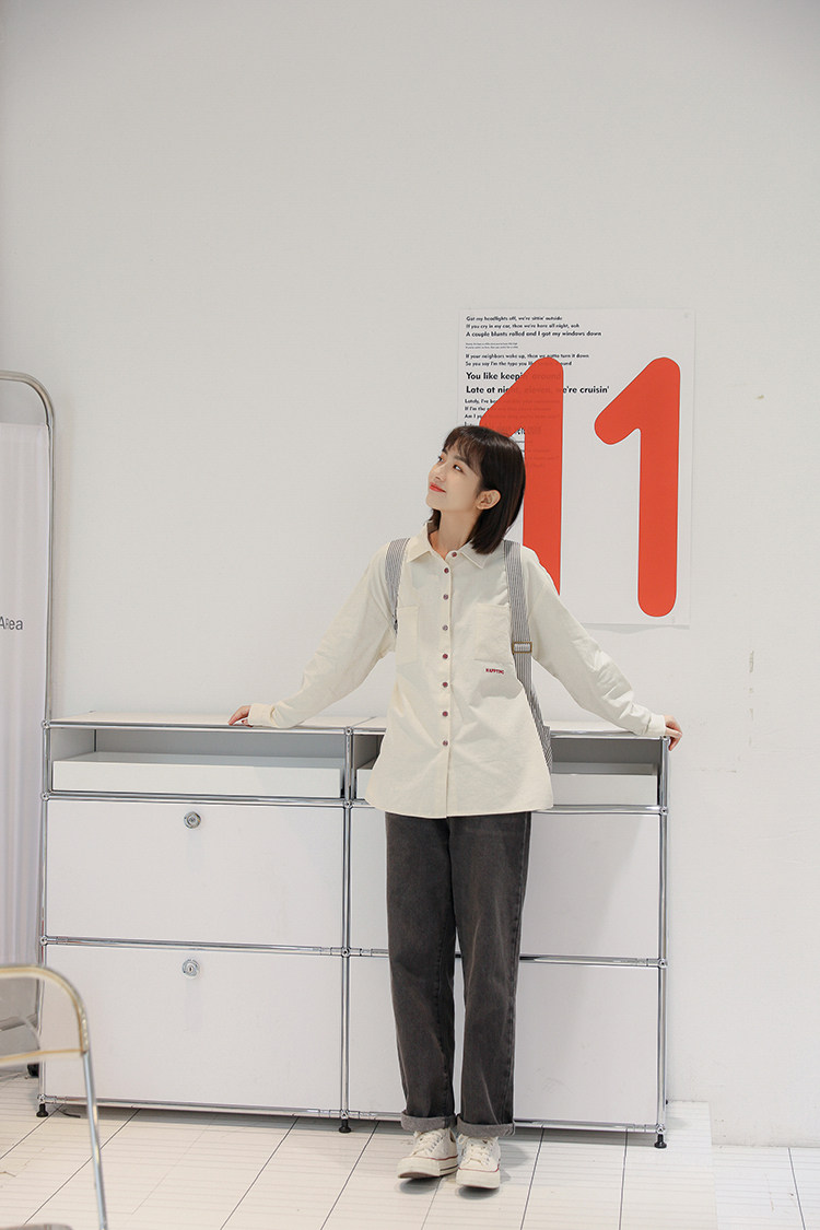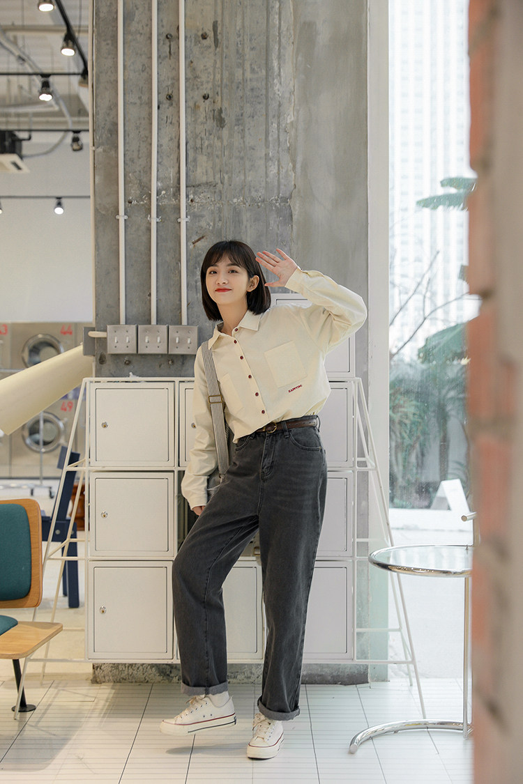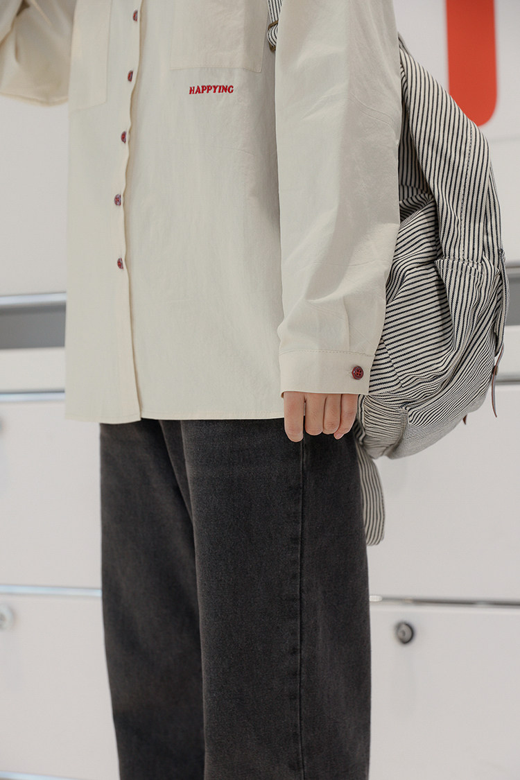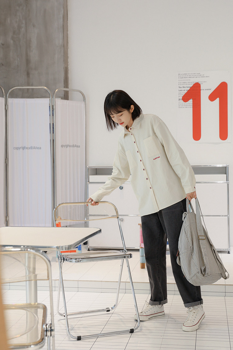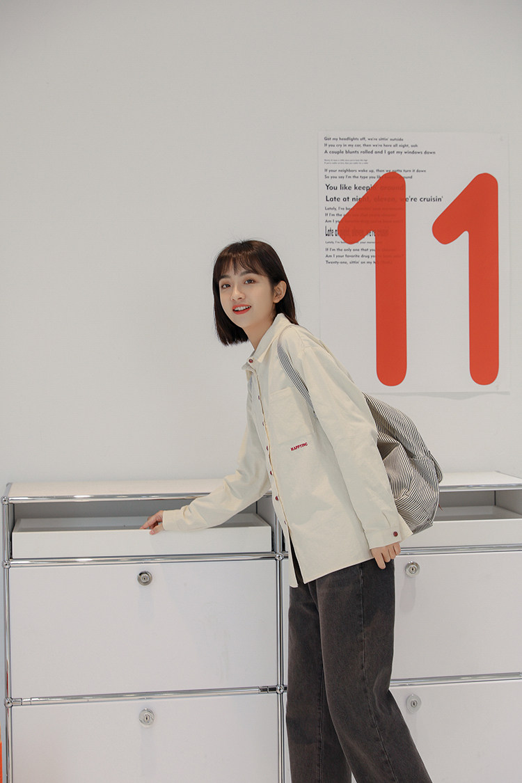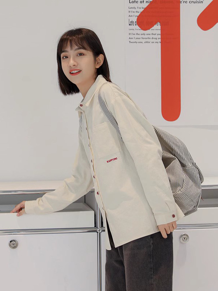 Весенняя японская рубашка, куртка для школьников и студентов, футболка polo, оверсайз, с вышивкой
