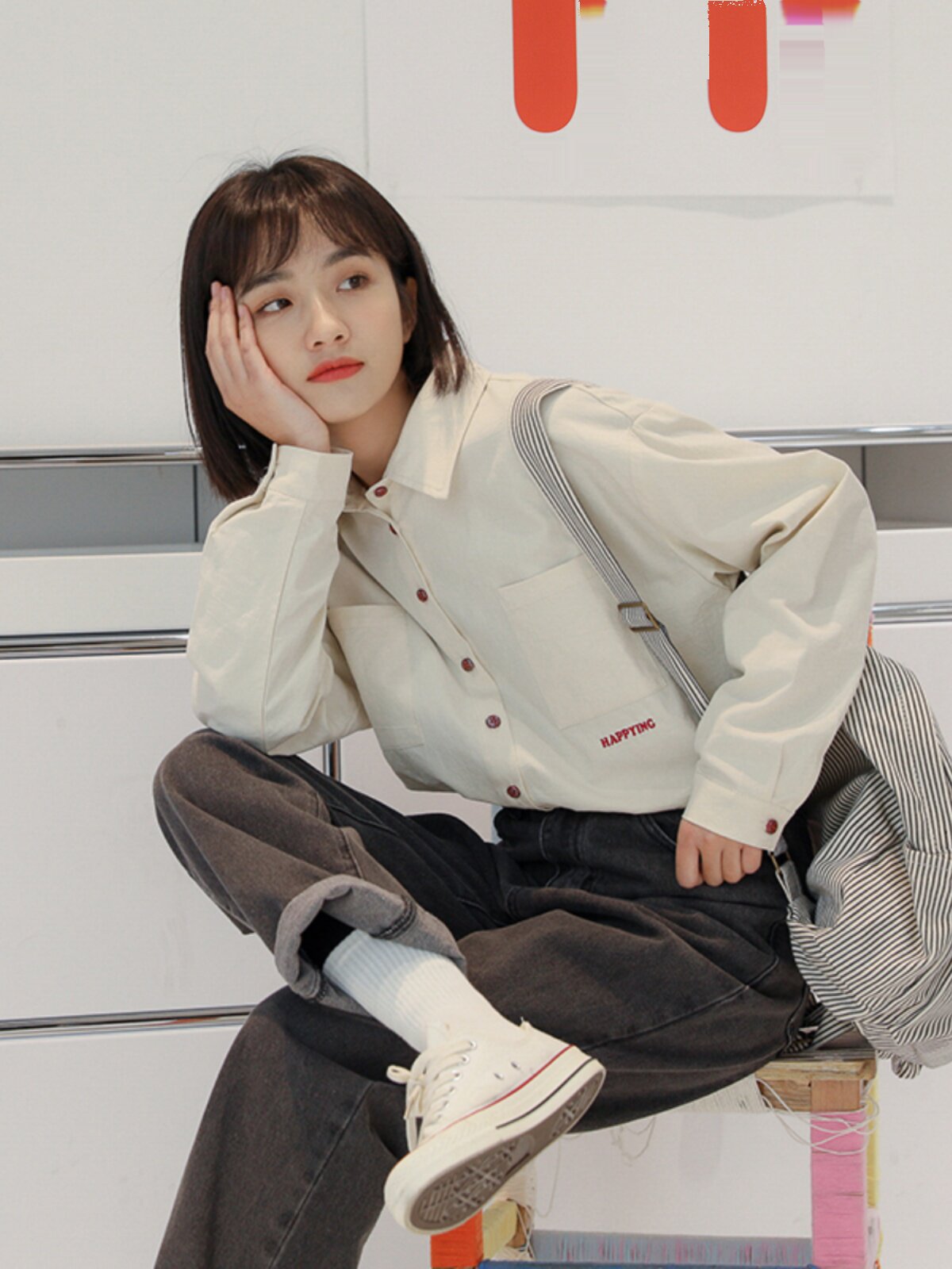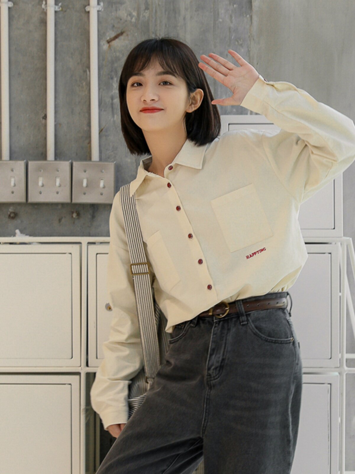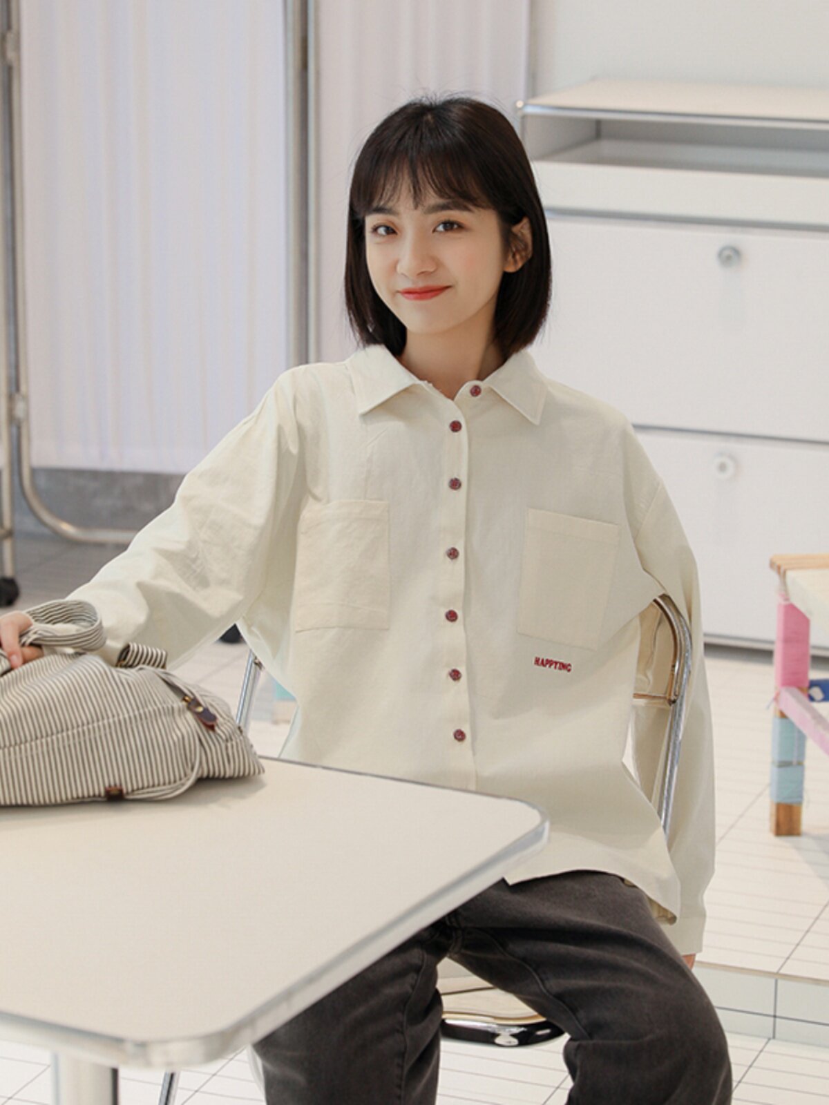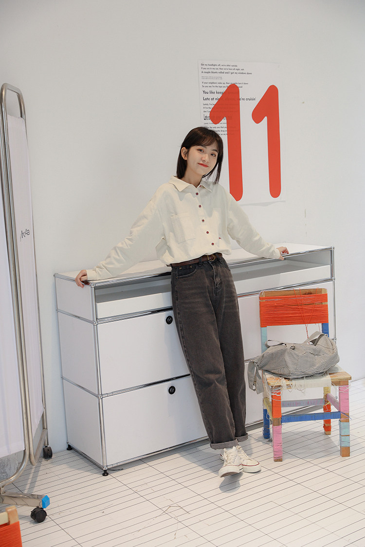 Весенняя японская рубашка, куртка для школьников и студентов, футболка polo, оверсайз, с вышивкой