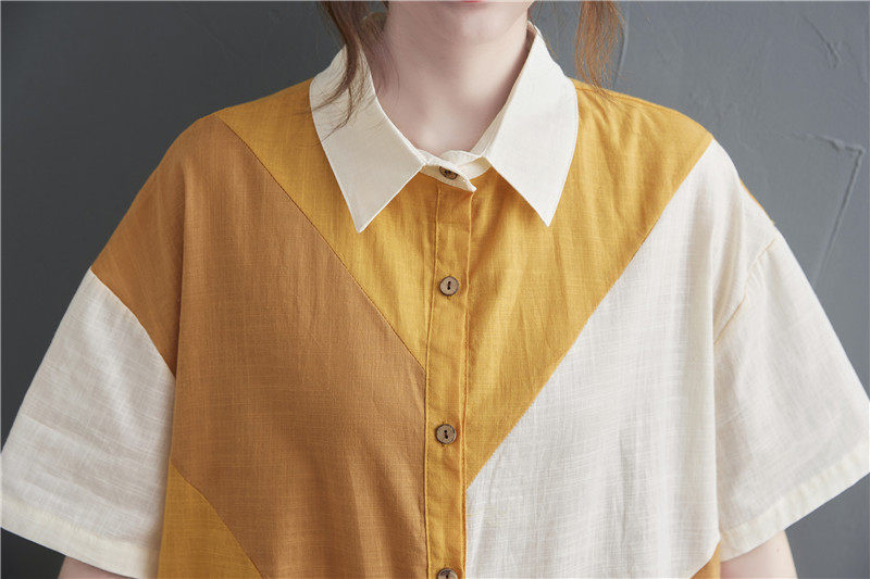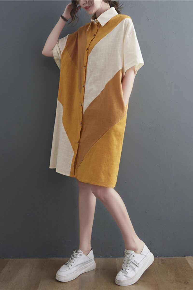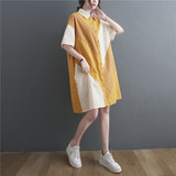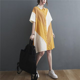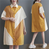 Летнее платье с коротким рукавом, юбка, рубашка, большой размер, свободный крой, из хлопка и льна, в корейском стиле