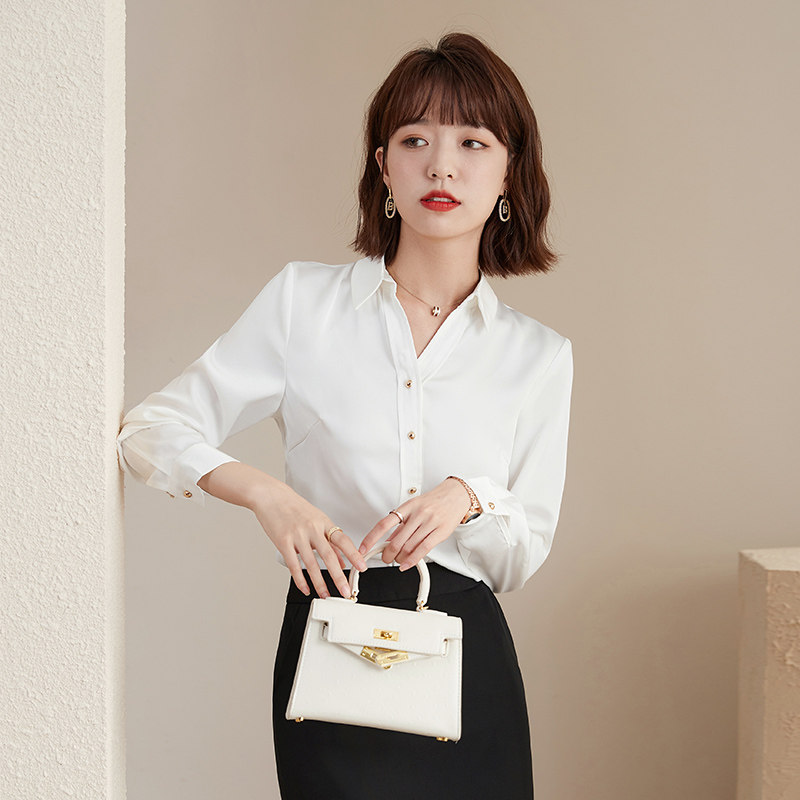 Осенняя небольшая дизайнерская короткая рубашка, воротник поло, тренд сезона