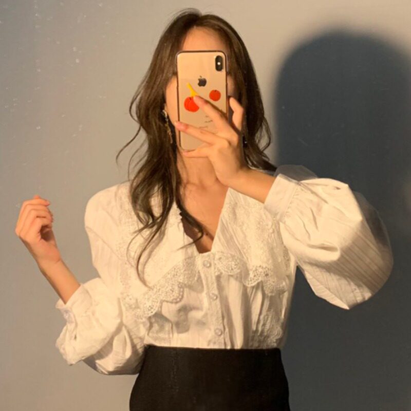 Осенняя ретро кружевная дизайнерская рубашка, в корейском стиле, французский стиль, кружевное платье, тренд сезона