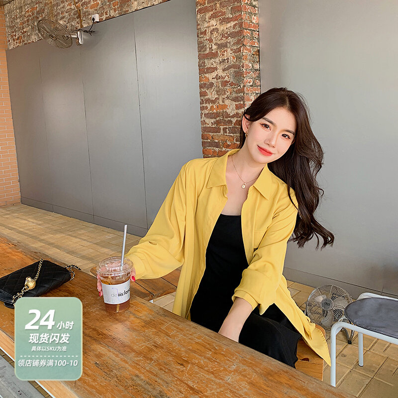 Желтый лонгслив, весенняя рубашка, защита от солнца, коллекция 2022, оверсайз