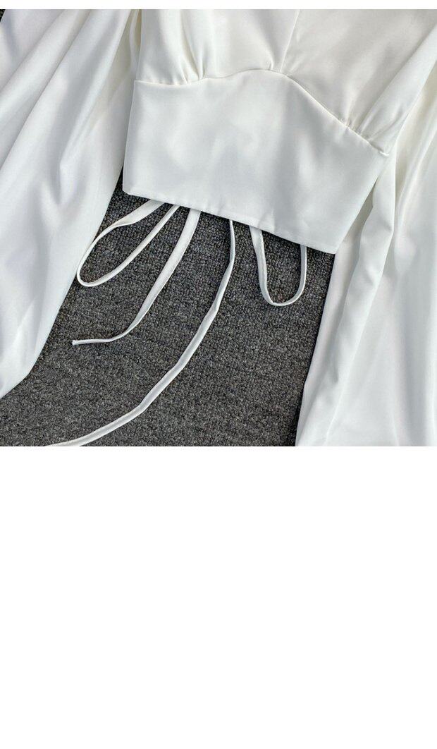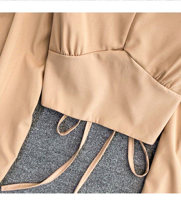 Осенний короткий ремень, рубашка, французский стиль, квадратный вырез, с открытой спиной, в западном стиле