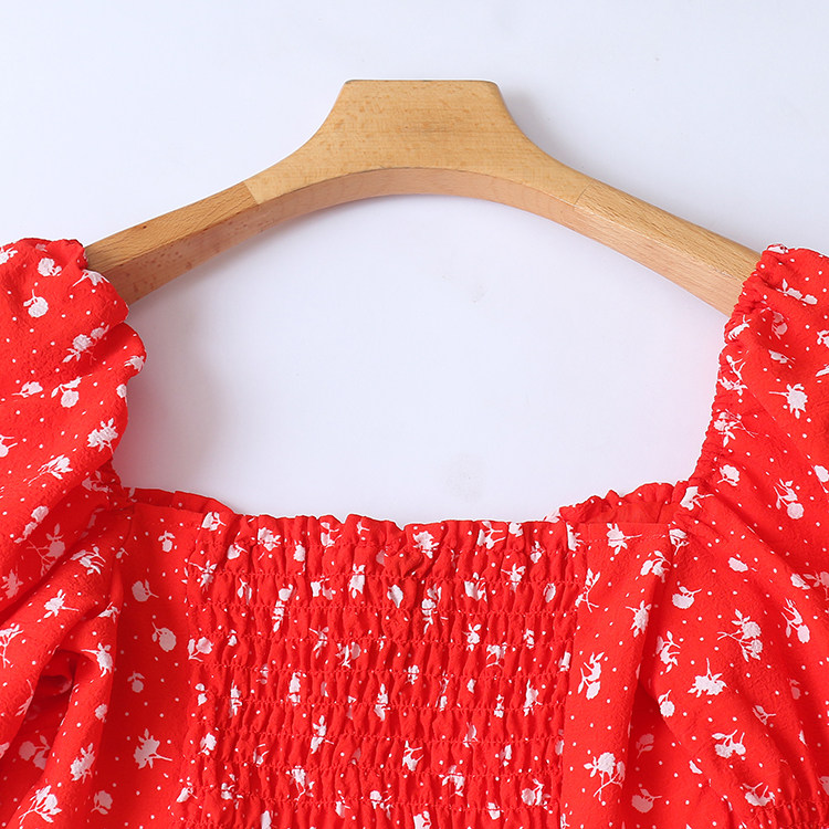 Летняя короткая свежая милая сексуальная модная футболка, французский стиль, квадратный вырез, цветочный принт, короткий рукав, в корейском стиле