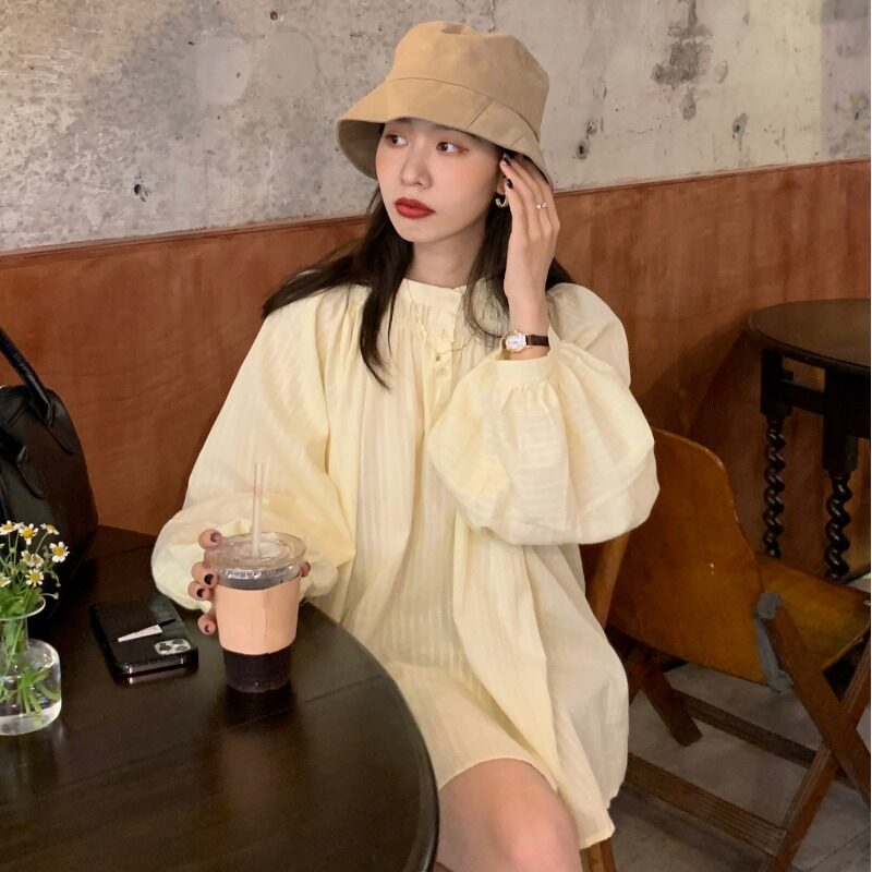 Осенний дизайнерский фонарь с круглым воротником, рубашка, в корейском стиле, в западном стиле, тренд сезона
