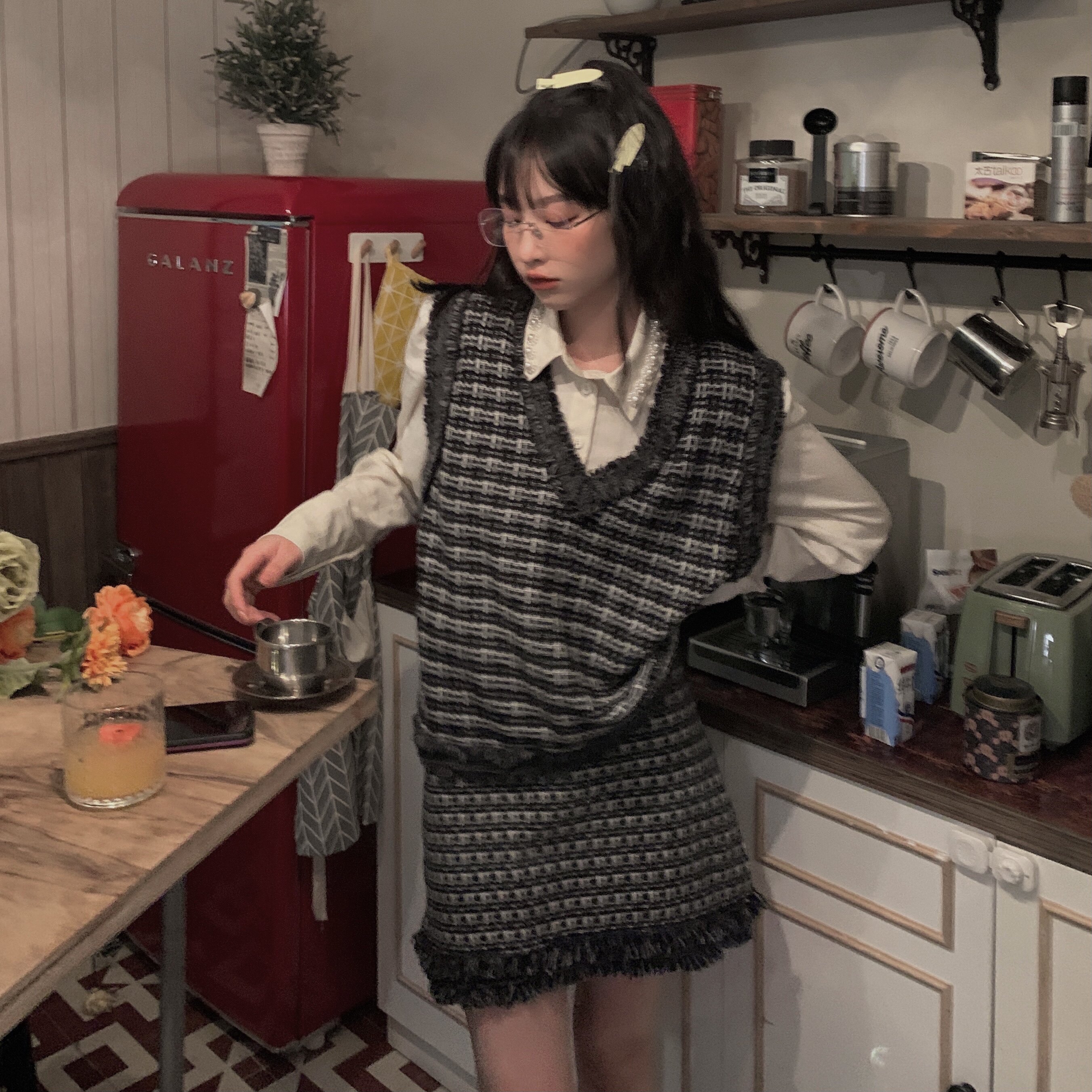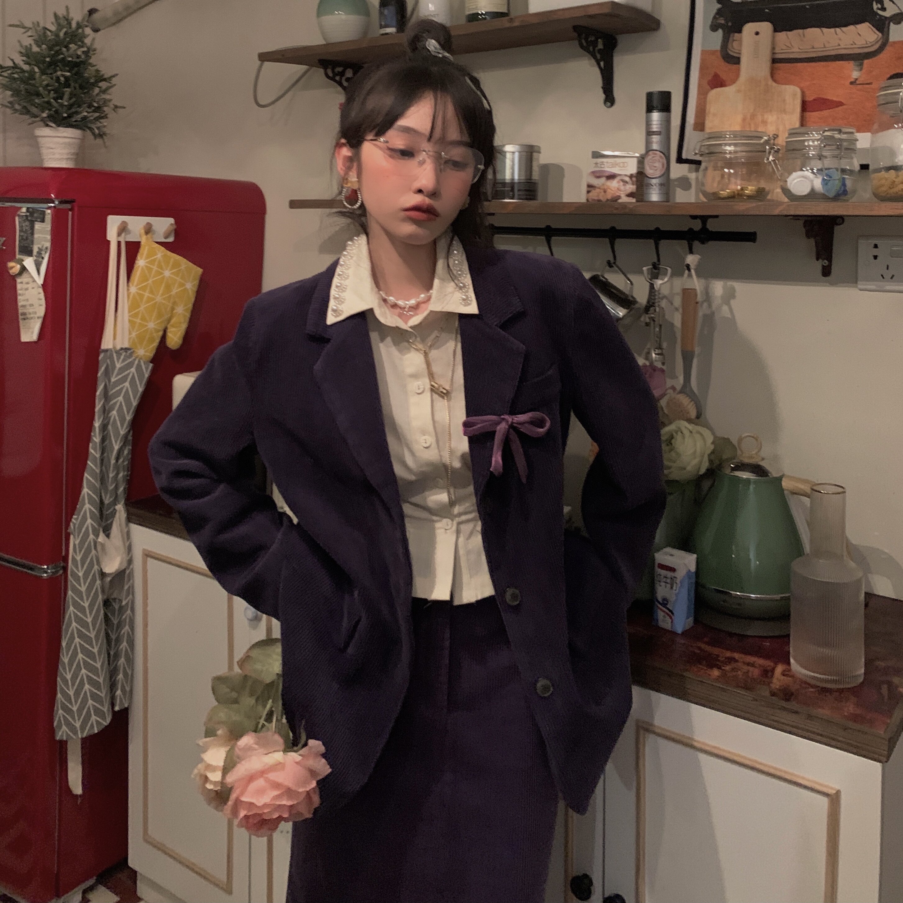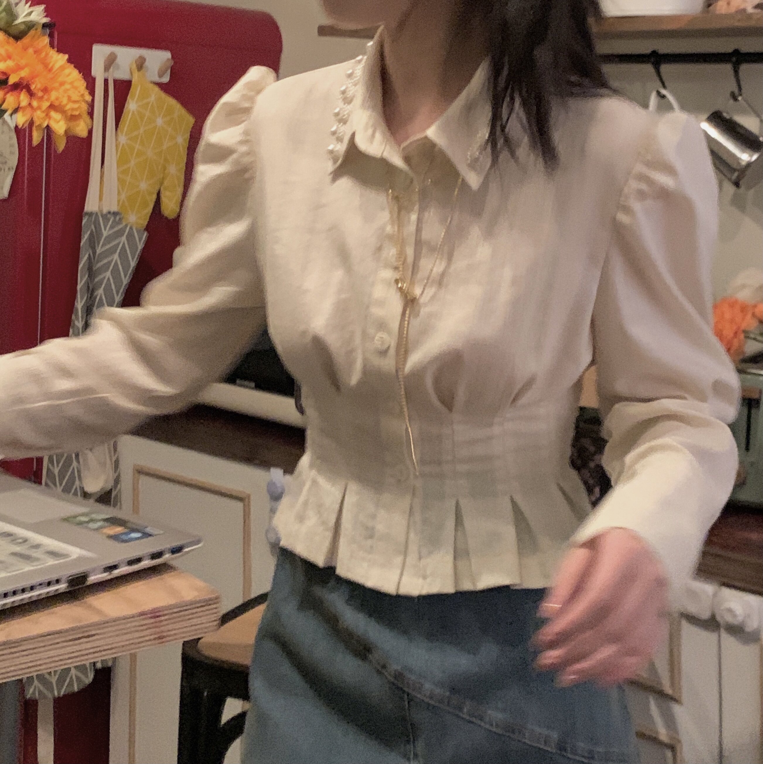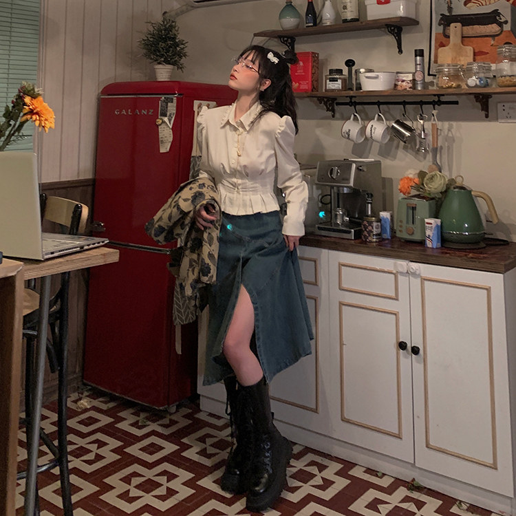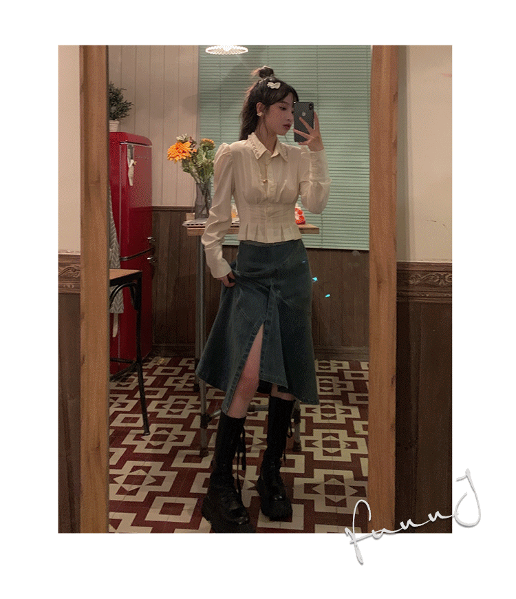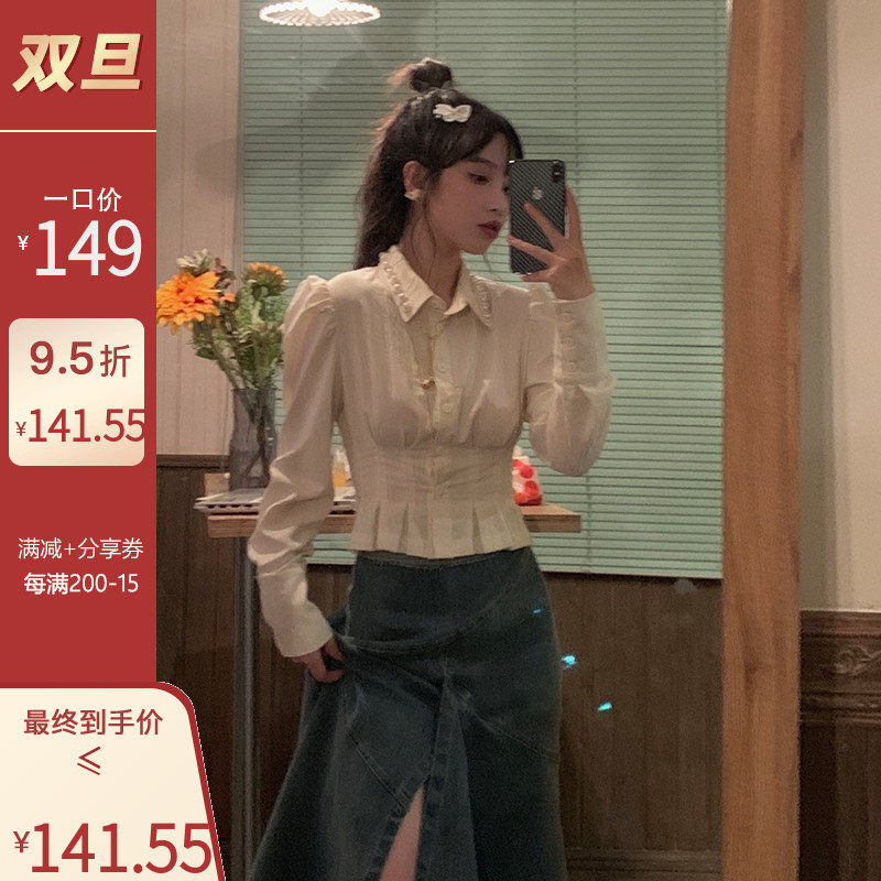 FunnJ fangji◆Талия снова тоньше. Дизайнерская нишевая рубашка с жемчугом для женщин. Тонкий внутренний топ в стиле ретро на весну.