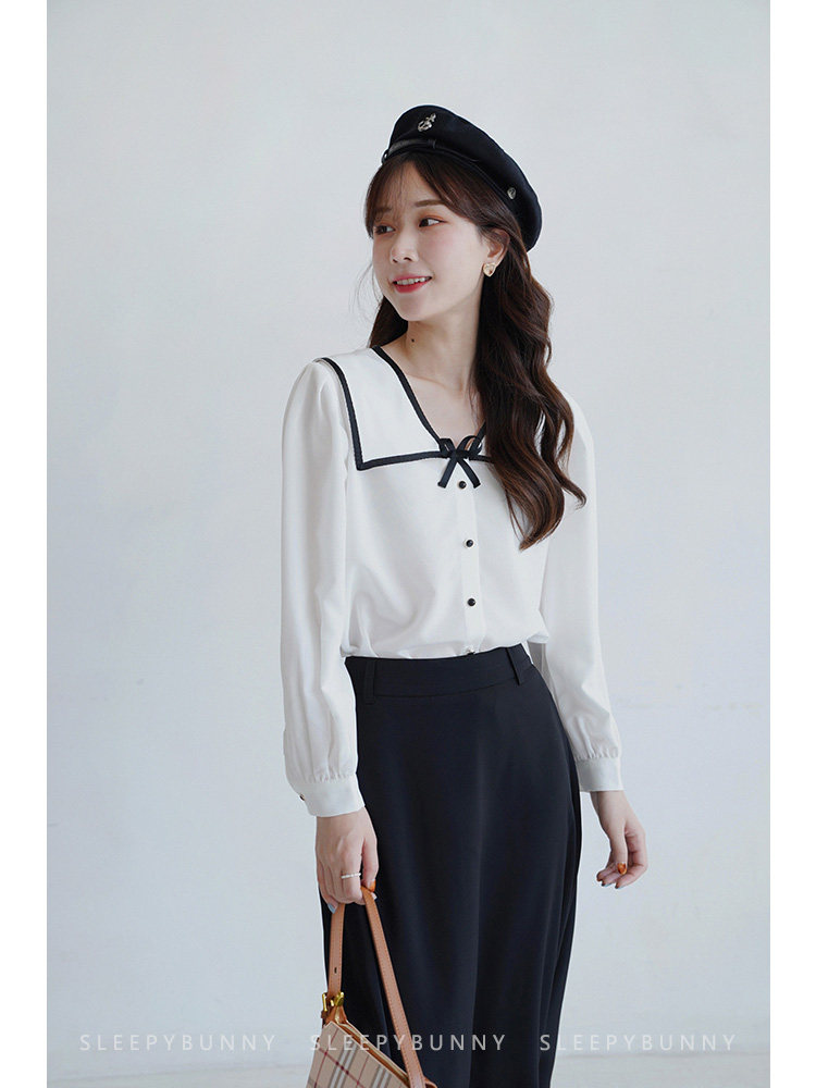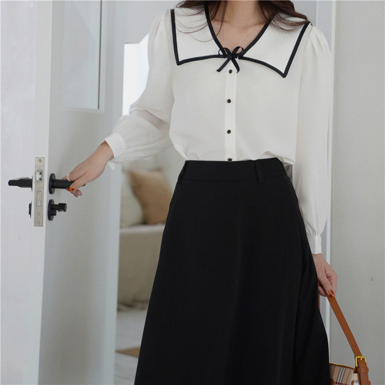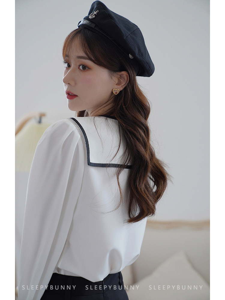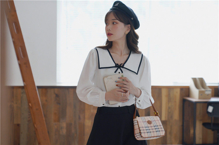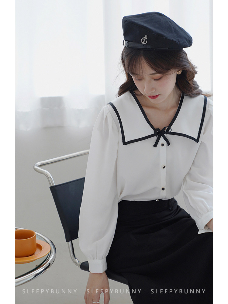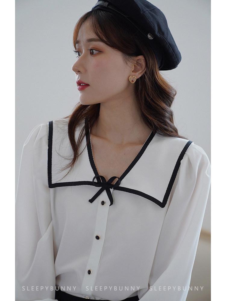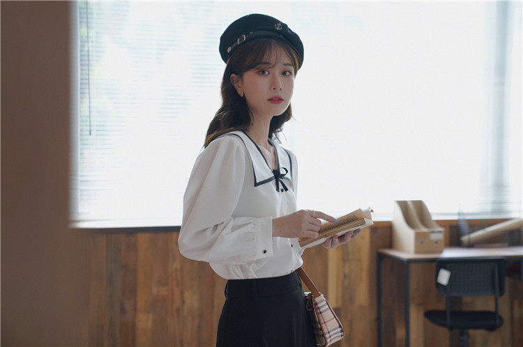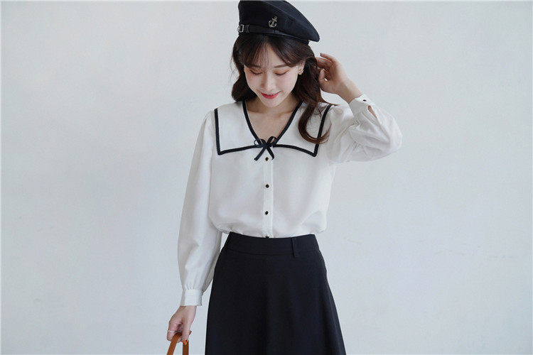 Военно-морская осенняя свежая японская тонкая шифоновая рубашка