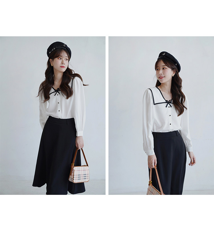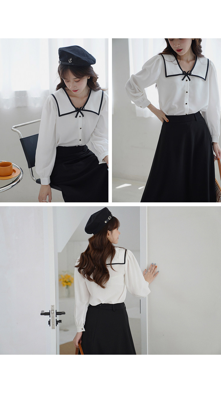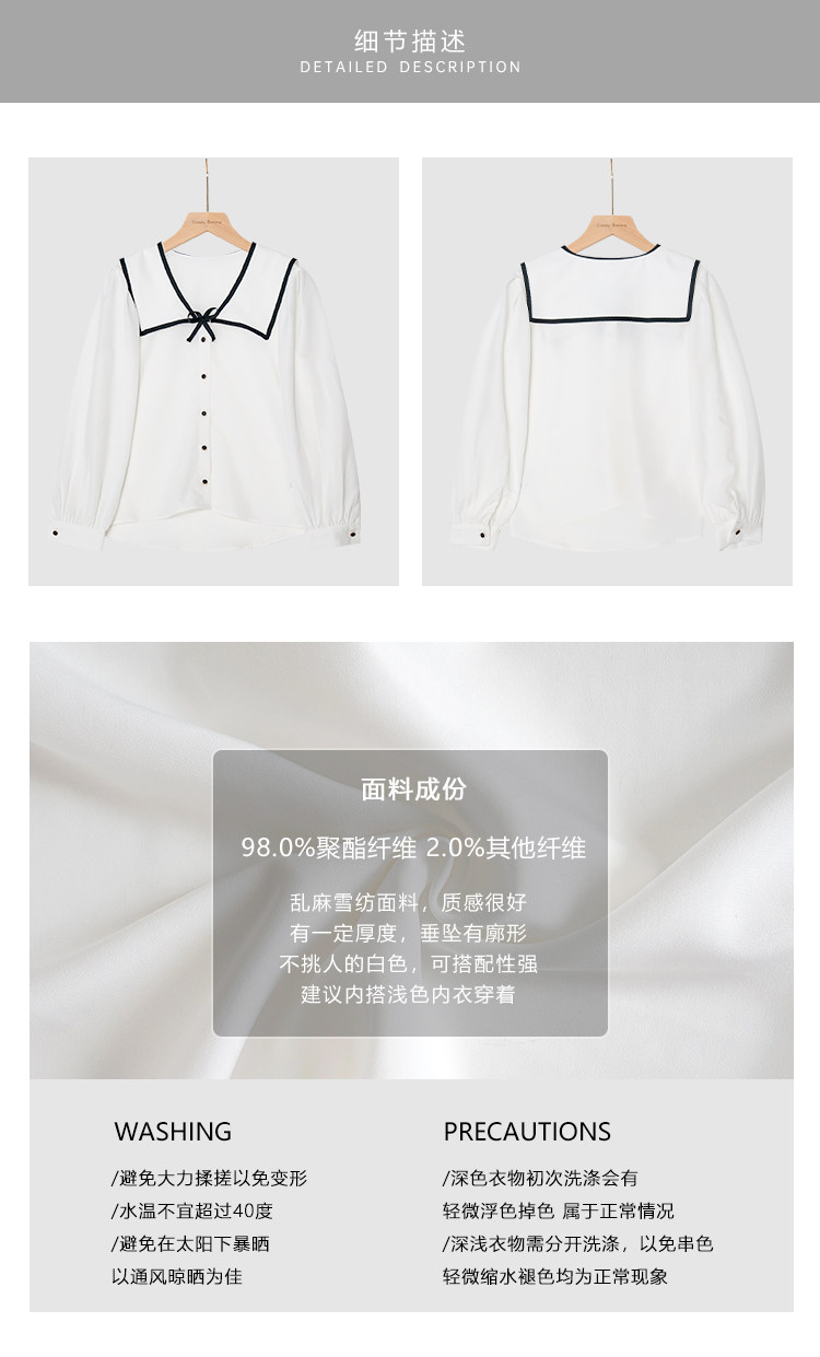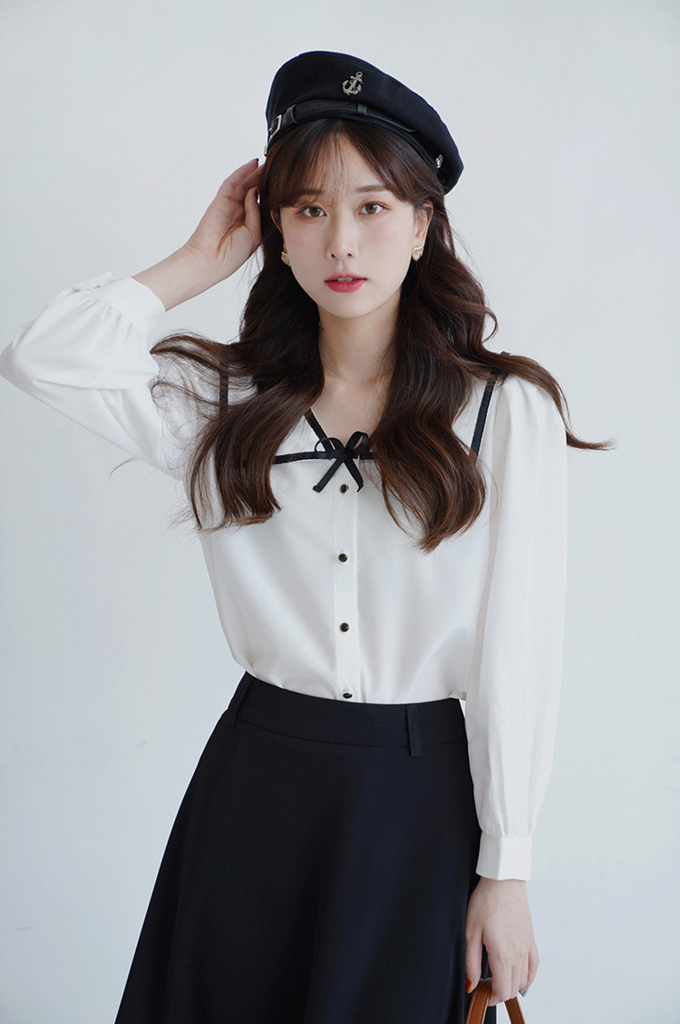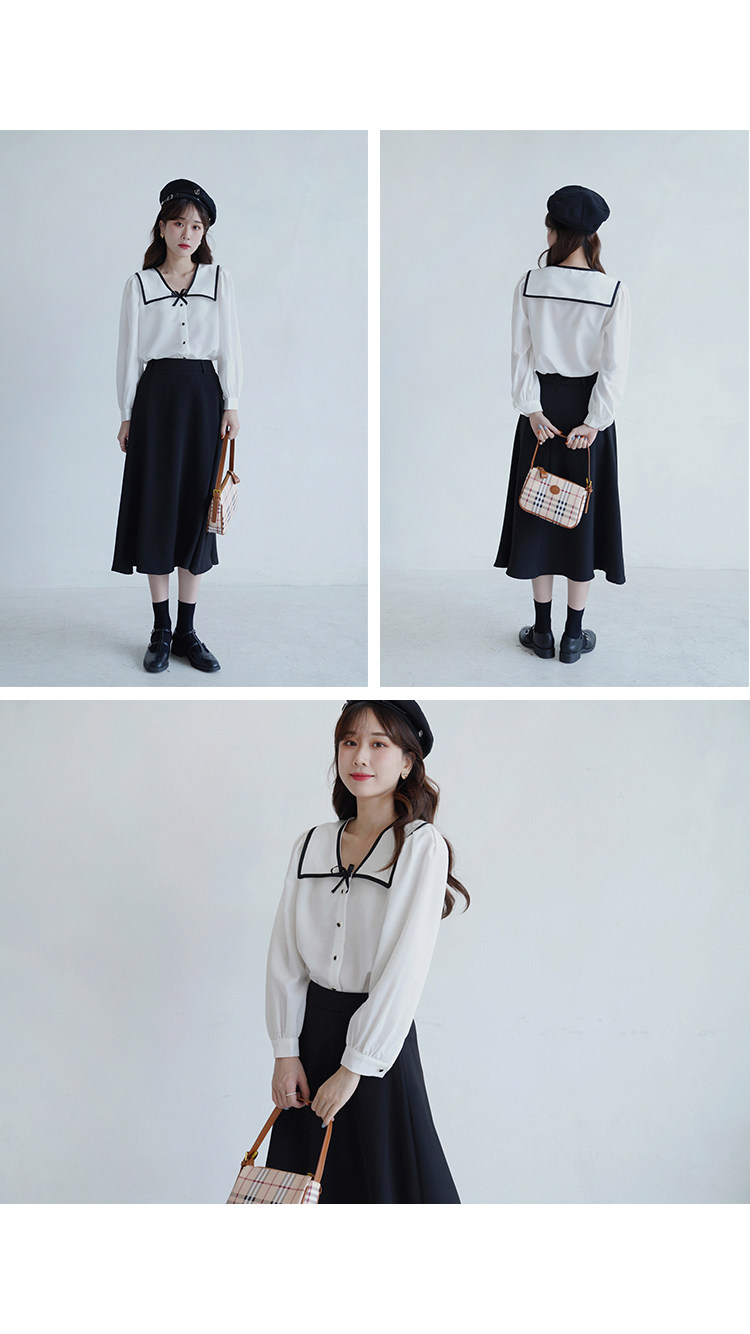 Военно-морская осенняя свежая японская тонкая шифоновая рубашка