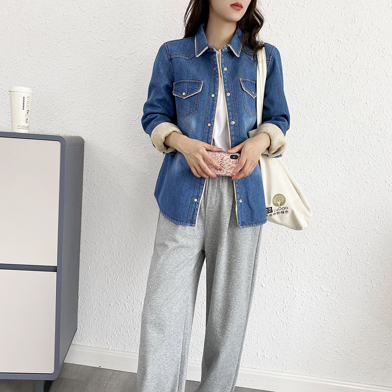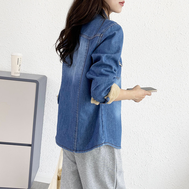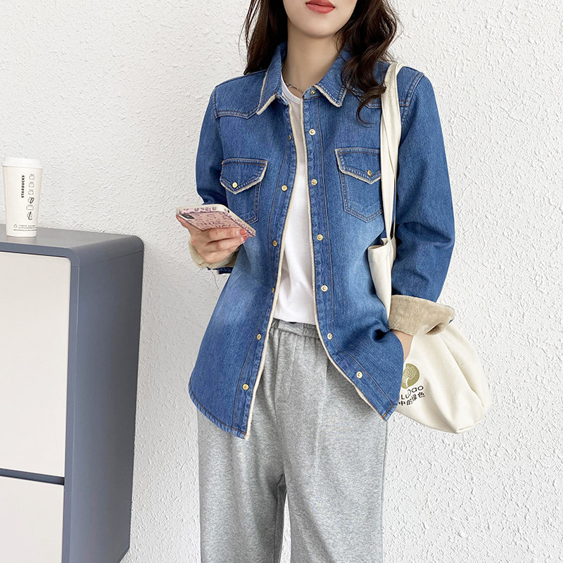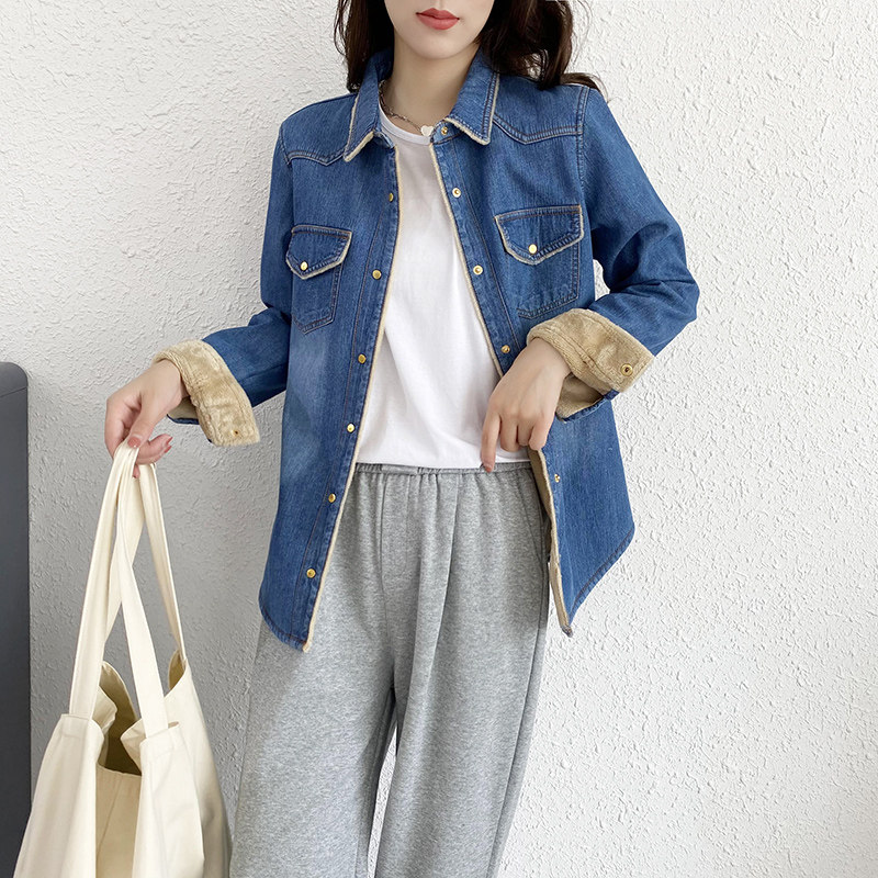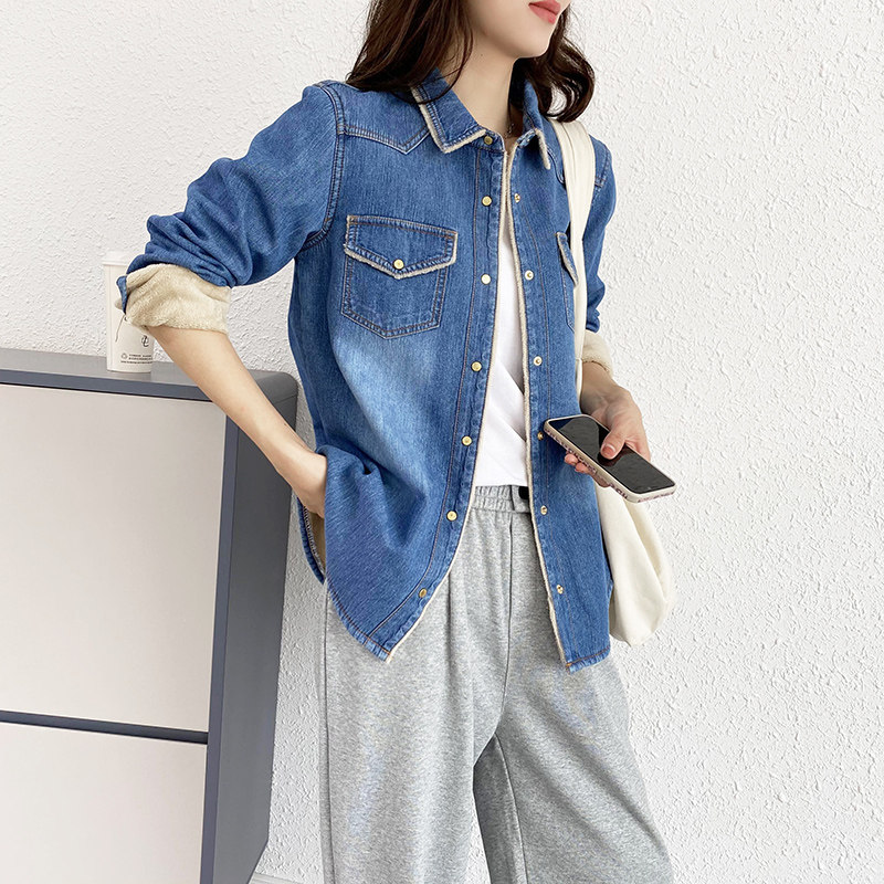 Дизайнерская флисовая демисезонная рубашка, тренд сезона, в корейском стиле, облегающий крой, увеличенная толщина