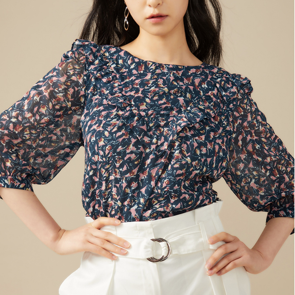 Spot Mind Bridge домашняя стойка настоящая осенняя женская рубашка с круглым вырезом и цветочным принтом MUBL521B-698