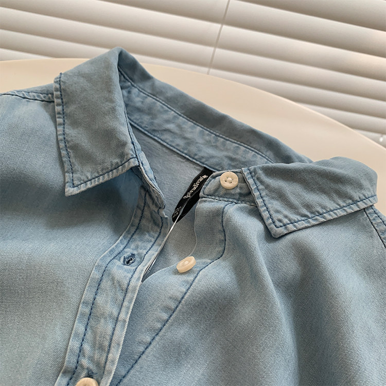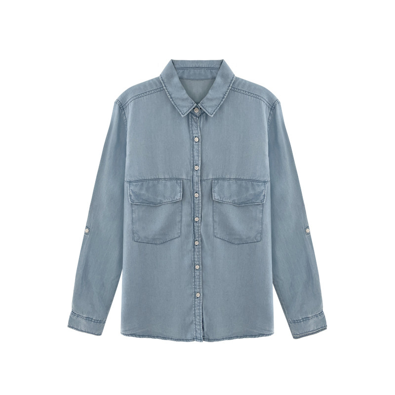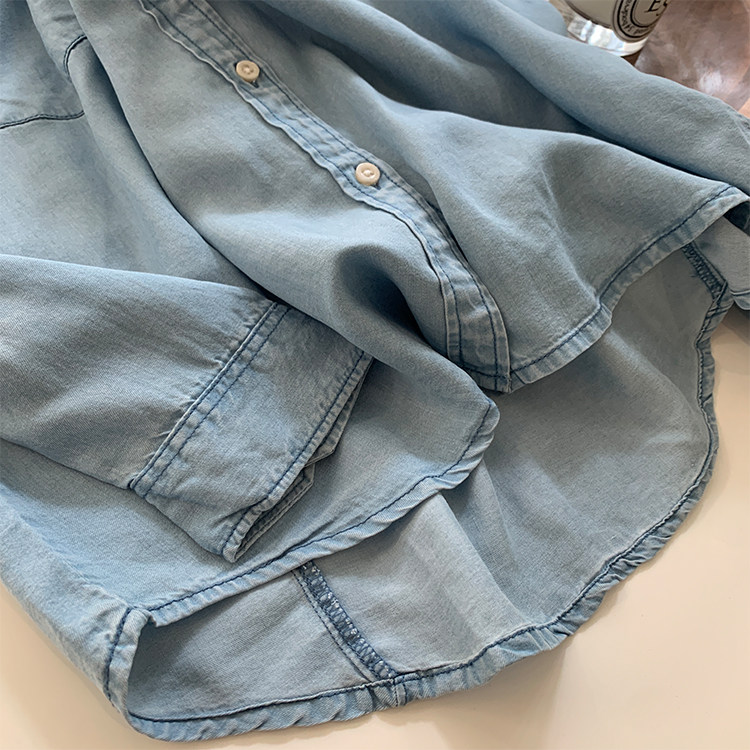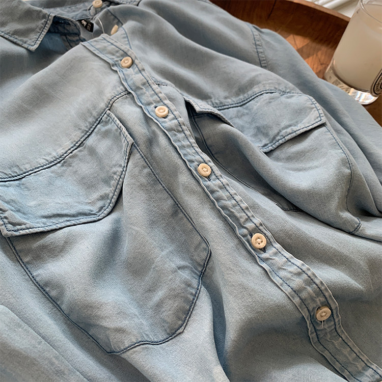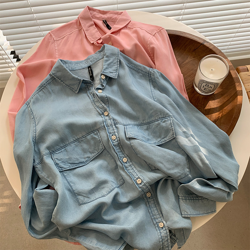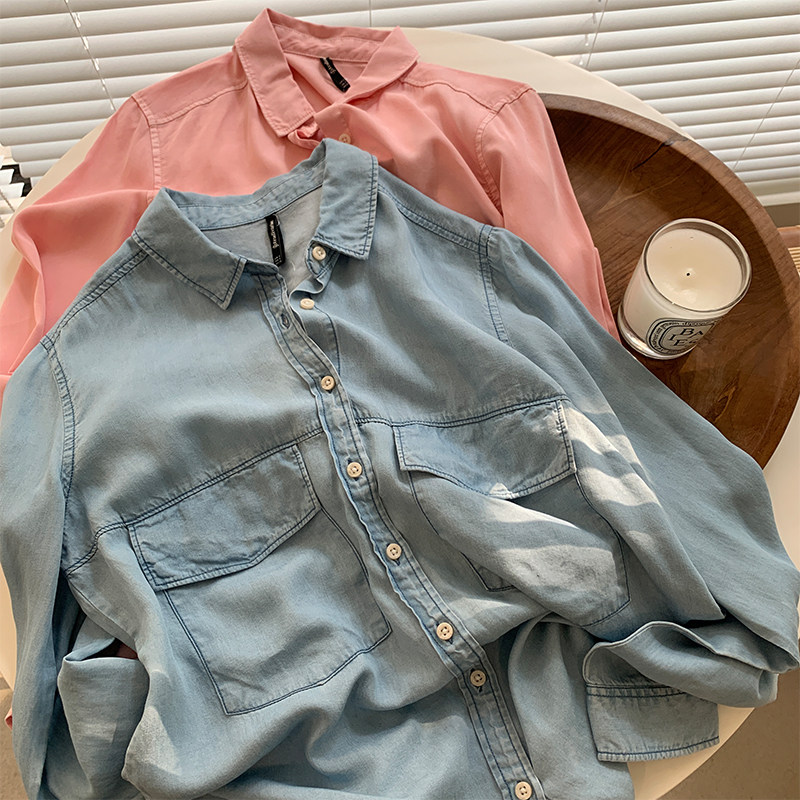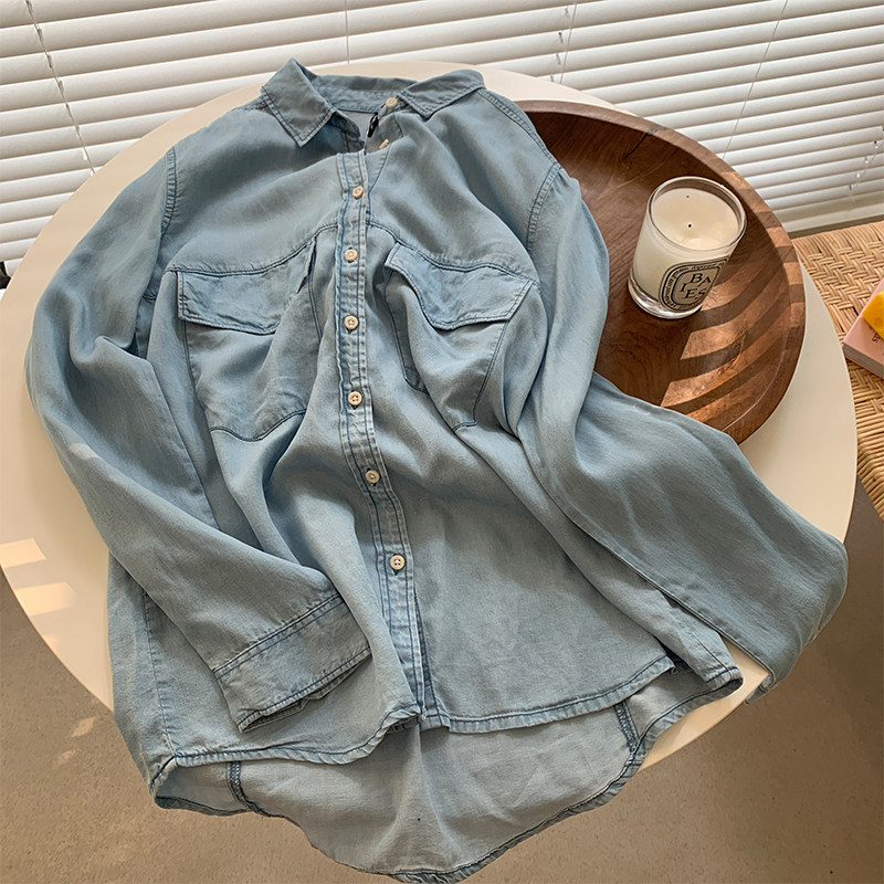 Джинсовая весенняя ретро синяя рубашка для отдыха, в корейском стиле, тренд сезона, оверсайз