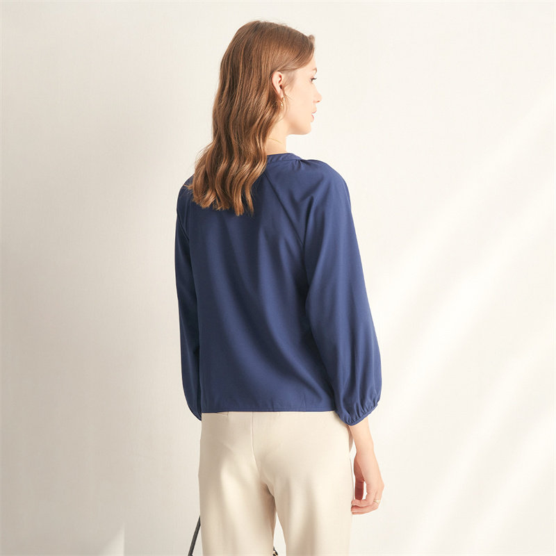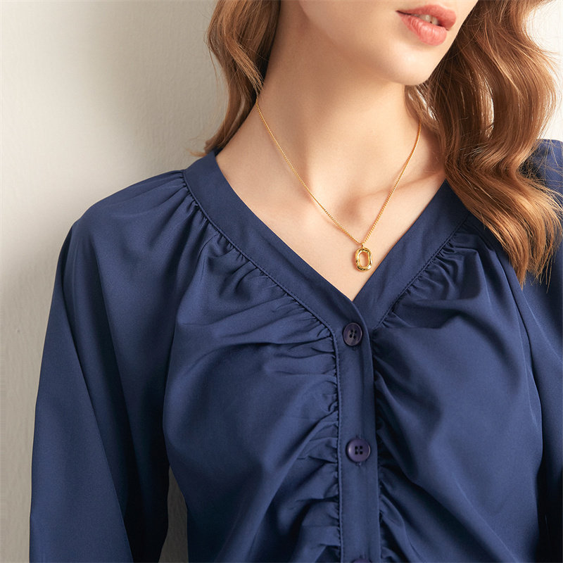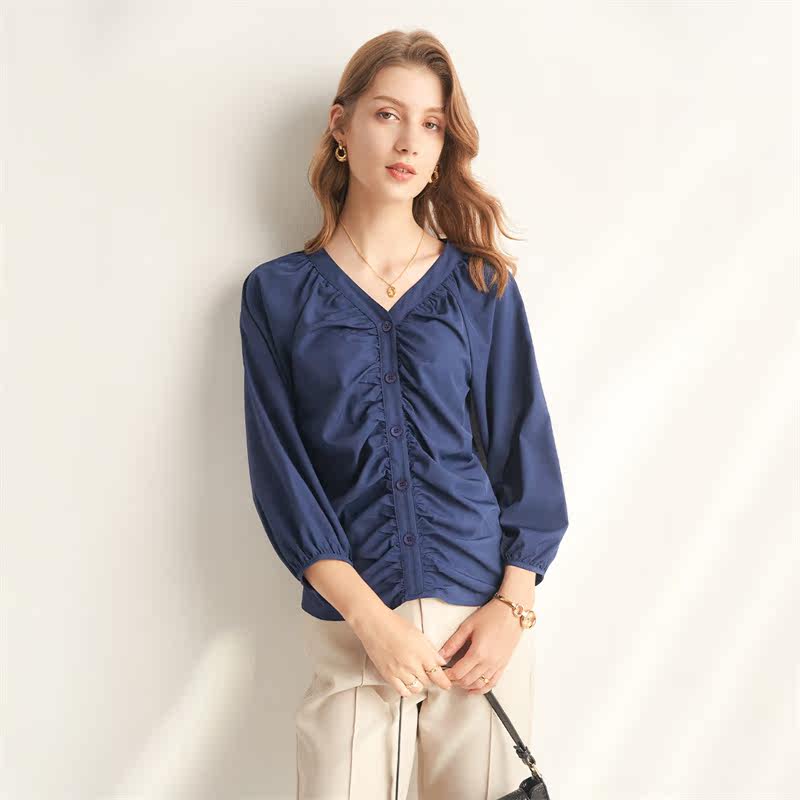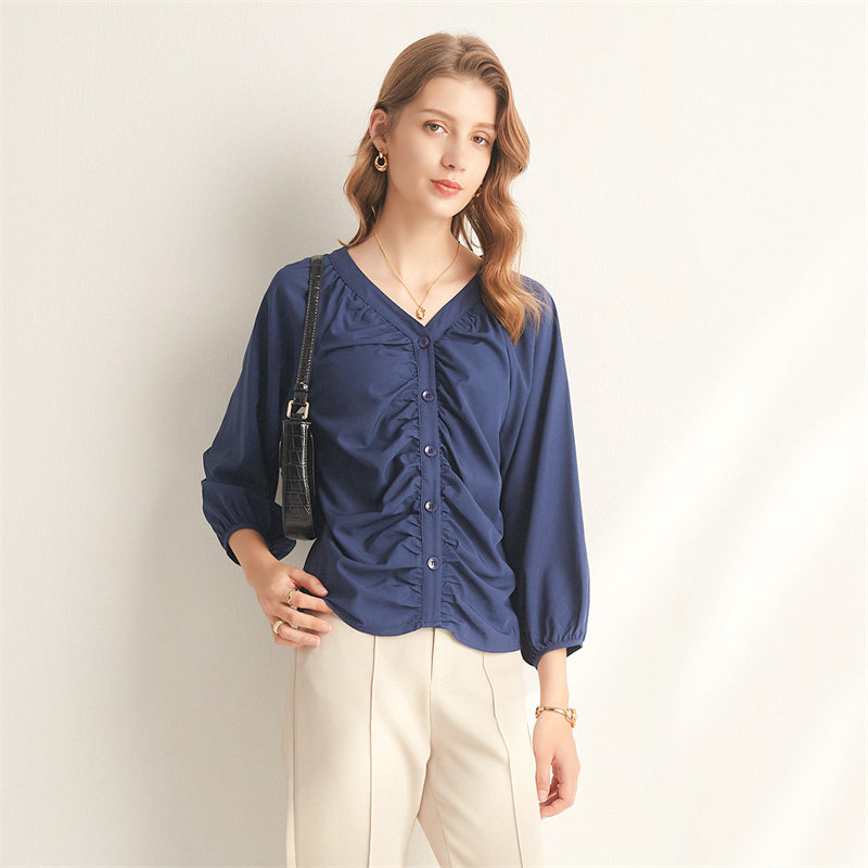 Шифоновая рубашка, дизайнерская футболка, французский стиль, V-образный вырез, рукава фонарики, тренд сезона