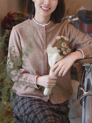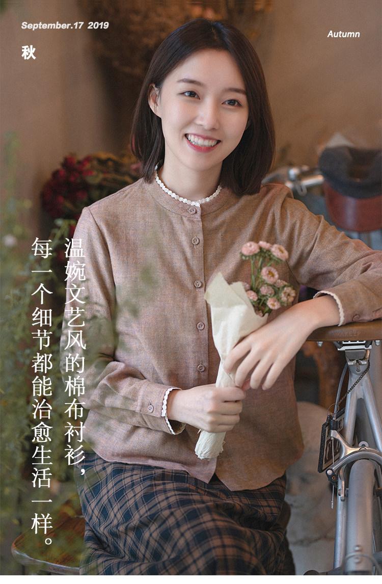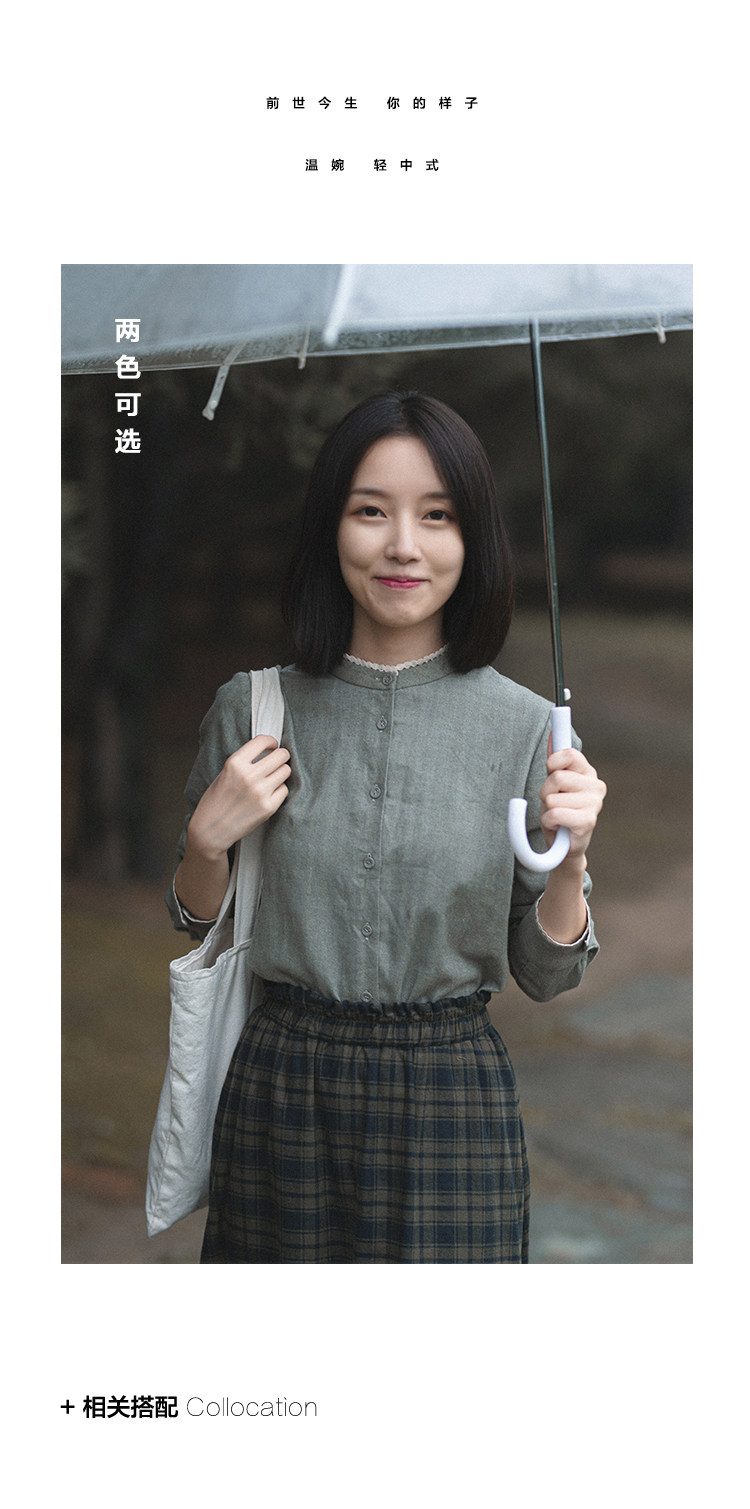 19QDA-087 [Миан пел] Ретро и нежная рубашка с длинными рубашками, девочка прошлого и настоящего прошлого и настоящего
