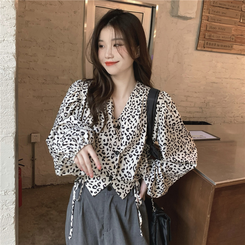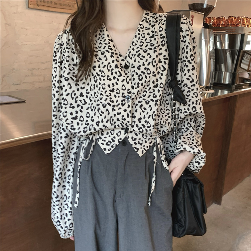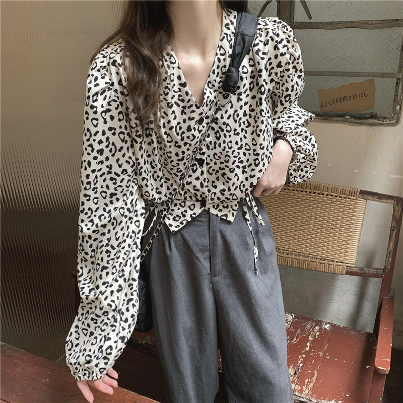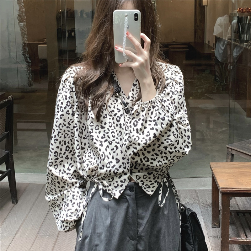 Короткая осенняя ретро дизайнерская рубашка, на шнурках, V-образный вырез, тренд сезона