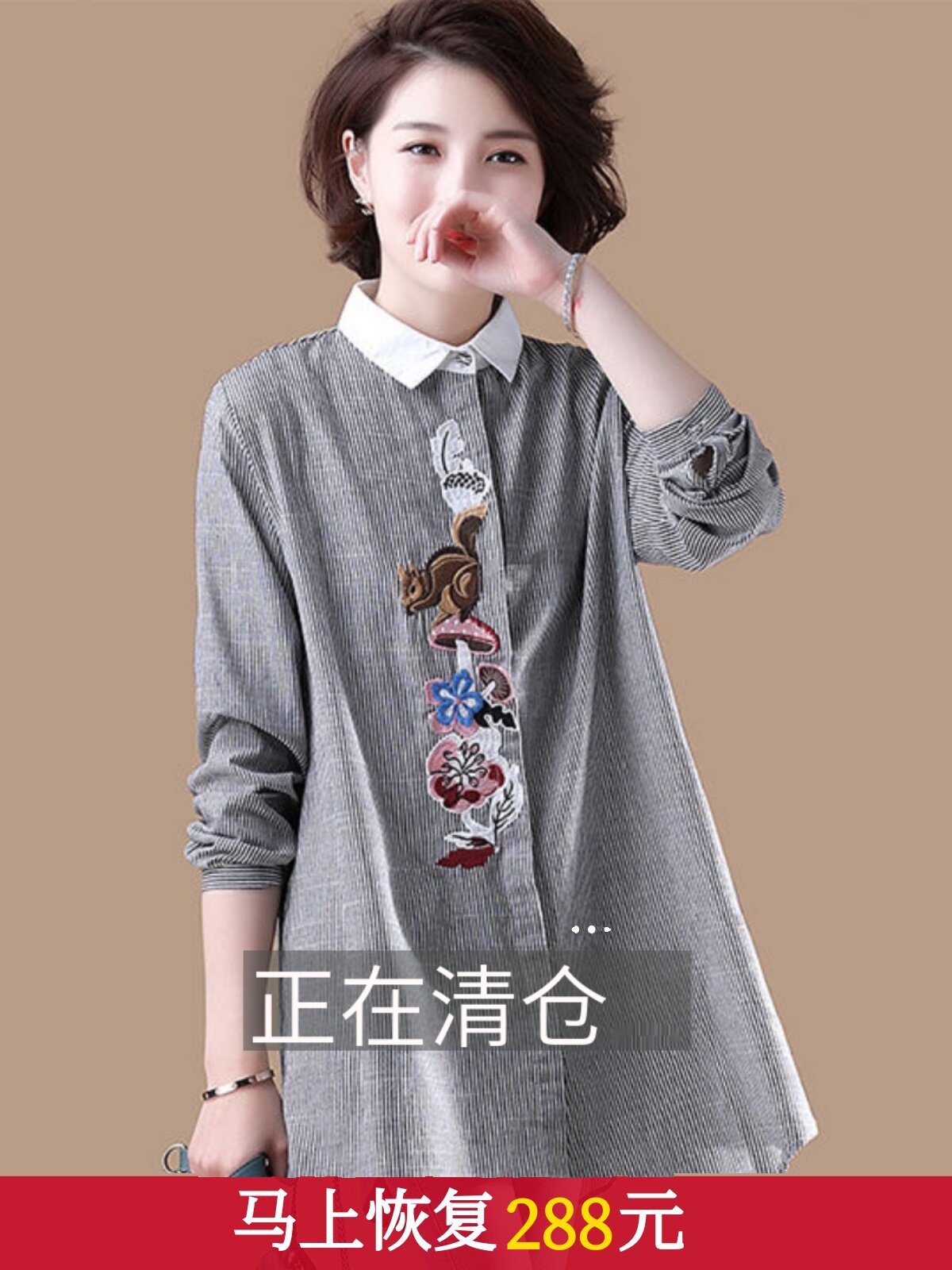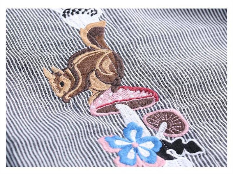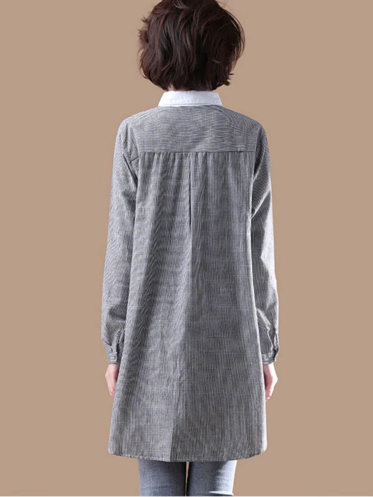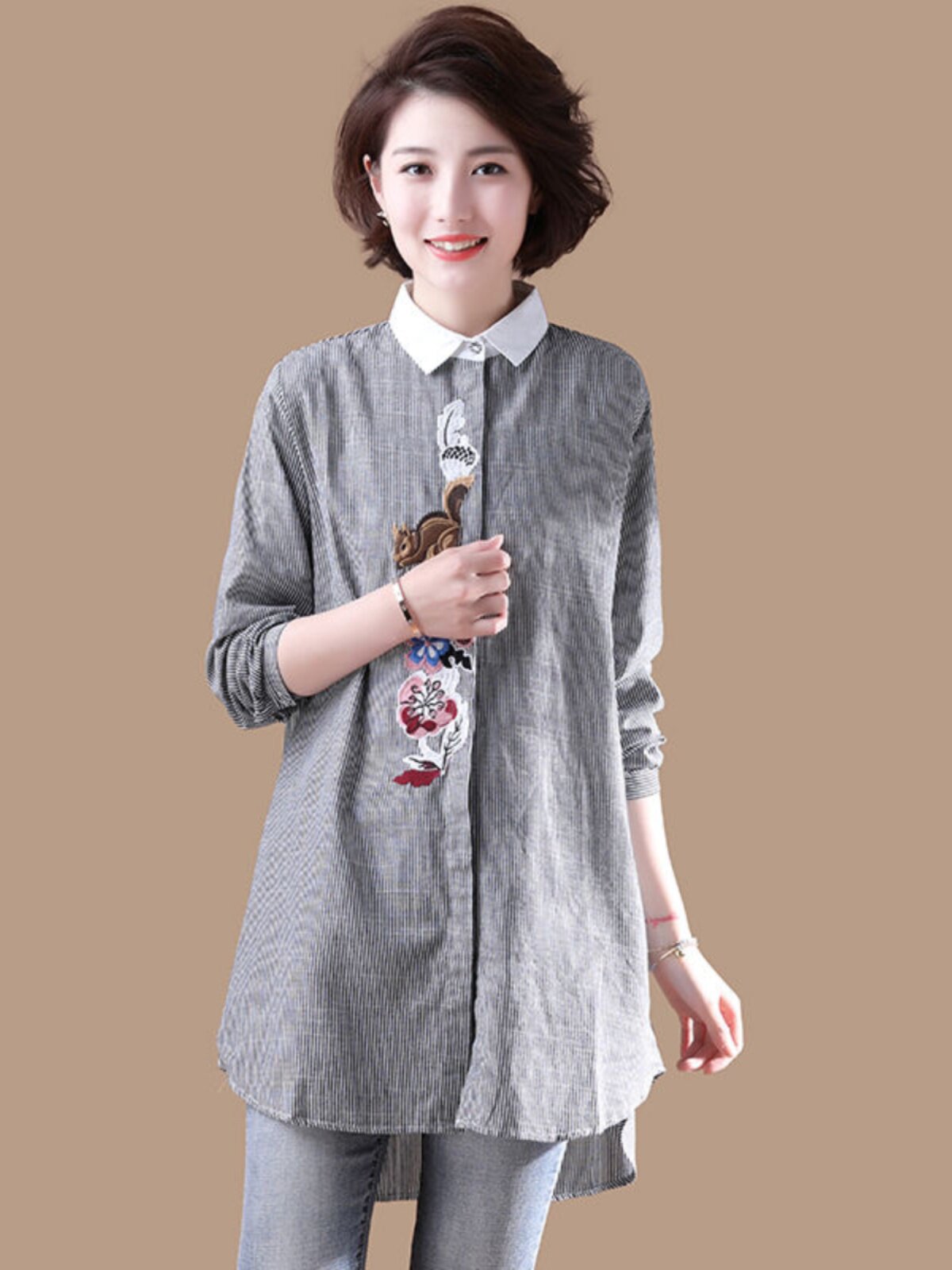 (Трансграничная торговля), брендовый южнокорейский осенний товар, длинная рубашка, из хлопка и льна, средней длины, большой размер, с вышивкой